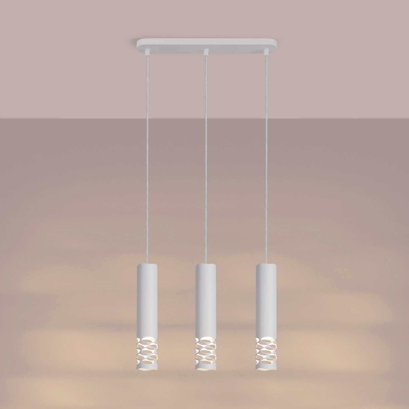 Nowoczesna lampa wisząca LIRO 3L marki SOLLUX LIGHTING to propozycja dla osób, które poszukują minimalistycznego, a zarazem efektownego oświetlenia do salonu, kuchni lub nad stół. Wykonana z białego metalu, o długości 40 cm i wysokości 125 cm, wyposażona w trzy niezależne punkty świetlne z oprawą GU10. Lampa zachwyca prostą formą i subtelną elegancją, doskonale wpisując się w nowoczesne oraz japandi aranżacje wnętrz.