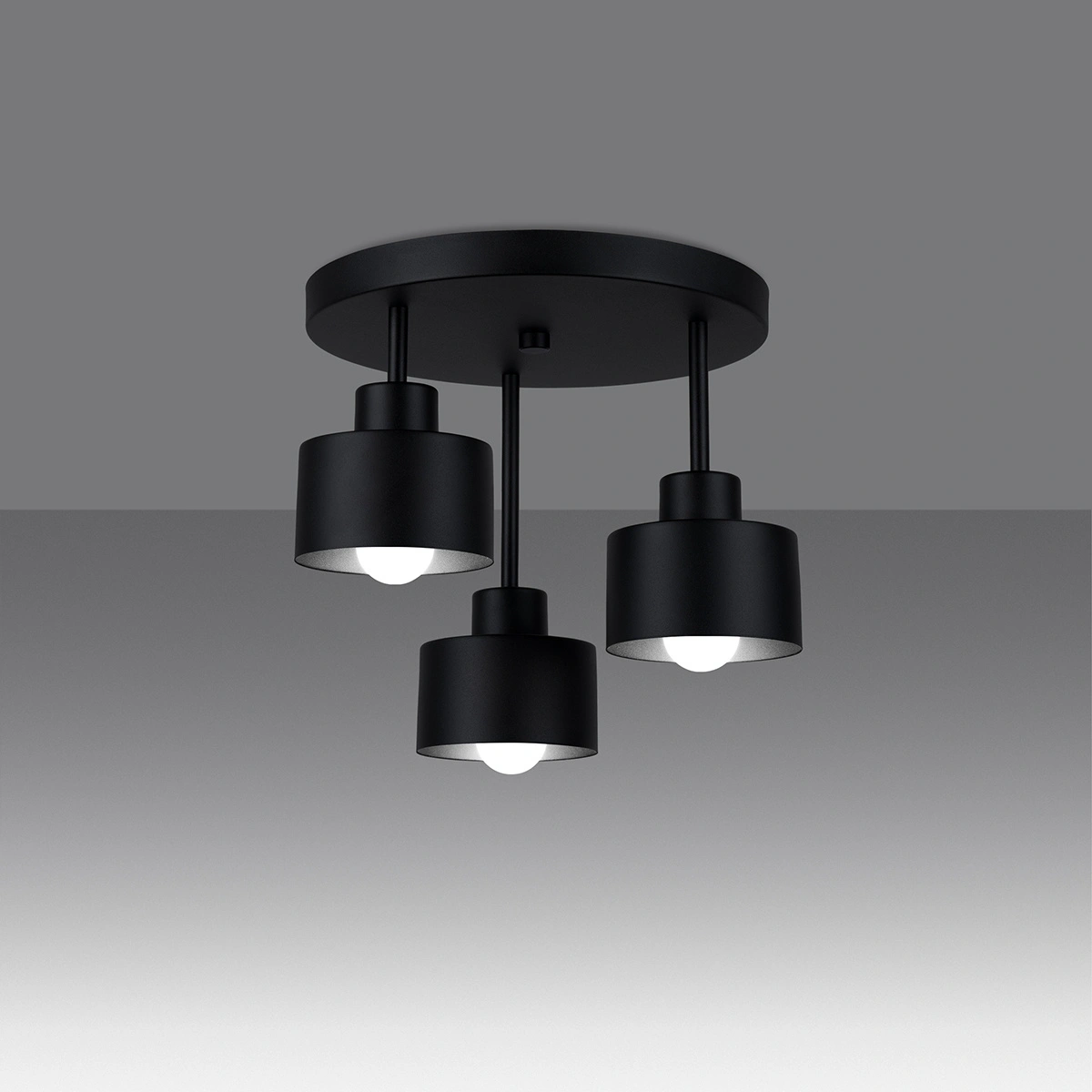 Plafon sufitowy SAVAR 3 marki SOLLUX LIGHTING to nowoczesna, 3-punktowa lampa wykonana z solidnego metalu w głębokim, czarnym kolorze. Dzięki swojej minimalistycznej formie i wymiarom 32×32×29 cm, plafon ten doskonale sprawdzi się jako stylowe oświetlenie do salonu lub kuchni. Oprawa na żarówki E27 zapewnia elastyczność doboru źródeł światła, a skierowane w dół światło gwarantuje funkcjonalność zarówno w strefie wypoczynkowej, jak i nad stołem.