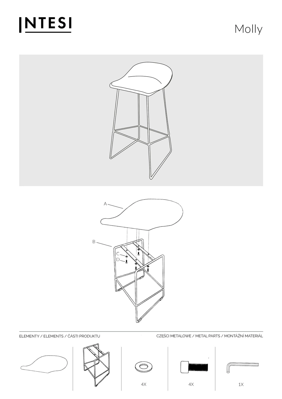 Stylowe krzesło barowe Molly jest niezwykłe ze względu na swoją prostą formę. Krzesło barowe Molly posiada wyprofilowane siedzisko, wykonane z tworzywa o wykończeniu matowym, oraz metalową podstawę wykończoną w połysku. Uchwyt, na którym wygodnie postawisz nogi stwarza efekt trójwymiaru, będący często popszukiwanym elementem mebli nowoczesnych. Molly to synonim prostej formy oraz nowoczesnych rozwiązań. Krzesło wymaga samodzielnego montażu, jego maksymalne obciążenie wynosi 120kg. Krzesło występuje w 2 wersjach wysokości siedziska.