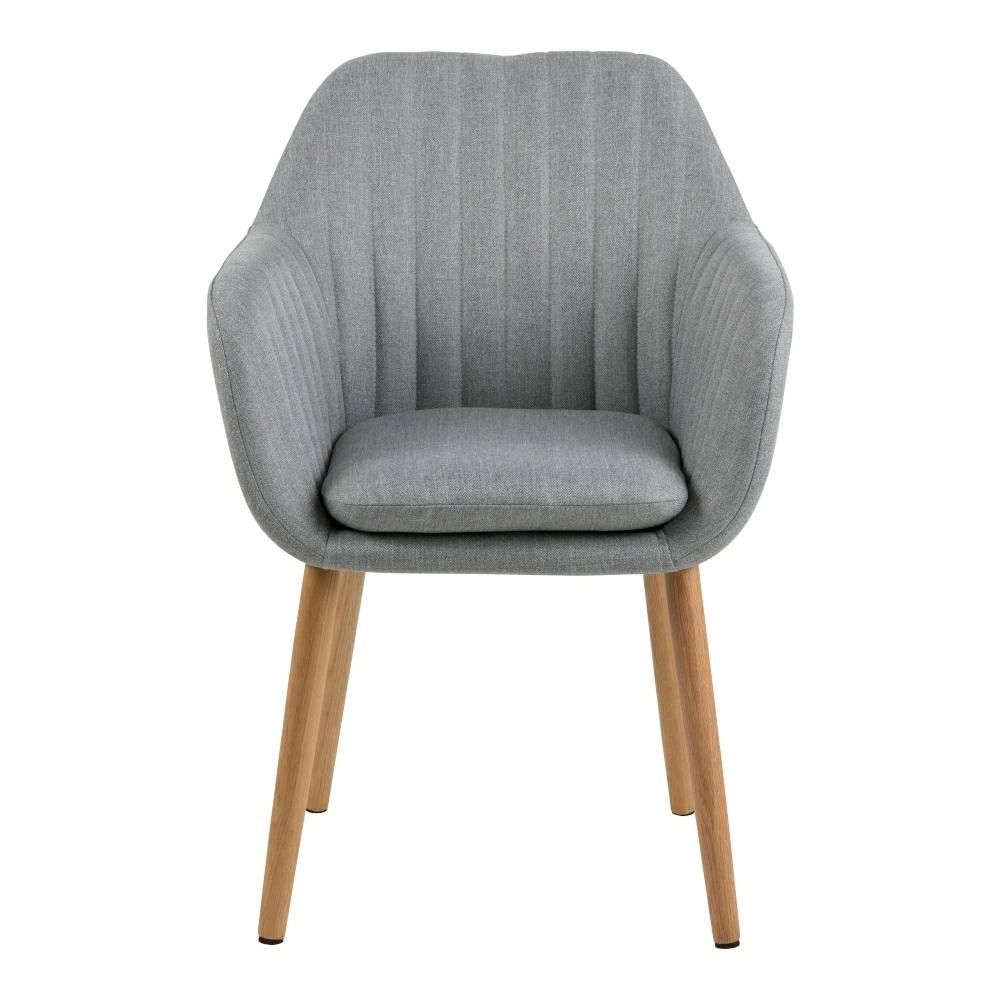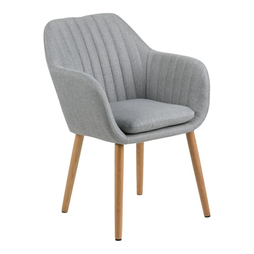 Krzesło Emilia to niezwykle efektowny mebel, który nawiązuje do stylu skandynawskiego. Produkt wykonany z tkaniny Corsica 40. Tapicerowane siedzisko posiada efektowne pikowanie. Podstawa wykonana z olejowanego dębowego drewna, prezentuje się perfekcyjnie.