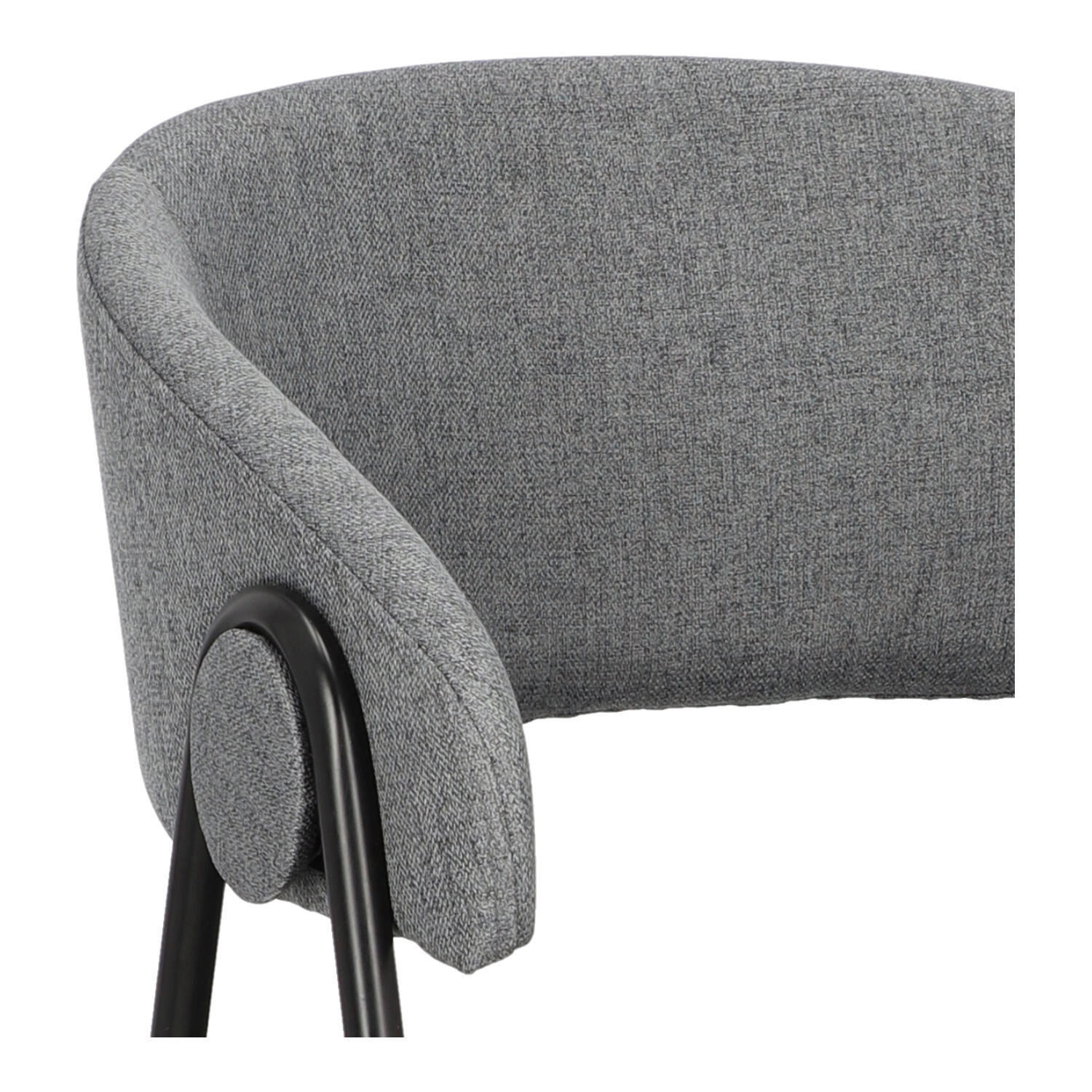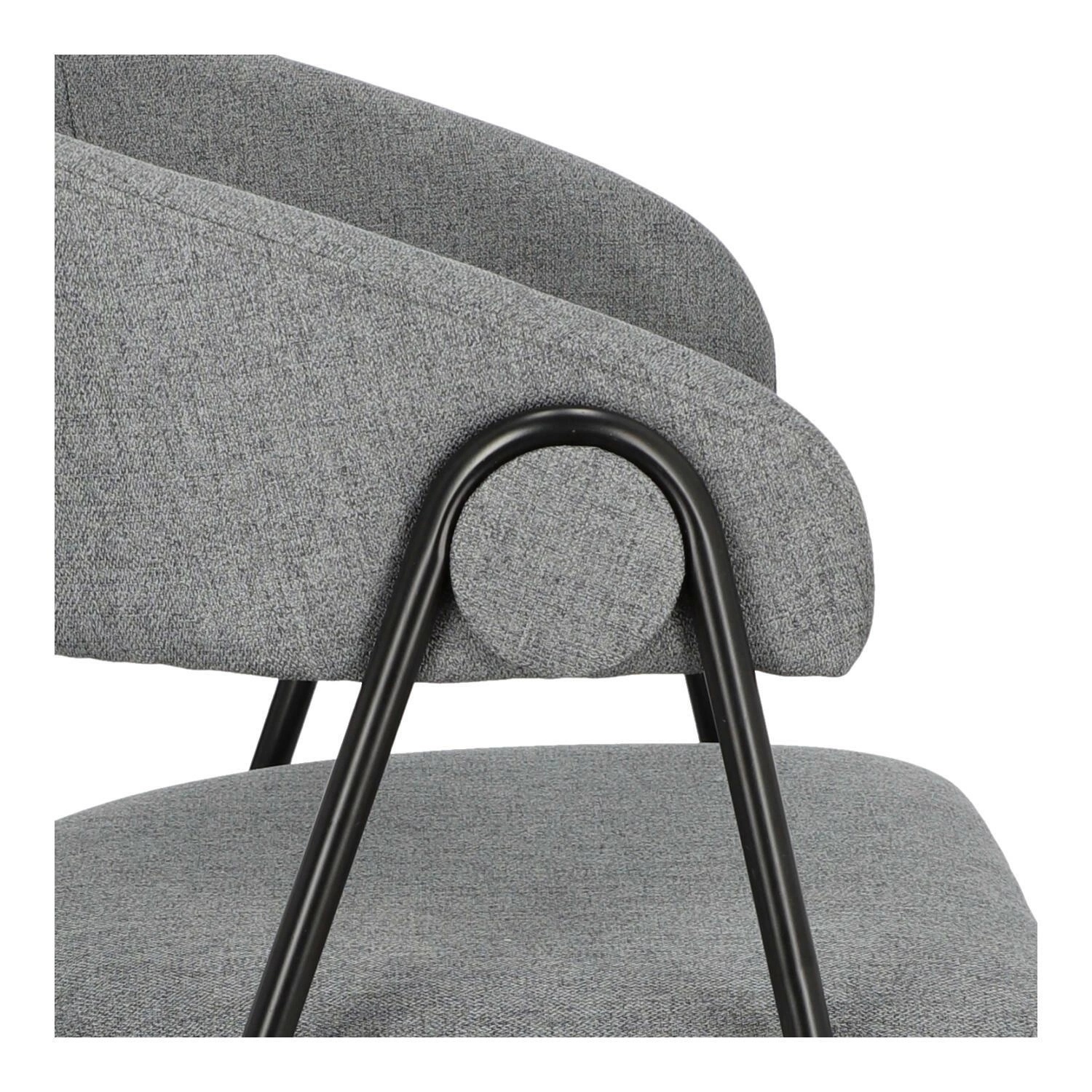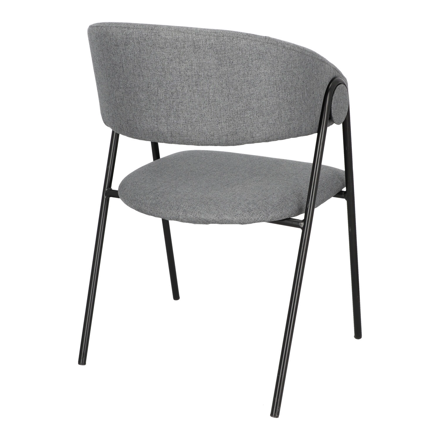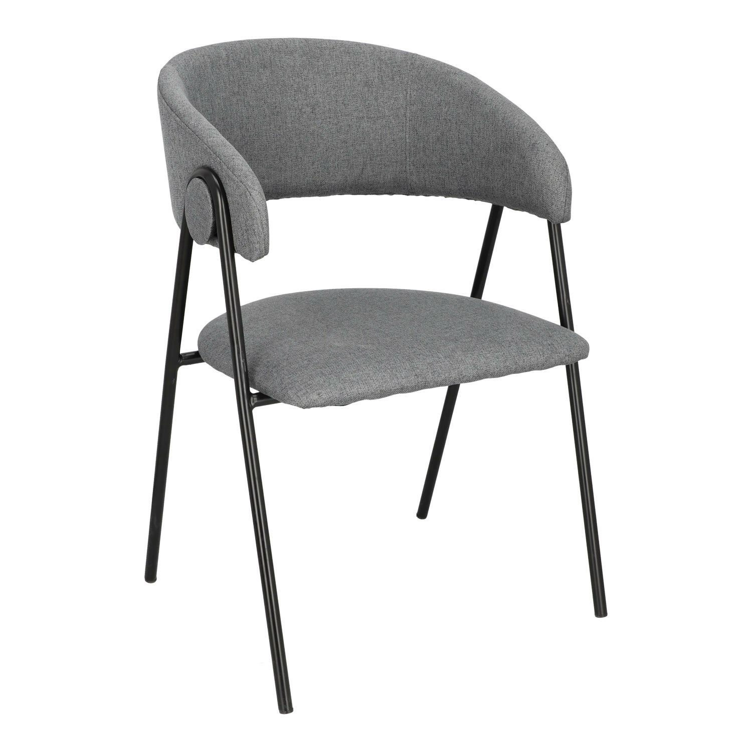 Krzesło Larisa posiada tapicerowane siedzisko i oparcie, które zostały wykończone szarą tkaniną. Tkanina jest przyjemna w dotyku i zapewnia komfort podczas użytkowania. Metalowe nogi krzesła są pomalowane proszkowo na czarny kolor, co dodaje mu solidności i stabilności. Półokrągłe oparcie krzesła nadaje mu wyjątkowy wygląd, jednocześnie zapewniając wsparcie dla pleców. Oparcie i siedzisko są wypełnione pianką tapicerską, co zapewnia wygodę podczas długiego siedzenia. Pianka doskonale dopasowuje się do ciała, a jednocześnie zachowuje swoją pierwotną formę, zapewniając optymalne wsparcie.