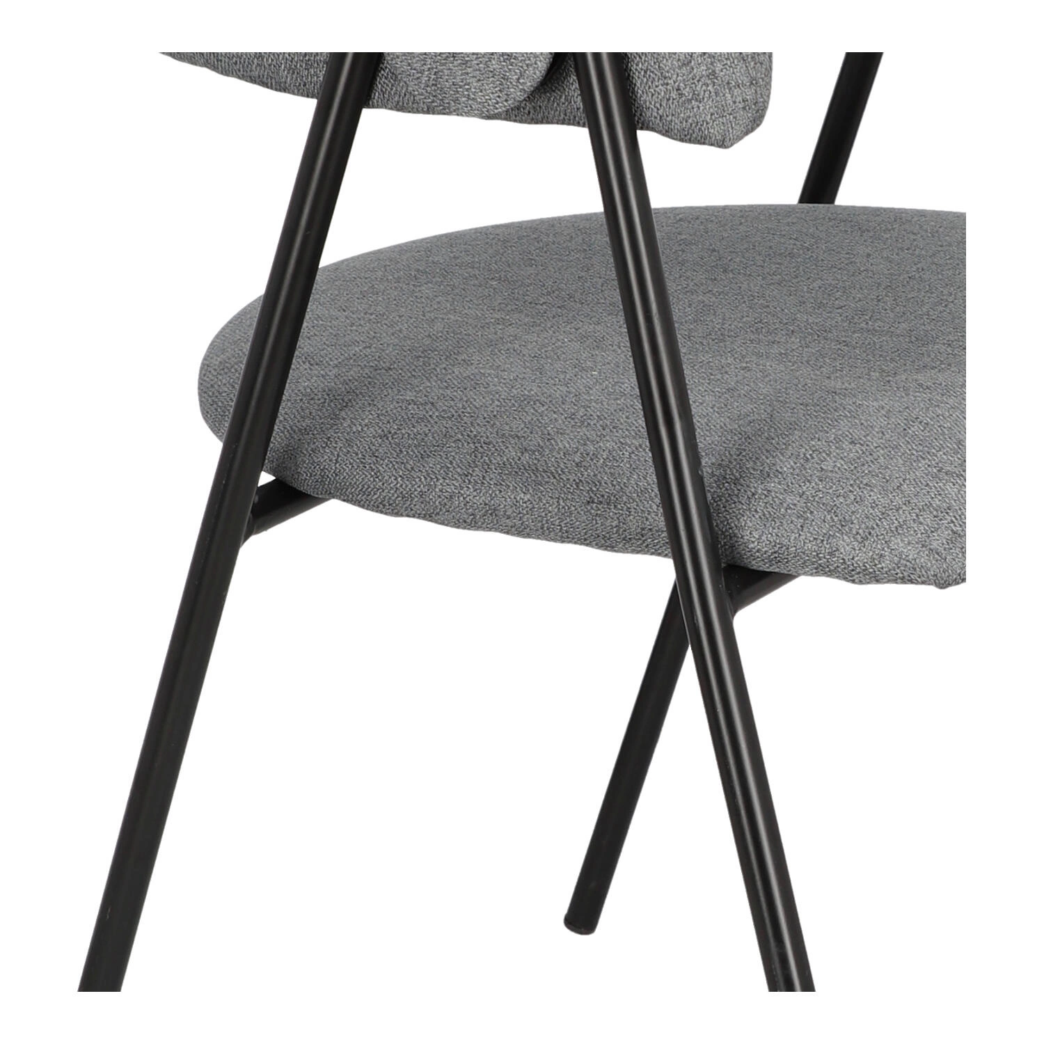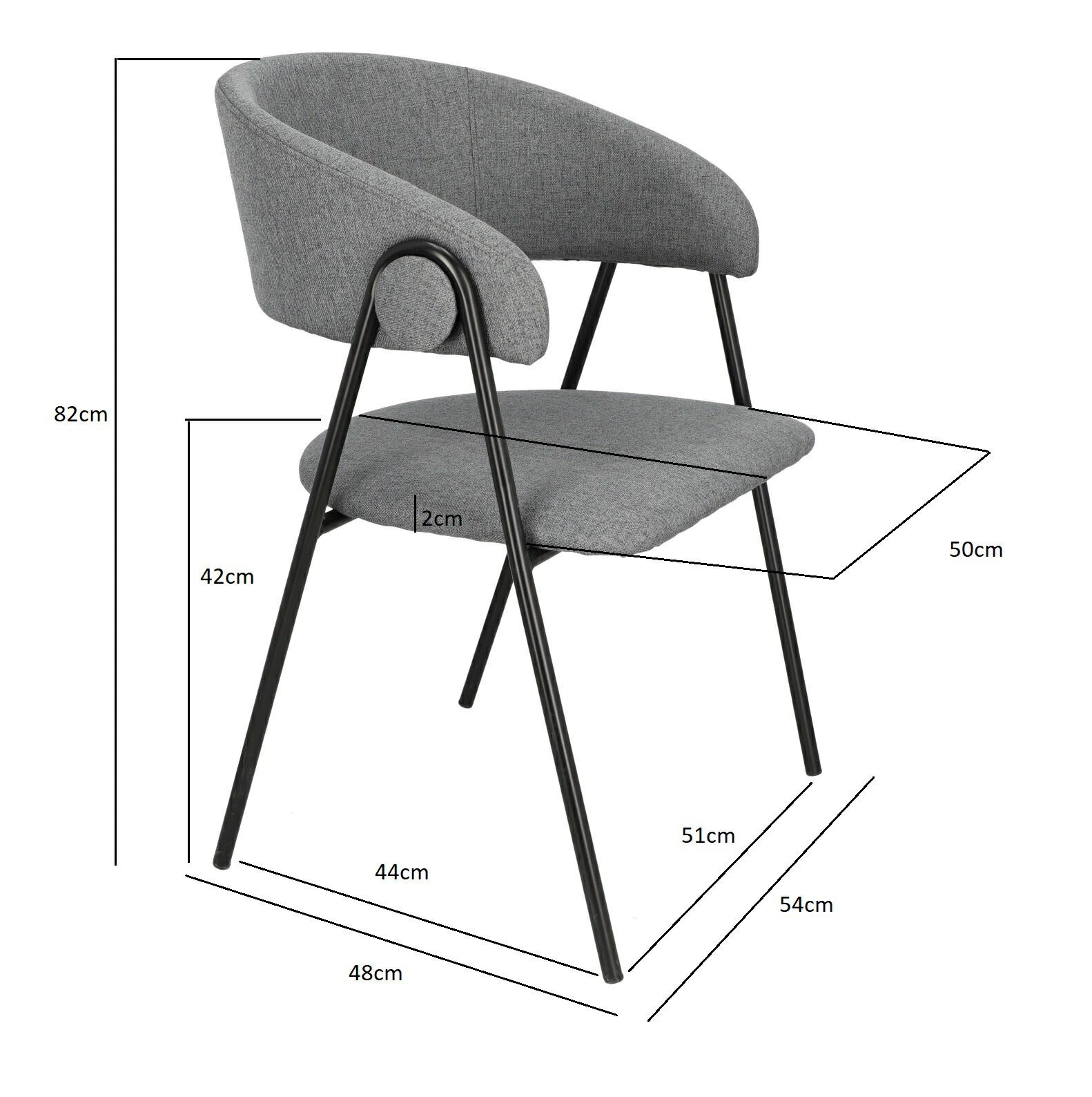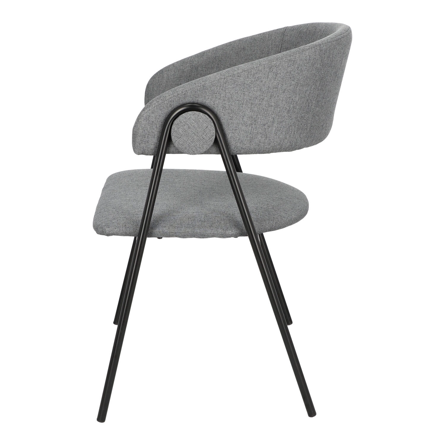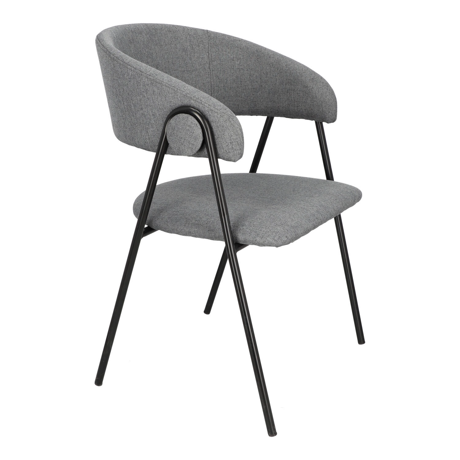 Krzesło Larisa posiada tapicerowane siedzisko i oparcie, które zostały wykończone szarą tkaniną. Tkanina jest przyjemna w dotyku i zapewnia komfort podczas użytkowania. Metalowe nogi krzesła są pomalowane proszkowo na czarny kolor, co dodaje mu solidności i stabilności. Półokrągłe oparcie krzesła nadaje mu wyjątkowy wygląd, jednocześnie zapewniając wsparcie dla pleców. Oparcie i siedzisko są wypełnione pianką tapicerską, co zapewnia wygodę podczas długiego siedzenia. Pianka doskonale dopasowuje się do ciała, a jednocześnie zachowuje swoją pierwotną formę, zapewniając optymalne wsparcie.
