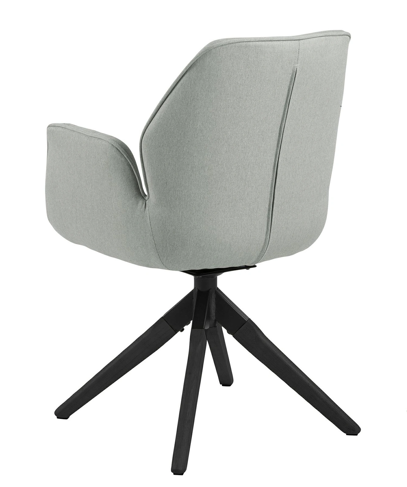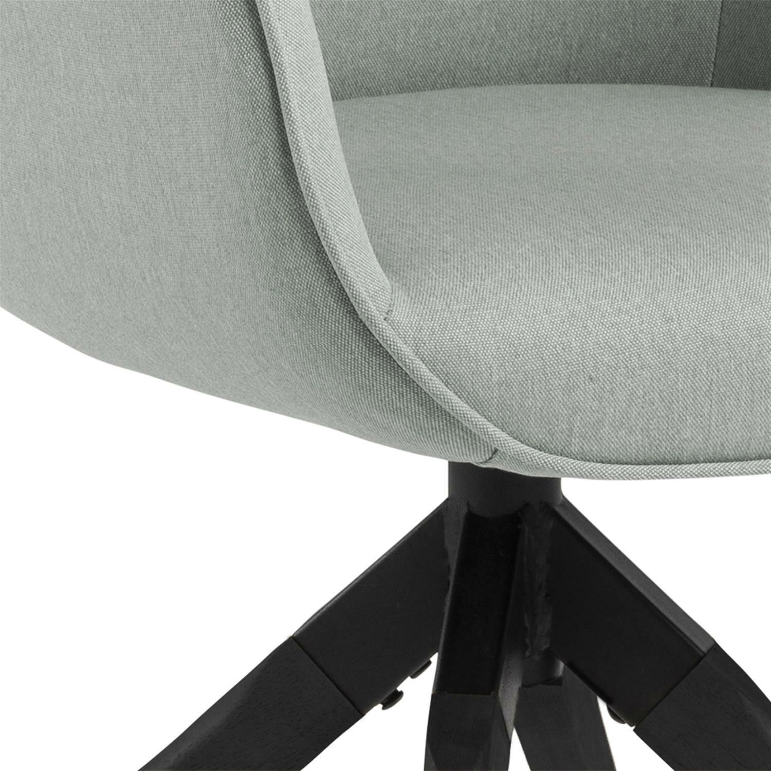 Krzesło w skandynawskim stylu Aura jest niezwykle efektownym i wygodnym siedziskiem. Odpowiednio wyprofilowane siedzisko zostało obite miękką pianką tapicerską oraz tkaniną Town light grey 13. Tkanina krzesła jest łatwa w utrzymaniu w czystości. Ciepły odcień szarości sprawi, że wnętrze jadalni lub salonu stanie się ciepłym i przytulnym. Podłokietniki o optymalnej wysokości zostały wyprofilowane na zewnątrz, aby spotęgować komfort siedzenia. Podstawą krzesła są cztery nogi z litego drewna kauczukowego pomalowane na czarno. Nogi krzesła wychodzą z jednego wspólnego punktu i rozchylają się dość szeroko, aby zagwarantować stabilizację. Siedzisko krzesła jest obrotowa. Funkcję tą zawdzięcza czarnemu, metalowemu mechanizmowi, który prócz funkcji obrotu łączy również krzesła z siedziskiem.