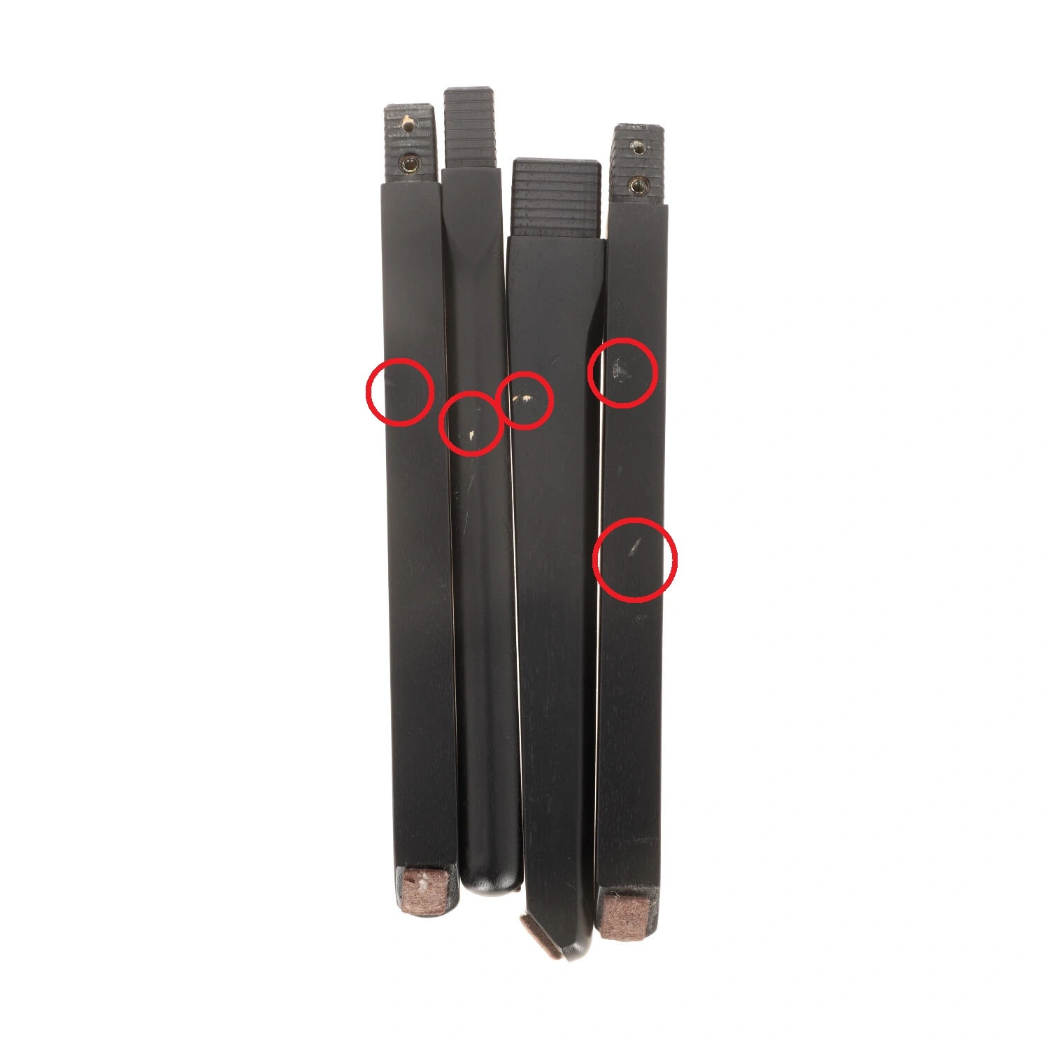 zarysowania i obicia na nogach