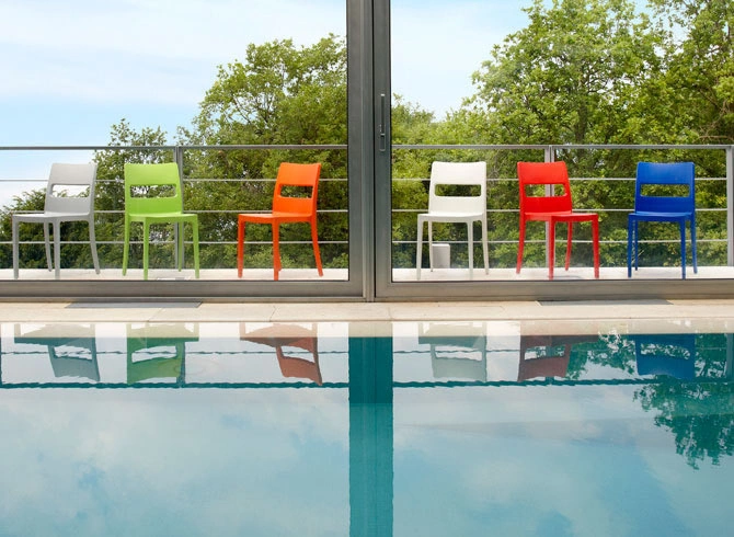 Ponaczasowe krzesło Sai zostało zrobione z technopolimeru wzmocnionego włóknem szklanym. Krzesło swój kształt zawdzięcza formowaniu go pod ciśnieniem. Dzięki takiem metodzie produkcji krzesło Sai jest bardzo wytrzymałe i odporne na uderzenia oraz warunki atmosferyczne. Krzesło dostępne jest w kilku kolorach, dzięki którym możemy dopasować je do naszego wnętrza. Możliwość sztaplowania. Do użytku wewnątrz / na zewnątrz. Zgodne z normą EN 16139: 2013 poziom L2. Waga krzesła.