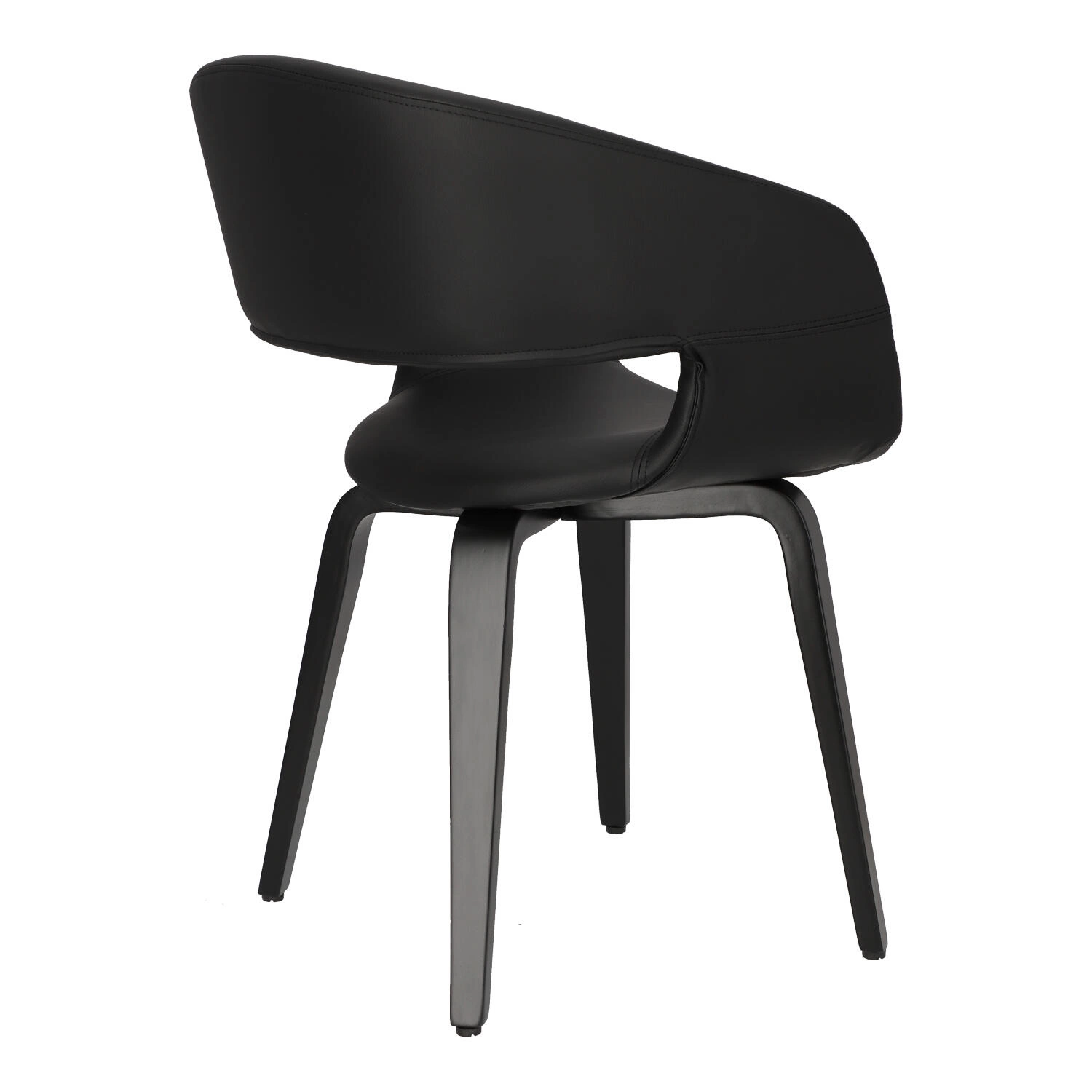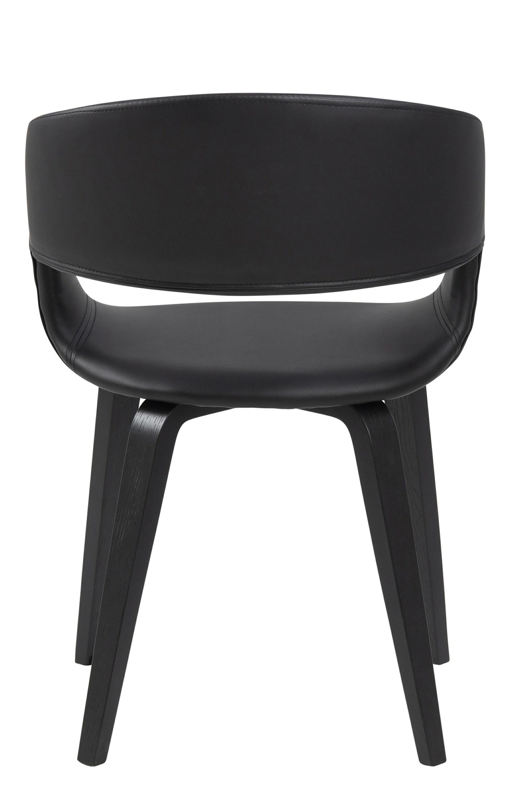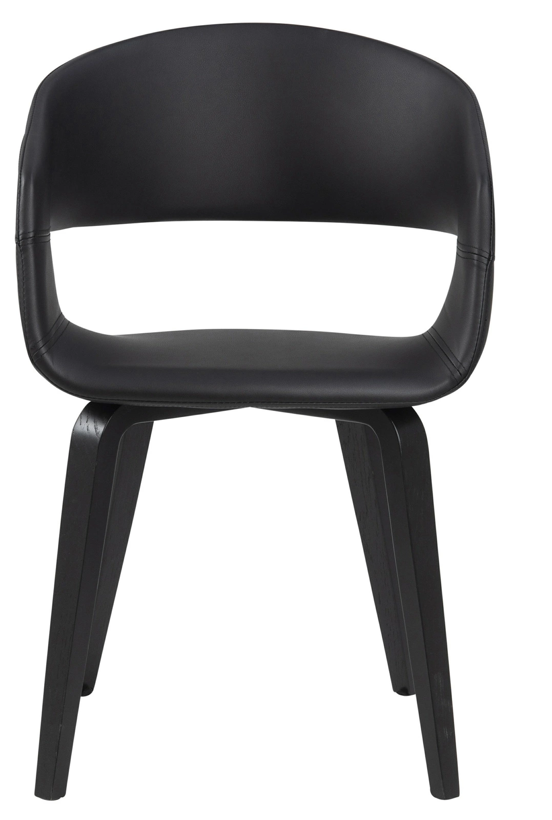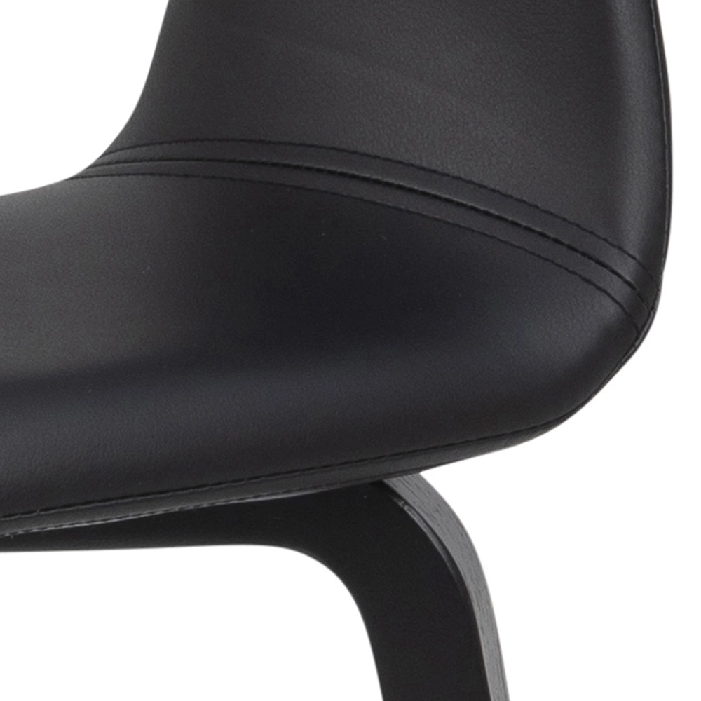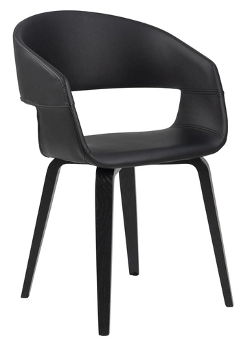 Ponadczasowe krzesło Nova o niebanalnym kształcie sprawdzi się zarówno w salonie, kuchni, jak i jadalni. Krzesło Nova wpasuje się do wnętrz w stylu nowoczesnym, skandynawskim, czy industrialnym. Cztery drewniane, krzyżujące się pod siedziskiem nóżki gwarantują odpowiednią stabilność i bezpieczeństwo. Zostały wykonane z giętego forniru dębowego pomalowanego na kolor czarny. Siedzisko zostało wykonane z wysokiej jakości czarnej skóry ekologicznej, która jest bardzo wytrzymała i pięknie się prezentuje. Półokrągłe wycięcie w oparciu sprawi, że krzesło Nova będzie niezwykle ciekawym elementem cechy produktu: -odgniecenia na oparciu