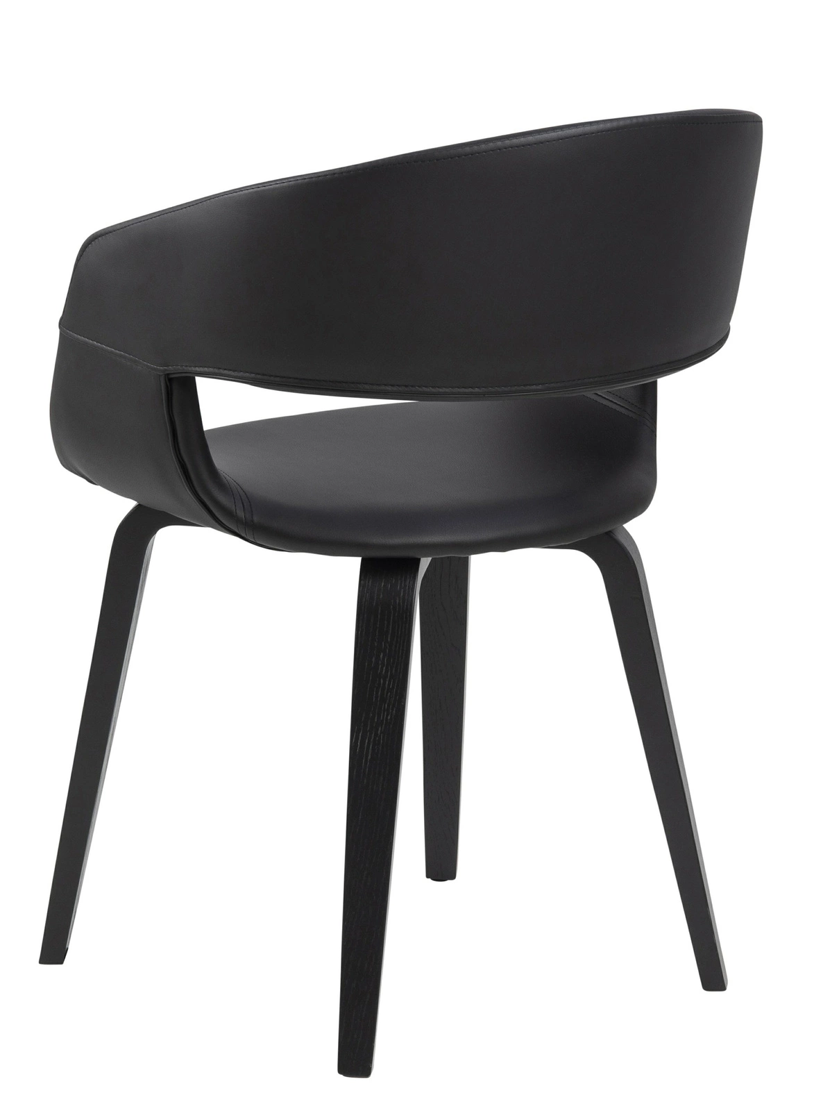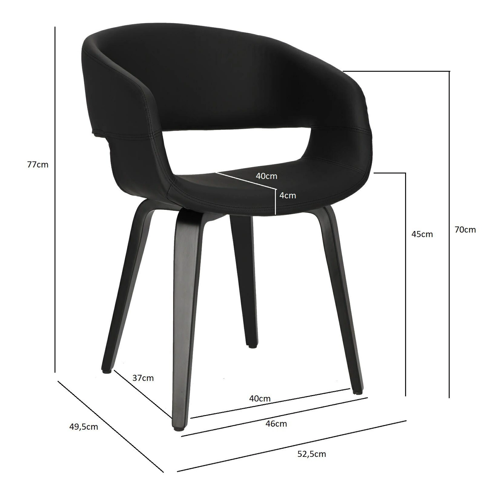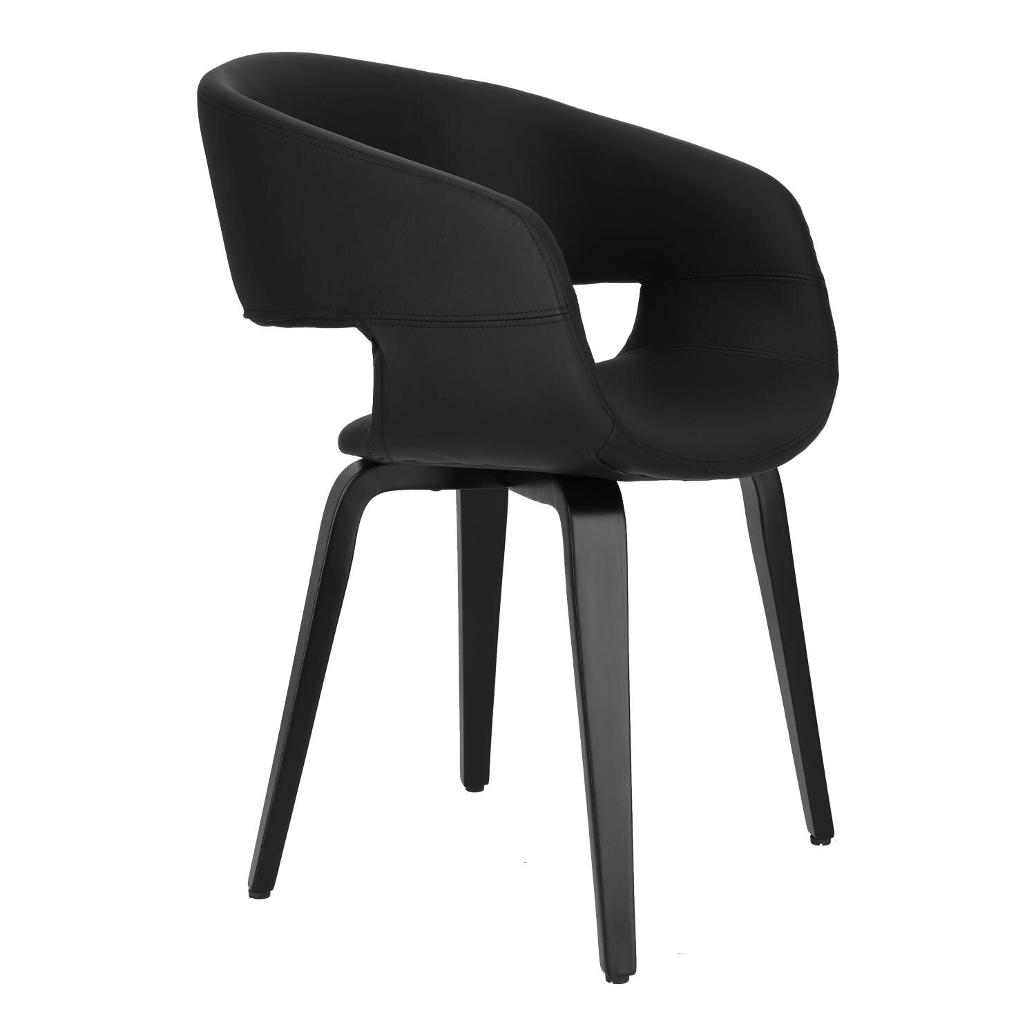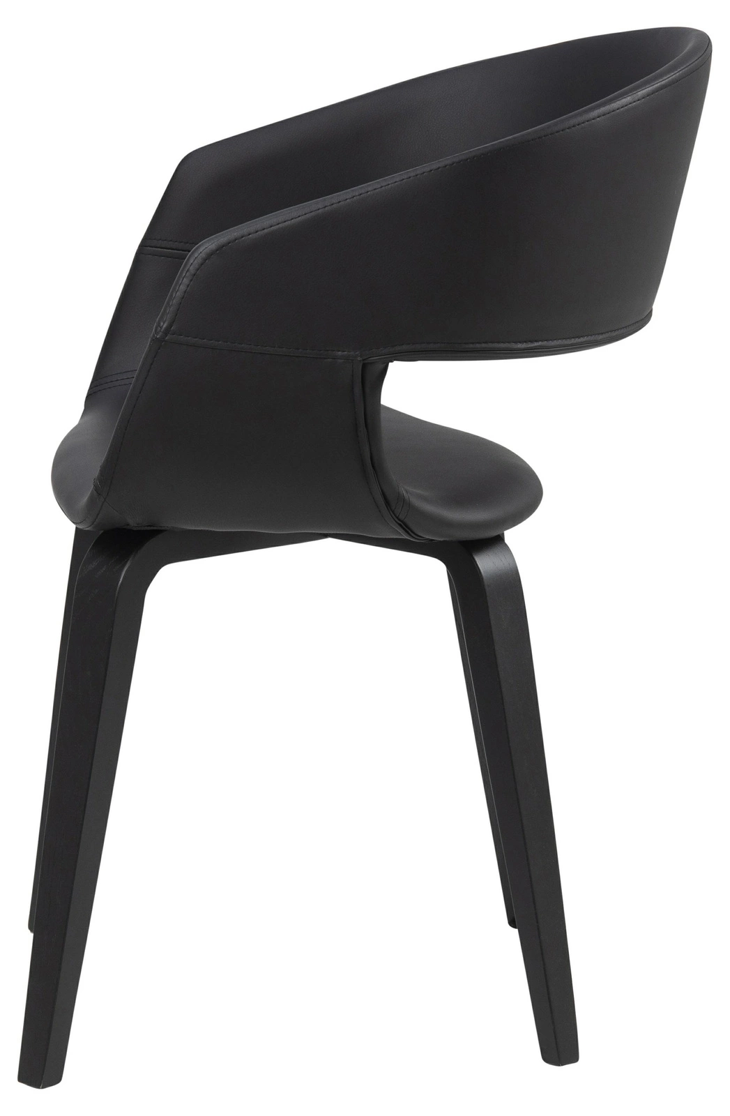 Ponadczasowe krzesło Nova o niebanalnym kształcie sprawdzi się zarówno w salonie, kuchni, jak i jadalni. Krzesło Nova wpasuje się do wnętrz w stylu nowoczesnym, skandynawskim, czy industrialnym. Cztery drewniane, krzyżujące się pod siedziskiem nóżki gwarantują odpowiednią stabilność i bezpieczeństwo. Zostały wykonane z giętego forniru dębowego pomalowanego na kolor czarny. Siedzisko zostało wykonane z wysokiej jakości czarnej skóry ekologicznej, która jest bardzo wytrzymała i pięknie się prezentuje. Półokrągłe wycięcie w oparciu sprawi, że krzesło Nova będzie niezwykle ciekawym elementem cechy produktu: -odgniecenia na oparciu