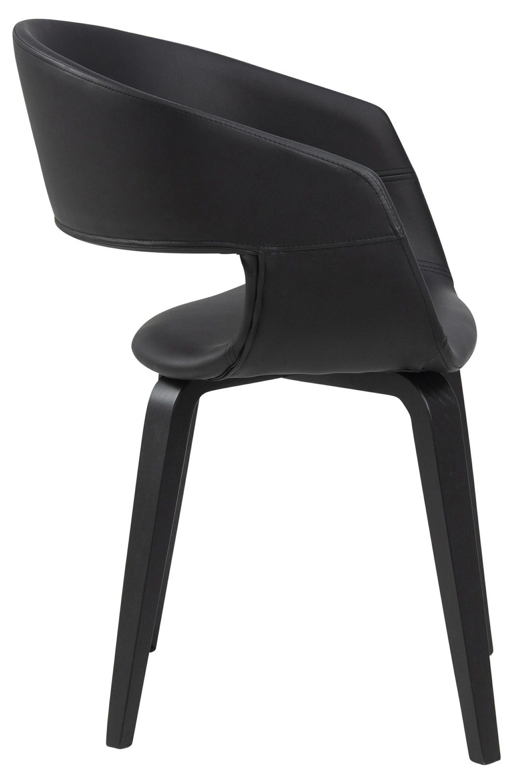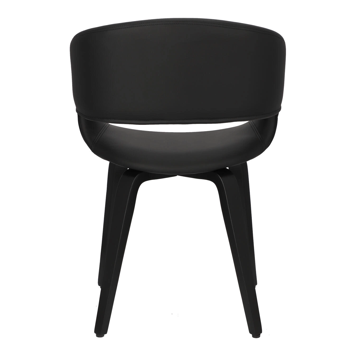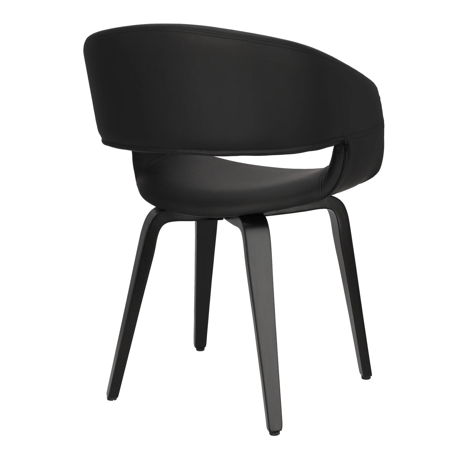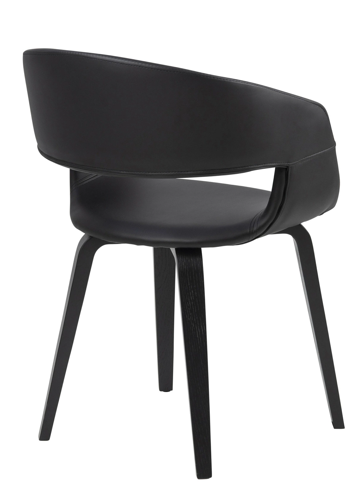 Ponadczasowe krzesło Nova o niebanalnym kształcie sprawdzi się zarówno w salonie, kuchni, jak i jadalni. Krzesło Nova wpasuje się do wnętrz w stylu nowoczesnym, skandynawskim, czy industrialnym. Cztery drewniane, krzyżujące się pod siedziskiem nóżki gwarantują odpowiednią stabilność i bezpieczeństwo. Zostały wykonane z giętego forniru dębowego pomalowanego na kolor czarny. Siedzisko zostało wykonane z wysokiej jakości czarnej skóry ekologicznej, która jest bardzo wytrzymała i pięknie się prezentuje. Półokrągłe wycięcie w oparciu sprawi, że krzesło Nova będzie niezwykle ciekawym elementem cechy produktu: -odgniecenia na oparciu