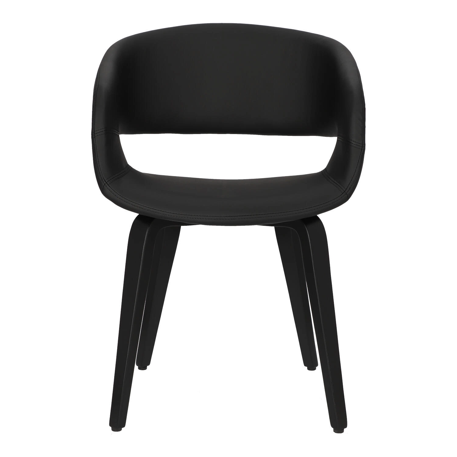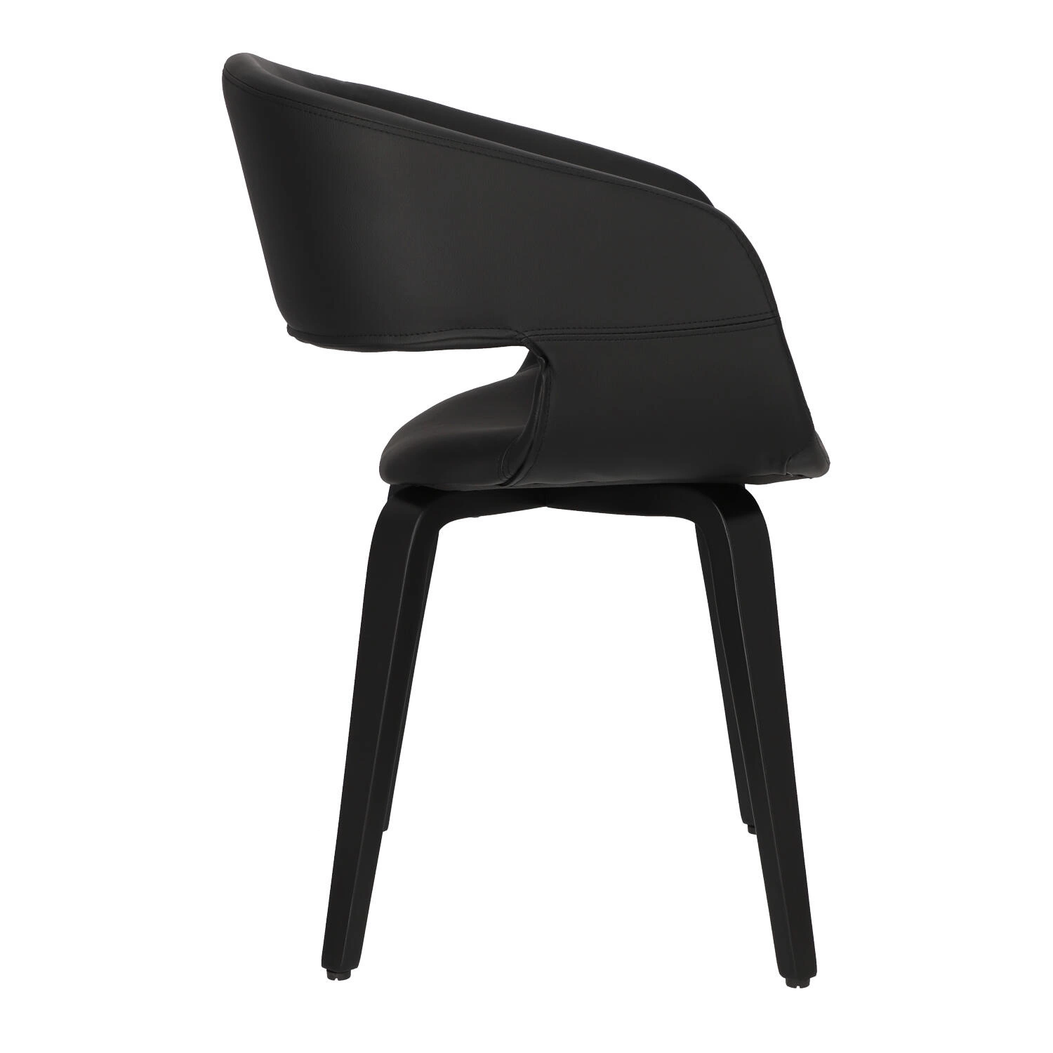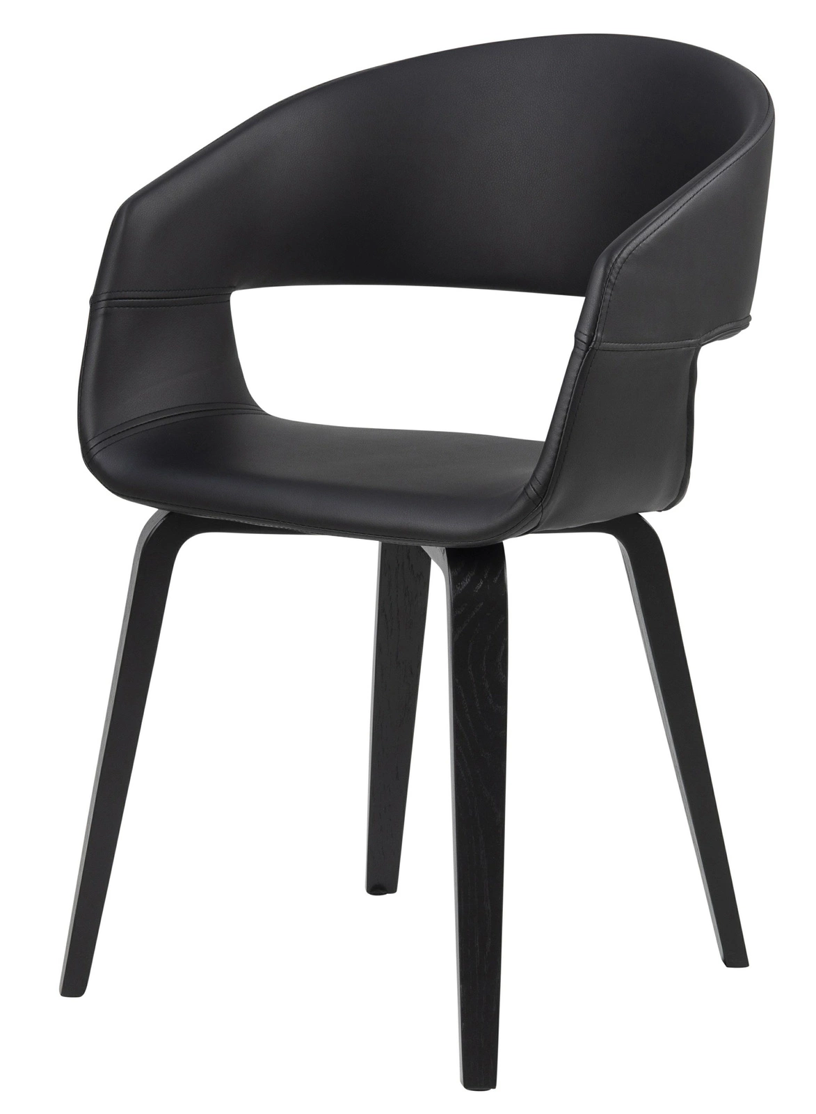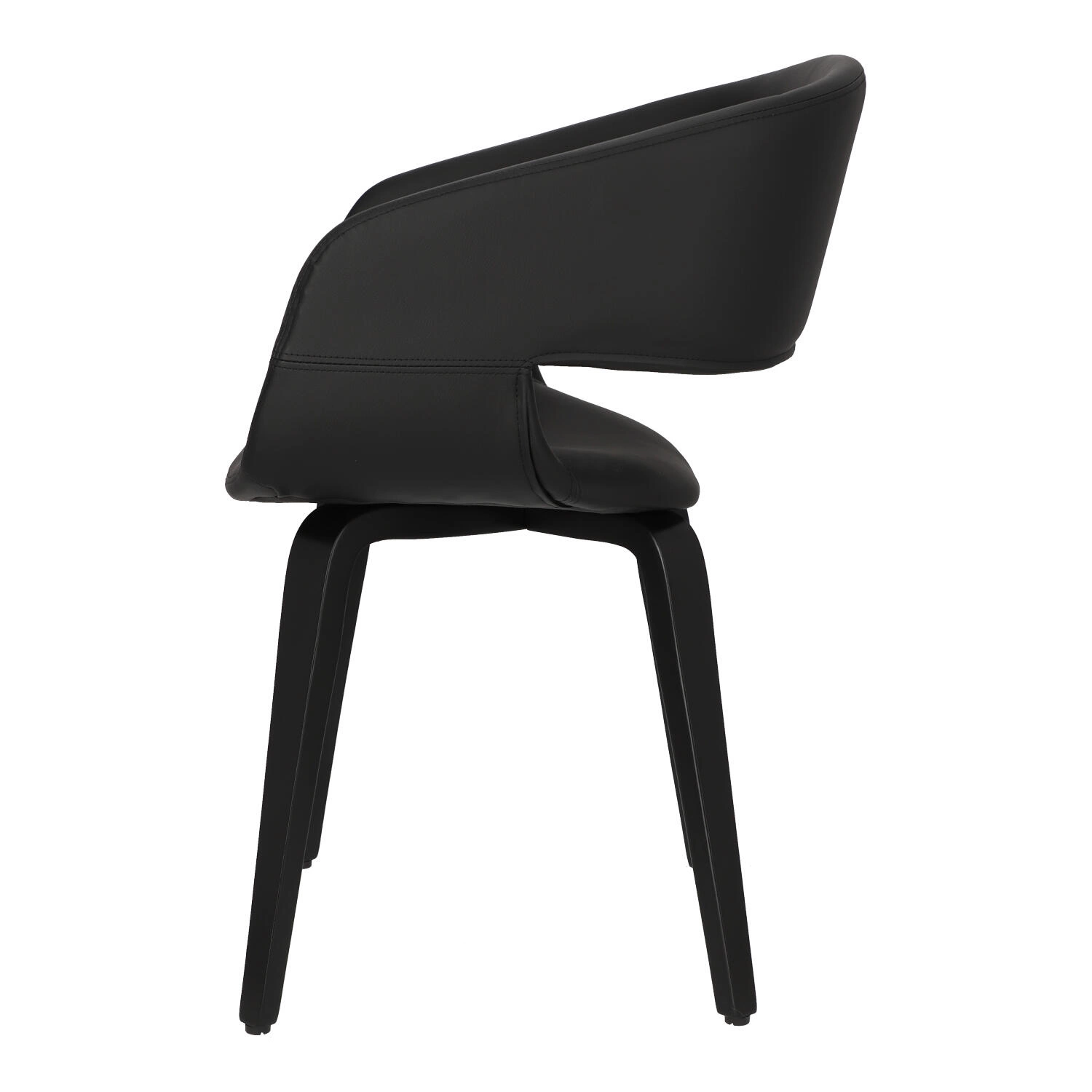 Ponadczasowe krzesło Nova o niebanalnym kształcie sprawdzi się zarówno w salonie, kuchni, jak i jadalni. Krzesło Nova wpasuje się do wnętrz w stylu nowoczesnym, skandynawskim, czy industrialnym. Cztery drewniane, krzyżujące się pod siedziskiem nóżki gwarantują odpowiednią stabilność i bezpieczeństwo. Zostały wykonane z giętego forniru dębowego pomalowanego na kolor czarny. Siedzisko zostało wykonane z wysokiej jakości czarnej skóry ekologicznej, która jest bardzo wytrzymała i pięknie się prezentuje. Półokrągłe wycięcie w oparciu sprawi, że krzesło Nova będzie niezwykle ciekawym elementem cechy produktu: -odgniecenia na oparciu