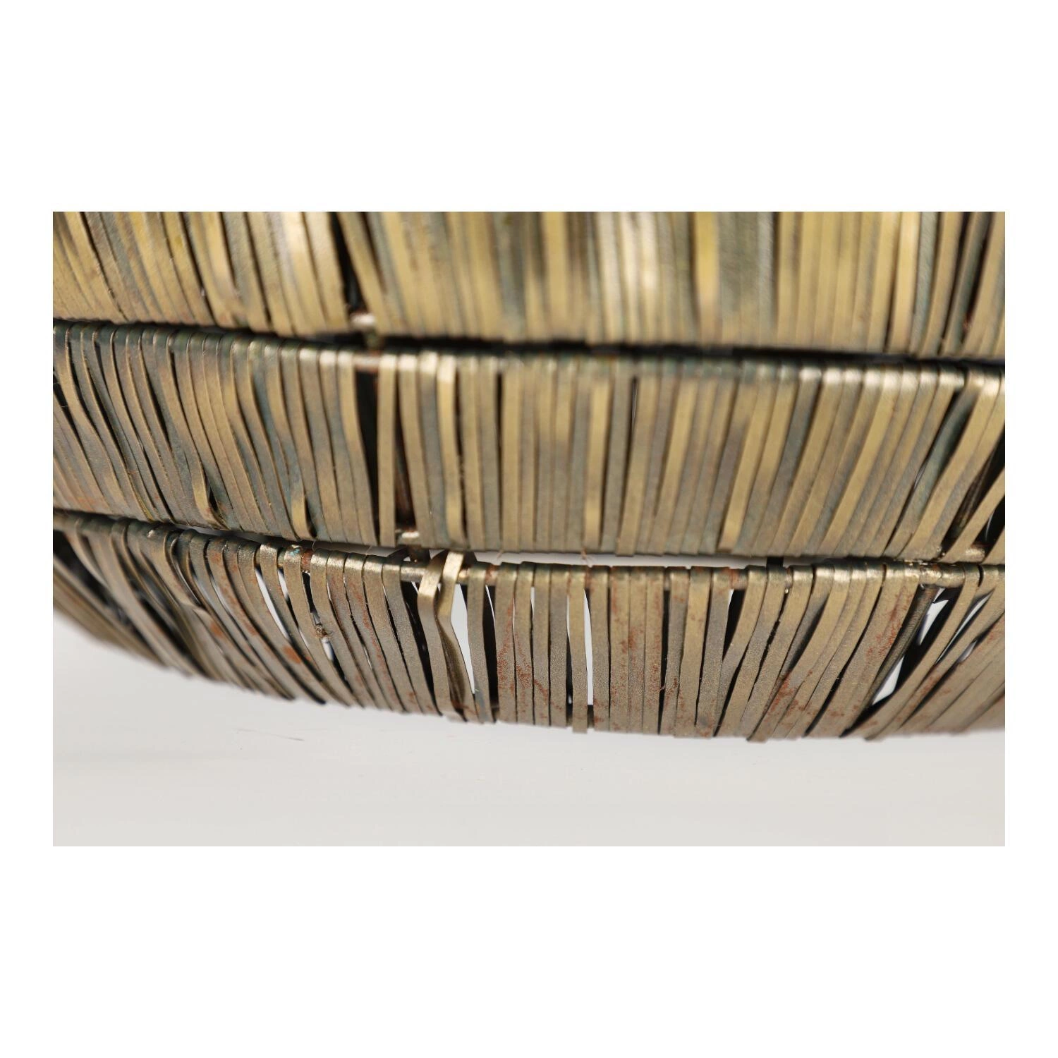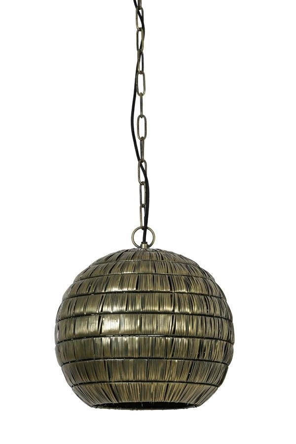 Metalowa lampa KYMORA to dobry dodatek do nowoczesnego wnętrza. Lampa została pomalowana na kolor antycznego brązu. Klosz o kształcie kuli został zrobiony z drobnych metalowych elementów. Lampa została zawieszona na długim czarnym przewodzie. Waga: 4,1 kg