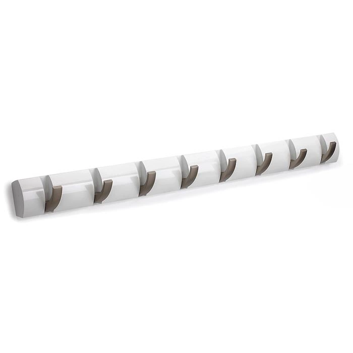 Praktyczny i wytrzymały wieszak Flip to propozycja dla osób ceniących minimalizm i dobry design. Wieszak zawiera 8 haków, z których każdy uniesie,ciężar do 2.26 kg . Idealny do wnętrz mieszkalnych i komercyjnych. Produkt dostępny w kilku wersjach kolorystycznych.
