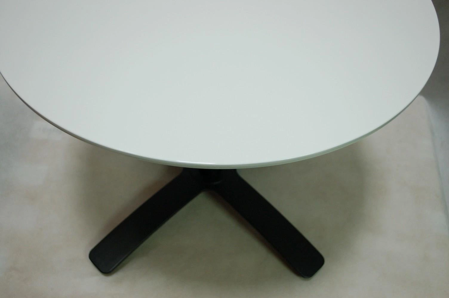 Okrągły stolik kawowy o białym blacie na wysoki połysk z płyty z płyty MDF, oraz metalowej podstawy malowanej proszkowo na czarno. Mebel idealnie pasujący do wnętrz Hampton jest nie tlo elegancki ale również bardzo praktyczny. Stolik kawowy wyróżnia się pomysłowym obrotowym blatem.