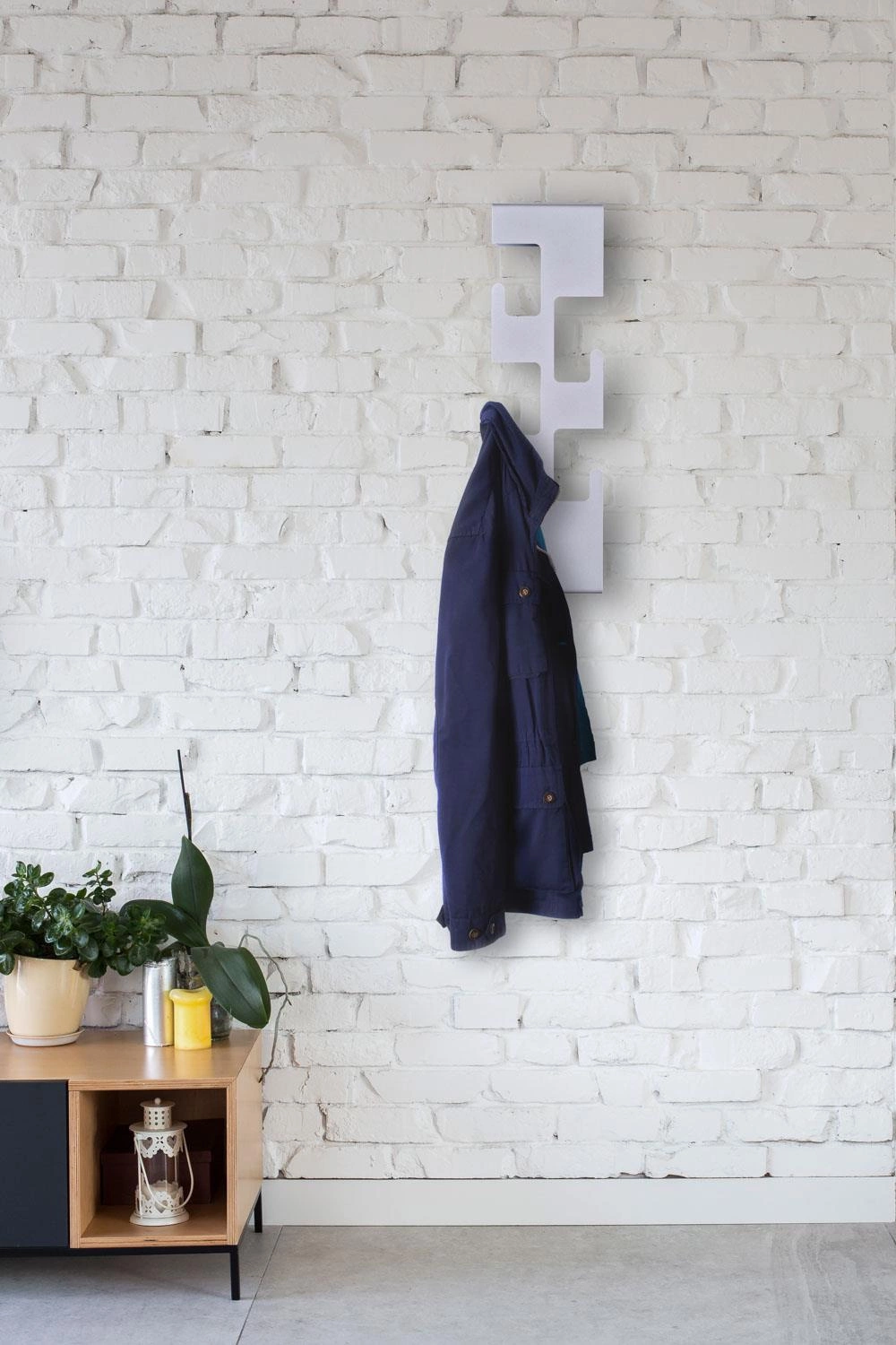 Wieszak Zip wykonany został z metalu malowanego proszkowo w półmatowym wykończeniu. Prosta forma przypomina suwak co sprawia, że wieszak nabiera nowoczesnego wyrazu i będzie wyglądał interesująco w każdym pomieszczeniu. Wieszak ma lekko trójwymiarową formę, posiada 4 haczyki, które zostały zaprojektowane w taki sposób aby ułatwić utrzymanie porządku w pomieszczeniu.Do wieszaka załączony jest zestaw montażowy, składający się z 4 kołków, 4 śrubek i 4 zaślepek. Kolor RAL 9006