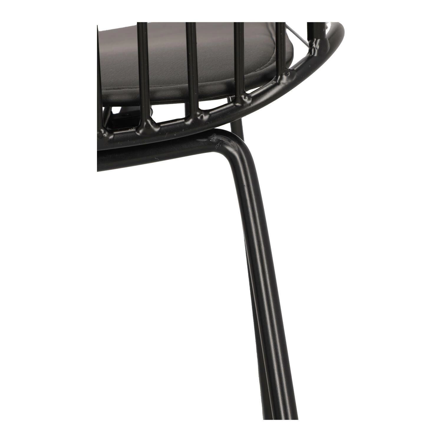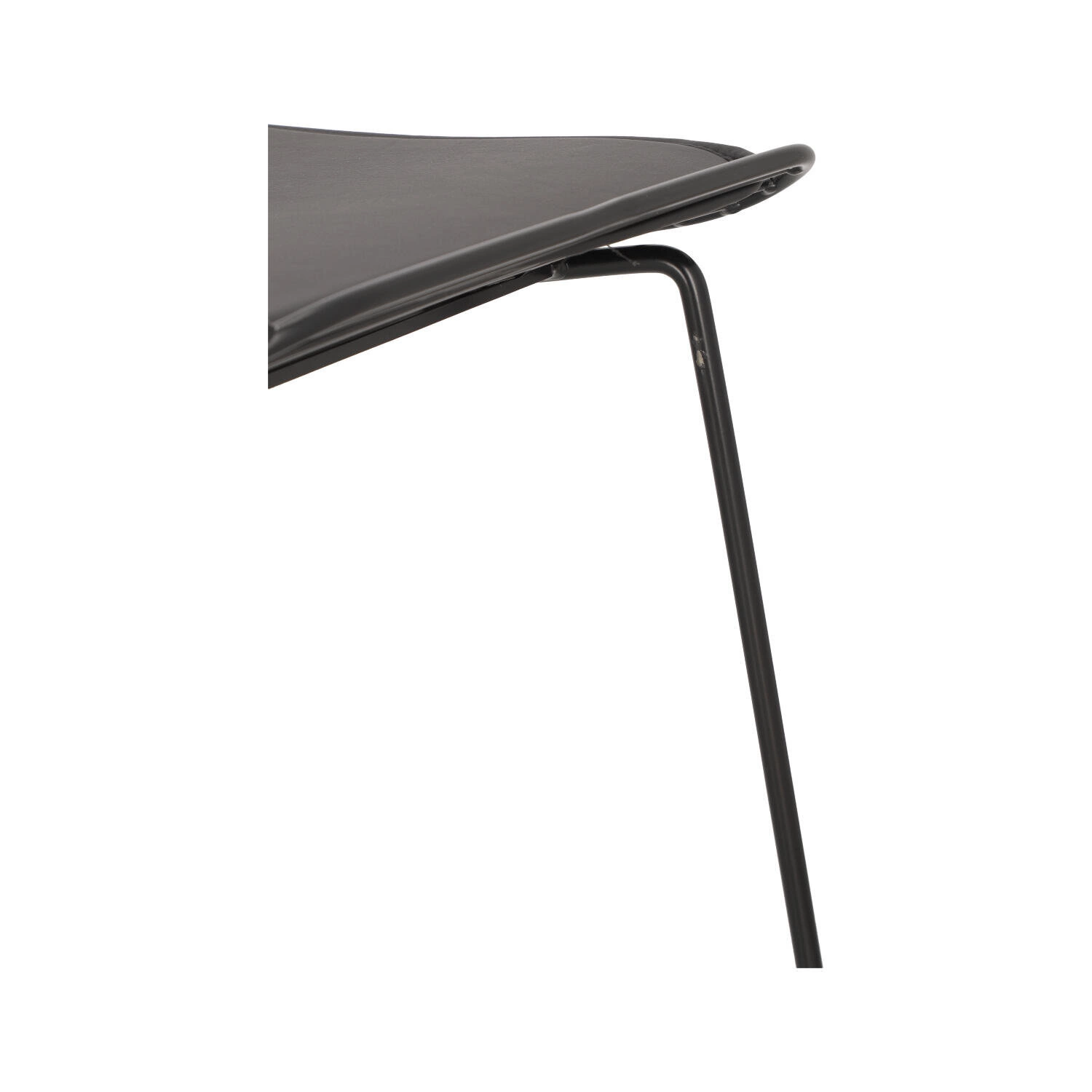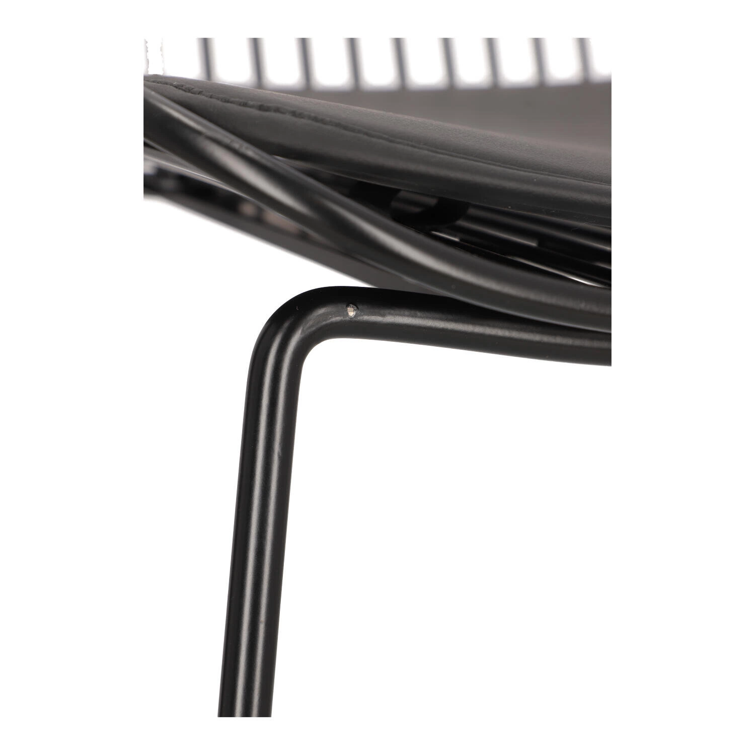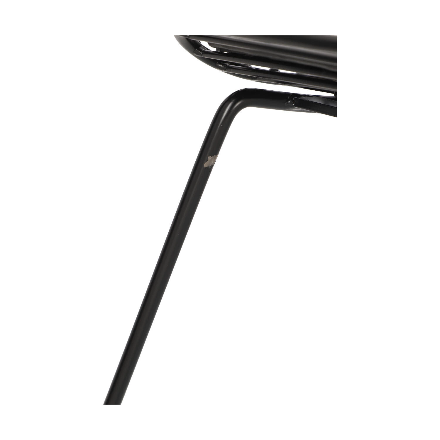 Czarne loftowe krzesło Dill z poduszką z eko skóry to odważny projekt do nowoczesnego wnętrza. Zachwycające w swojej prostocie krzesło będzie nie tylko wygodnym siedziskiem, ale również ozdobą salonu lub jadalni. Krzesło o siedzisku oraz oparciu wykonanych z wielu cienkich przęseł jest nietypowym meblem. Podstawa krzesła to płozy zabezpieczone nakładką z tworzywa, która zapobiega rysowaniu się powietrzni pod krzesłem. Krzesło z metalu pomalowanego proszkowo na czarno utrzymane zostały w półmatowym wykończeniu. Poduszka na siedzisku jest zdejmowana. Cechy produktu: - odpryski farby na podstawie