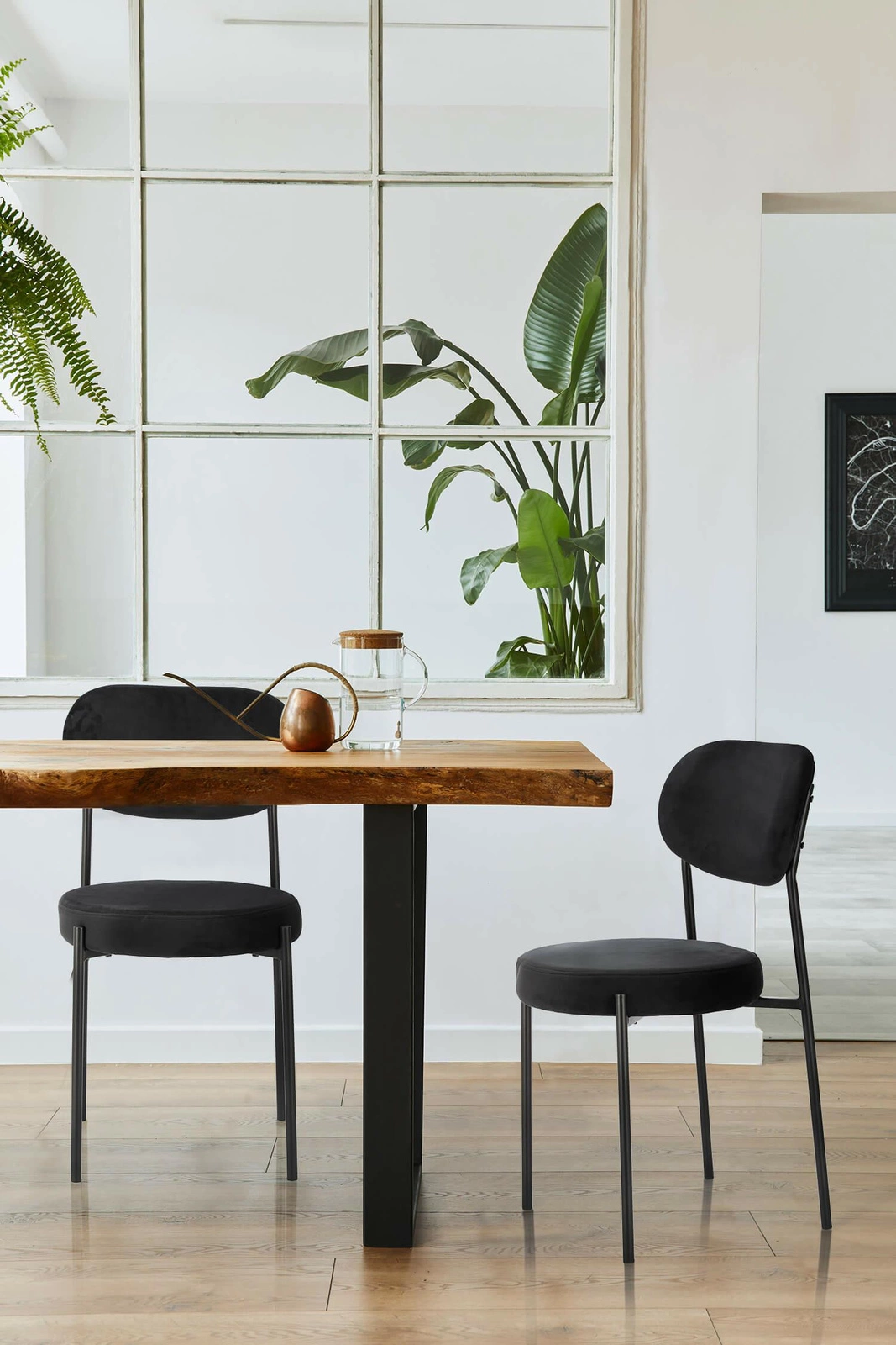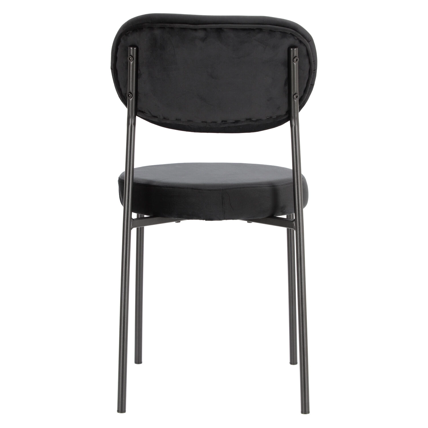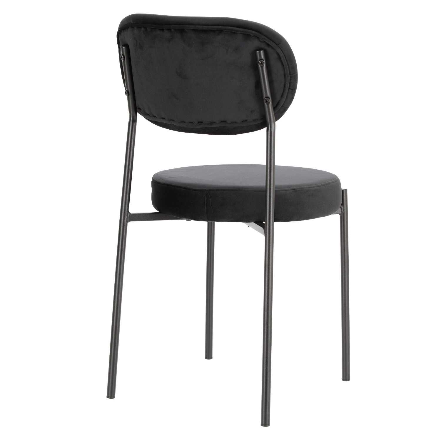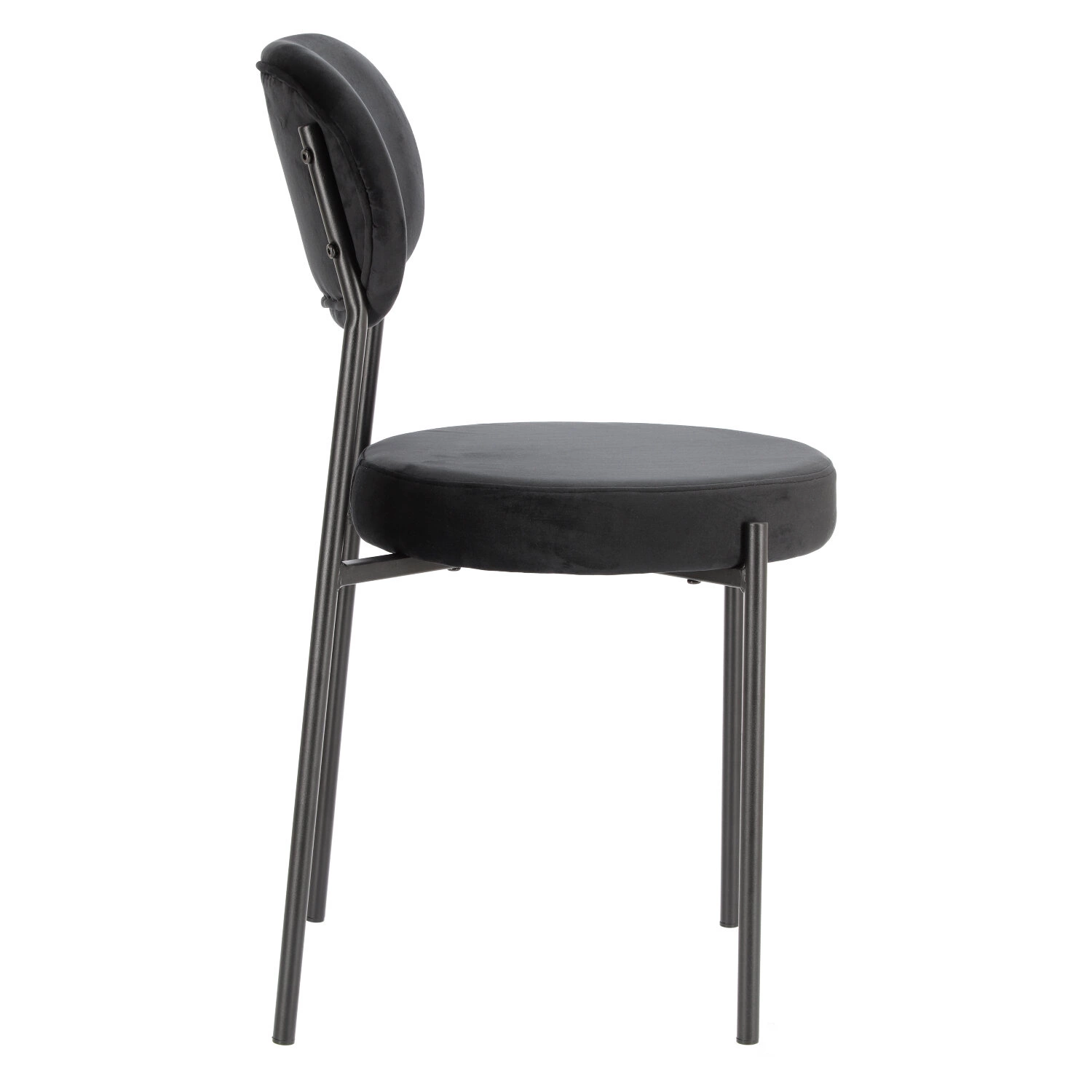 Krzesło Camile w tkaninie velvet o niezwykle ciekawym designie świetnie sprawdzi się w niedużym salonie lub jadalni. Okrągłe siedzisko wraz z wyprofilowanym oparciem nadaje temu modelowi futurystycznego wyglądu, ale także pozwala na komfort podczas siedzenia przez dłuższy czas. Miękkie siedzisko wypełnione zostało gąbką oraz pokryte tkaniną przypominającą welur, która jest niezwykle miękka w dotyku. Wyprofilowane oparcie to połączenie giętej sklejki i gąbki obite również welurową miękką tkaniną. Siedzisko krzesła spoczywa na metalowym krzyżaku, który łączy ze sobą metalowe, malowane proszkowo nogi. Smukłe nogi zapewnią konstrukcji odpowiednią stabilność, ale także nadadzą jej wizualnej lekkości. Tapicerowane krzesło na czarnych nogach to uniwersalny i ponadczasowy design. Krzesło Camile dostępne jest w trzech różnych kolorach tkanin.