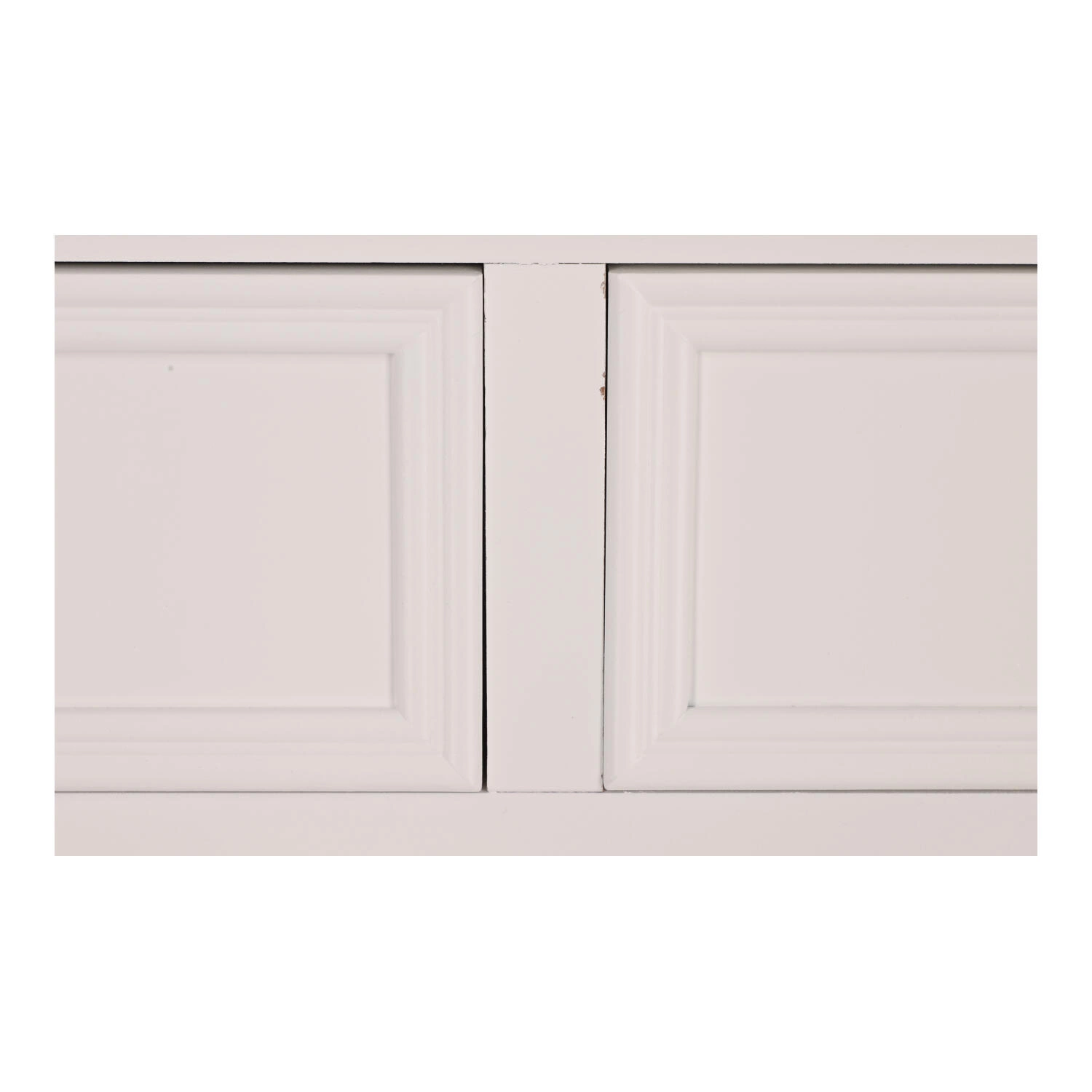 Materiał korpusu, frontów i nóg komody; płyta pilśniowa Wymaga montażu. Komoda wyposażona w 5 szuflad. 3 szuflady duże i dwie małe. Cała biała komoda sprawdzi się jako mebel w sypialni jak i przedpokoju. cechy produktu: -uszkodzona górna tylna krawędź