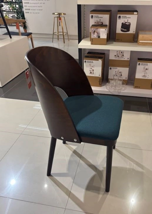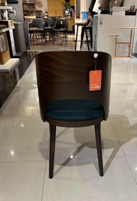Cechy produktu outletowego: wyprzedaż ekspozycji, wybarwienie drewna buk standard orzech 04, tkanina grupa 3 wool 91390110