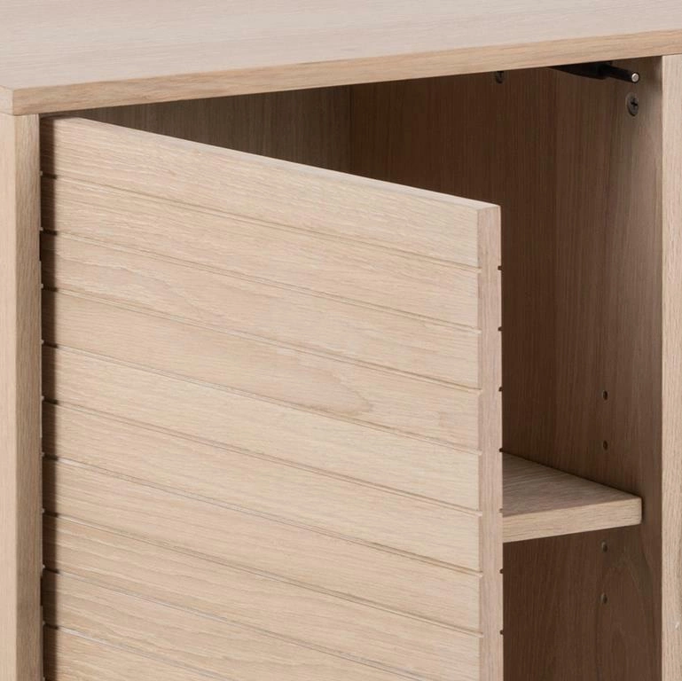 Oferując zarówno miejsce do przechowywania, jak i harmonijny design, komoda Linley będzie idealna zarówno do nowoczesnych, jak i tradycyjnych przestrzeni. Schowaj swoje drobiazgi na trzech regulowanych półkach ukrytych za drzwiczkami o wyjątkowo ciekawym designie.