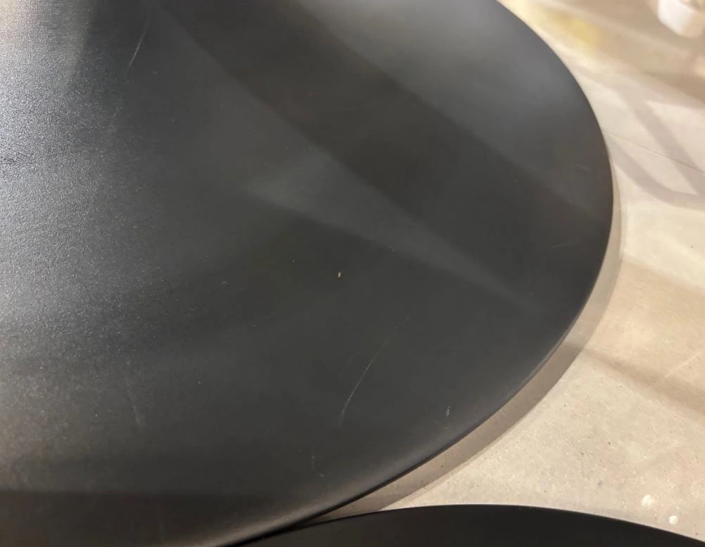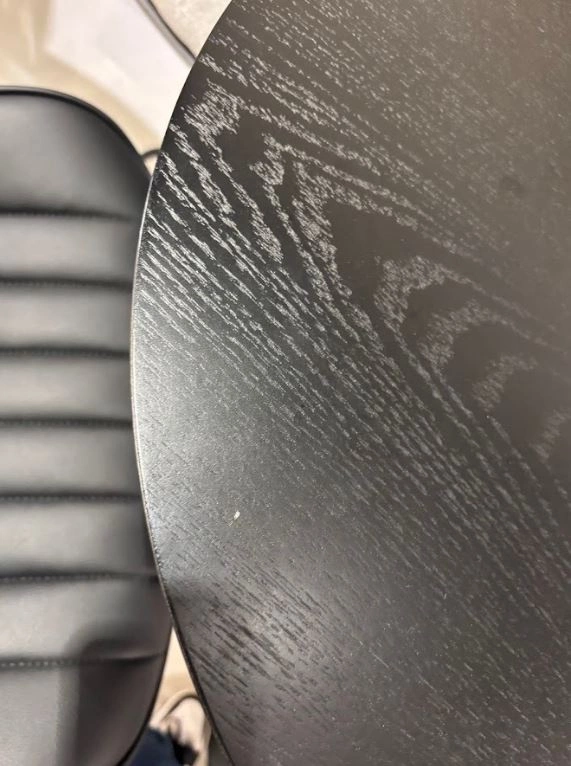 Cechy produktu outletowego: Widoczne na zdjęciach zadrapania na blacie i podstawie