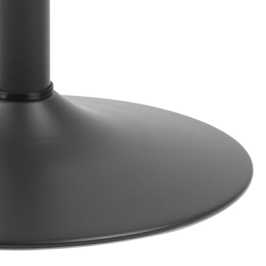Ibiza to nowoczesny stół barowy. Okrągły blat o średnicy 60cm pomieści nieduże przekąski. Blat został zrobiony z płyty MDF oklejonej czarnym fornirem. Podstawą stołu jest noga w kształcie trąbki. Podstawa została zrobiona z metalu pomalowanego na czarno. Wykończenie stolika pozostało matowe.