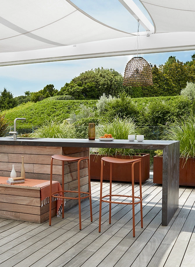 Inspiracją do stworzenia tego hokera był powrót mody lat 50' i 60', złotych dekad Hollywood, natchnienia wielu współczesnych artystów. To właśnie na tak stylizowanych hokerach popijały kiedyś drinki gwiazdy takie jak Marilyn Monroe, Audrey Hepburn czy John Wayne. Siedzisko o wysokości 75 cm, sprawdzi się świetnie przy naszej nowoczesnej wyspie kuchennej, dodając jej tym samym charakteru retro. Ramę hokera wykonano z ocynkowanej rury o średnicy 20 mm. Aby zwiększyć komfort użytkowania, siedzisko zostało w specjalny sposób wyprofilowane, co sprawia, że jest bardzo wygodne. Wspornik umieszony w połowie wysokości nóg, nie tylko nadaje konstrukcji stabilności, ale będzie również idealnym podnóżkiem dla naszych stóp. Hoker jest odporny na warunki atmosferyczne, dlatego bez obaw można użytkować go na zewnątrz i ozdobić nim chociażby nasz ogrodowy bar.