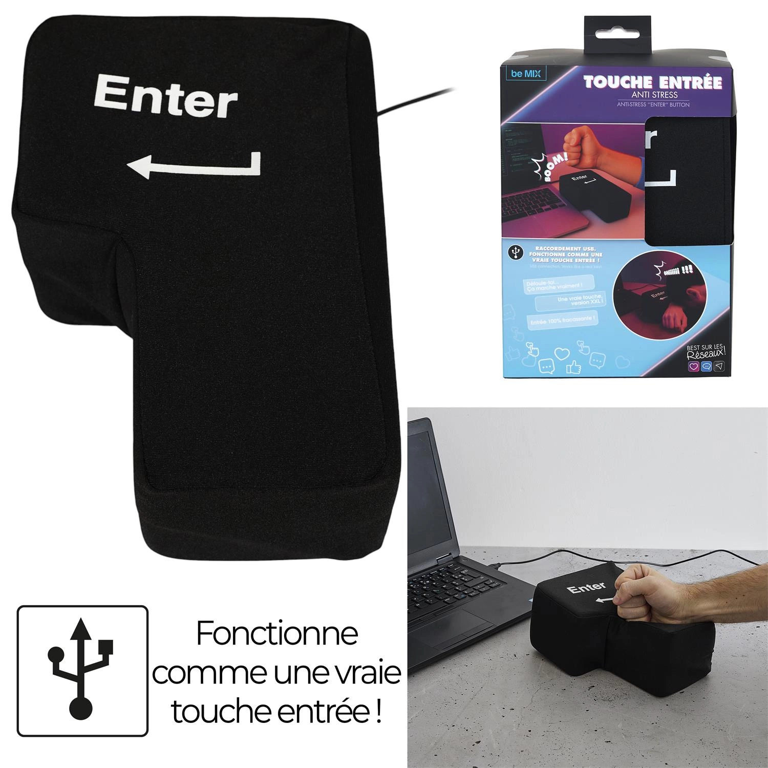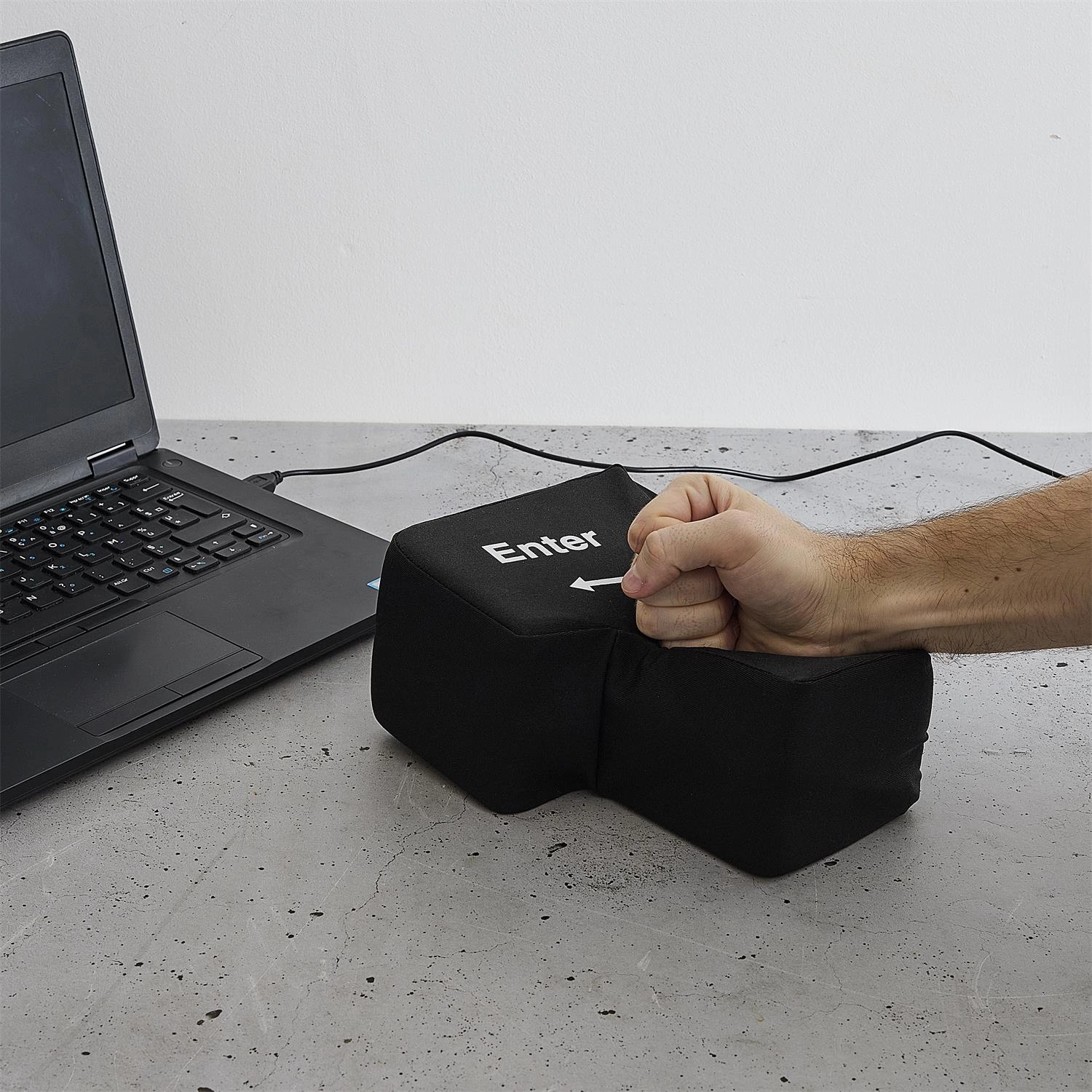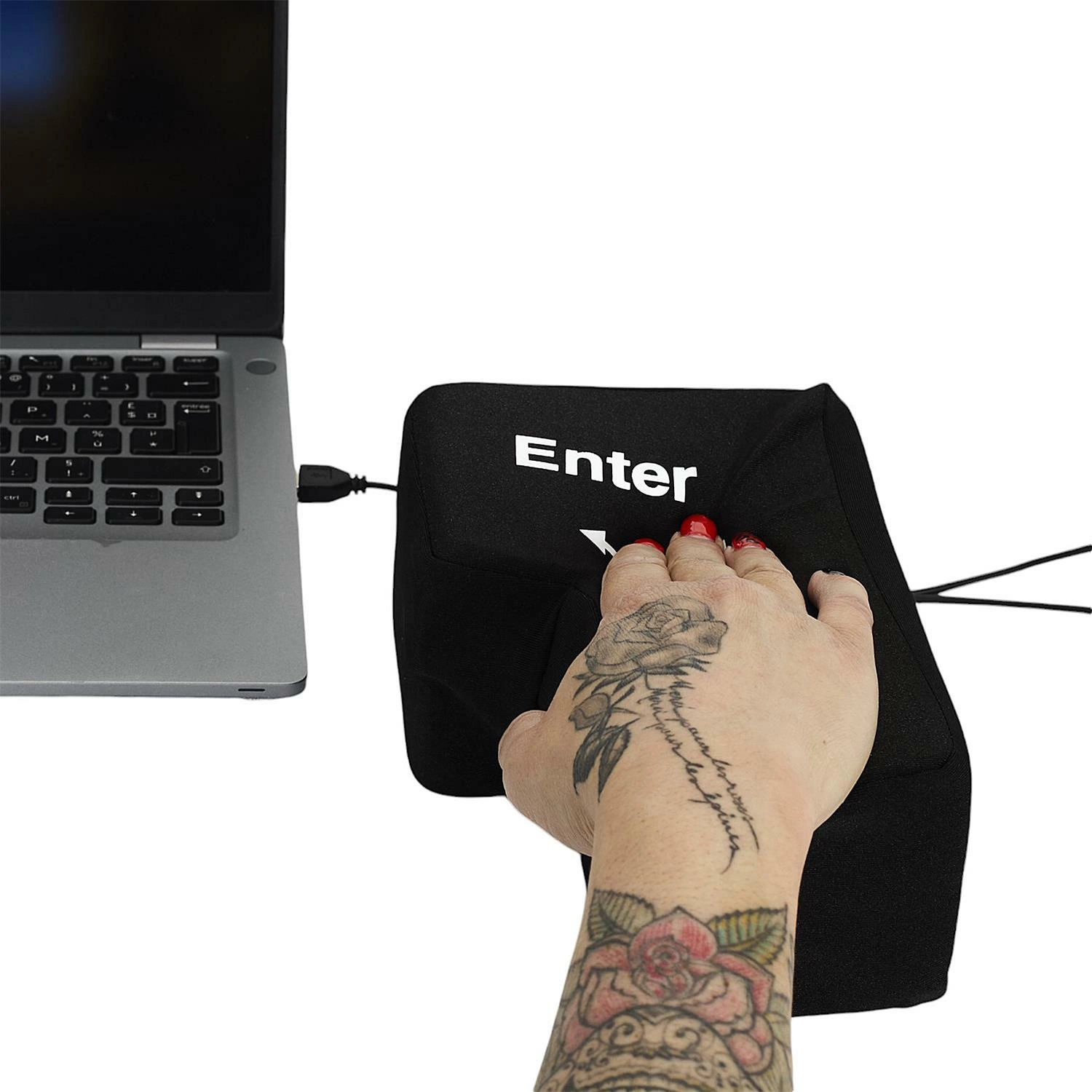 Intesi velké antistresové tlačítko klávesa Enter USB je moderní počítačový gadget, který spojuje funkci měkkého polštářku s praktickým využitím při každodenní práci u počítače. Vyznačuje se charakteristickým, zvětšeným tvarem klávesy Enter a elegantním černým provedením – je tak nejen stylovou dekorací pracovního stolu, ale také efektivní pomůckou pro snižování stresu. Ideální do kanceláře, na home office i jako originální dárek pro programátora nebo milovníka technologií. Díky USB portu a funkci Plug & Play nabízí pohodlné a okamžité použití.