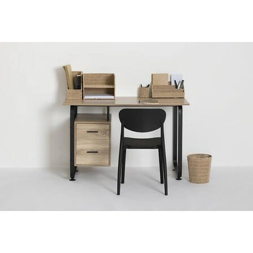 Organizer na biurko Kord to niezastąpiony element wyposażenia każdego biura. Dzięki niemu z łatwością utrzymasz porządek w swoich przyborach piśmienniczych. Zaprojektowany z myślą o funkcjonalności, pomieści długopisy, kredki, flamastry i inne niezbędne akcesoria, które zawsze będziesz mieć pod ręką. Wykonany z metalowego stelaża i plecionki z papierowego sznura, łączy w sobie trwałość i estetykę.