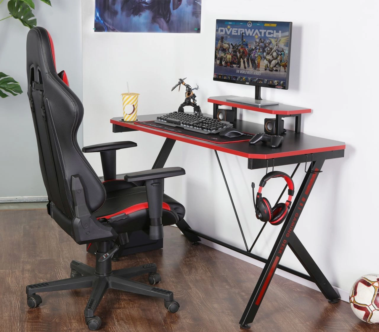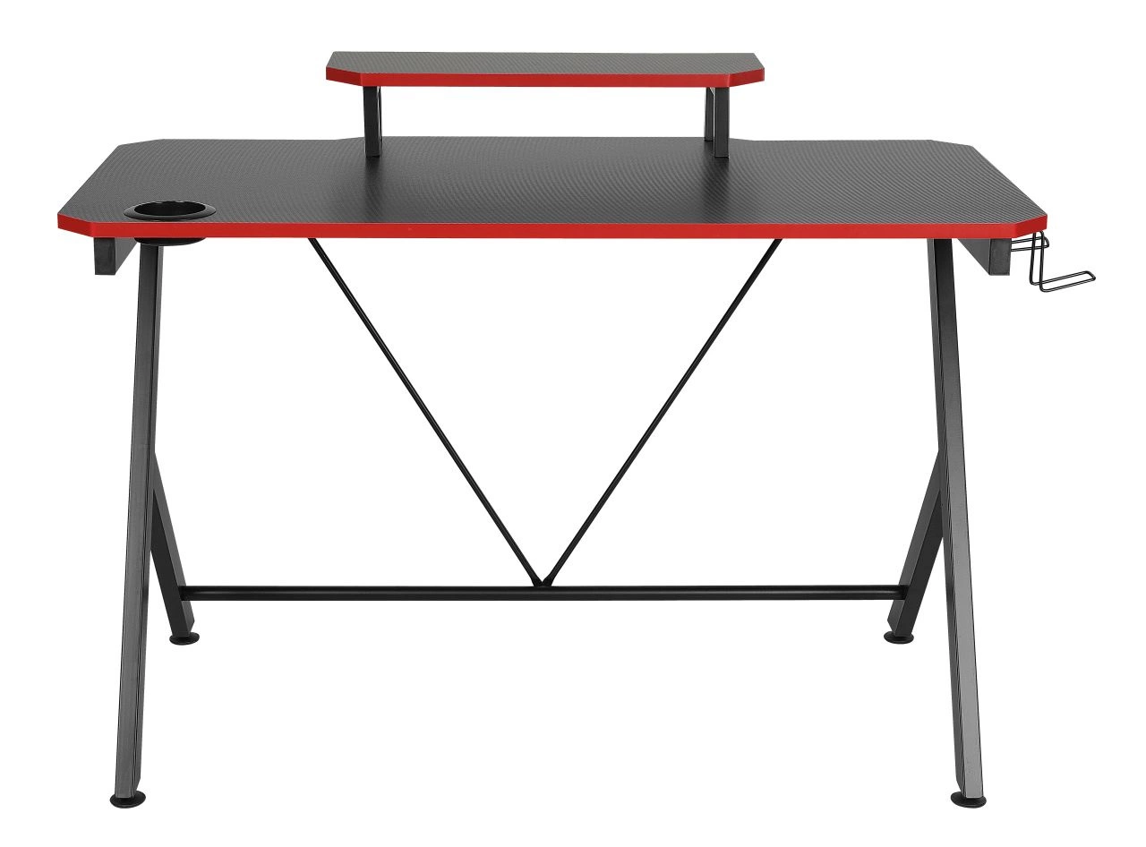 Biurko gamingowe Viktor marki Intesi to nowoczesny mebel o prostokątnym blacie, który wyróżnia się czarną kolorystyką z dynamicznymi czerwonymi akcentami oraz praktyczną nadstawką i uchwytem na kubek. Szerokość 120 cm i głębokość 60 cm zapewniają optymalną przestrzeń do pracy lub rozgrywek, a stabilna metalowa podstawa gwarantuje solidność na lata. Viktor to biurko stworzone z myślą o entuzjastach gamingu, ale doskonale sprawdzi się także jako biurko do pracy w nowoczesnym biurze czy pokoju młodzieżowym.