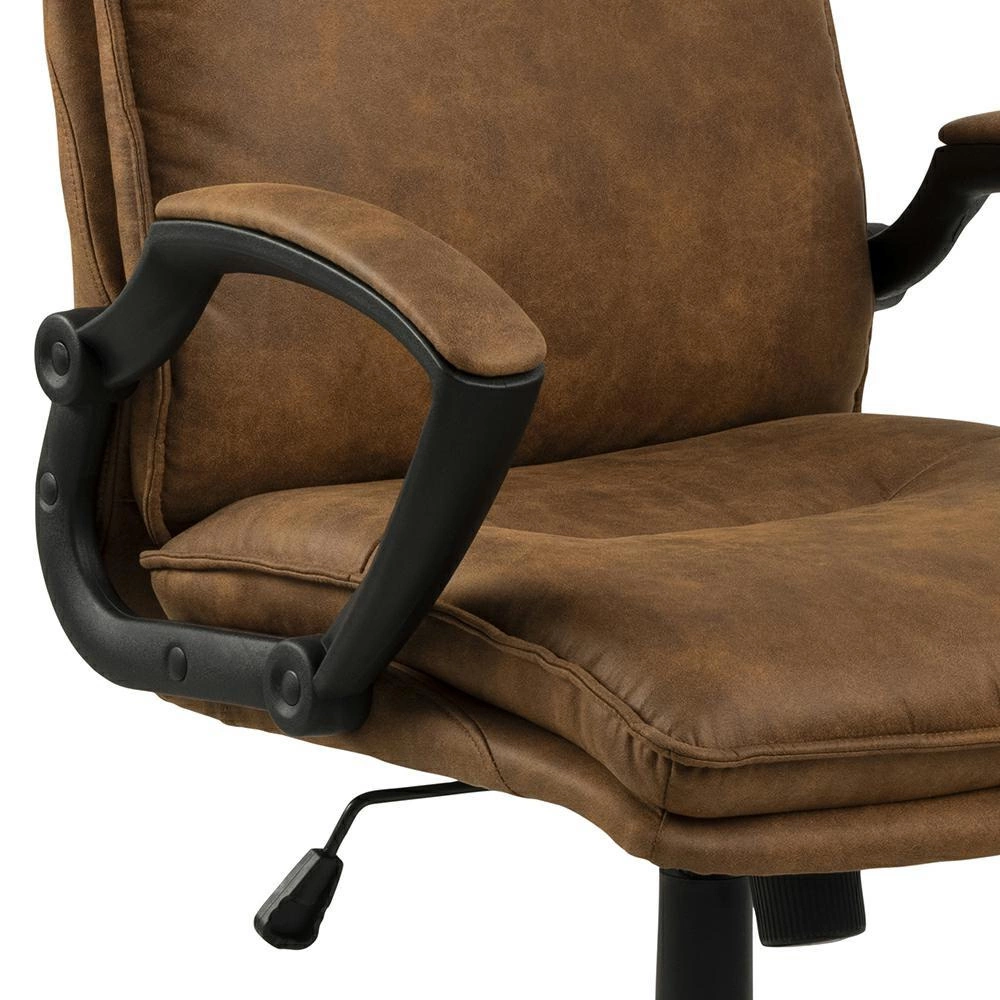 Fotel Brad to połączenie elegancji i funkcjonalności, które idealnie wpisuje się w nowoczesne aranżacje biurowe. Brązowa tapicerka nadaje wnętrzu przytulności, a minimalistyczna forma podkreśla profesjonalny charakter przestrzeni. Tkanina Preston Fabric Camel 24 jest nie tylko efektowna, ale także przyjemna w dotyku, dzięki czemu codzienne korzystanie z fotela staje się czystą przyjemnością. Subtelny kontrast brązowego siedziska i czarnej podstawy nadaje całości wyrazistego, a jednocześnie uniwersalnego wyglądu.