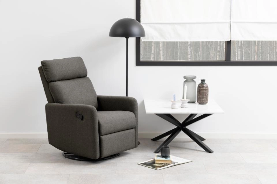 Fotel Mikkeli wypełniony został pianką poliuretanową, która cechuje się wieloletnią wytrzymałością. Będziesz mógł cieszyć się nim latami. Kolejną zaletą wykorzystanego materiału jest brak chłonności wody oraz odporność na środki chemiczne. Fotel tapicerowany tkaniną Sawana fabric grey 5. To model wyjątkowo komfortowy, posiada funkcję obrotu i regulacji kąta odchylenia. To jest duży plus dla osób, które wiele czasu spędzają w salonie. Wygoda w Mikkeli jest na najwyższym poziomie. Mebel utrzymuje metalowa podstawa w kolorze czarnym. Ilość kartonów: 1 Wymiary kartonów: 77,5x69x66cm Waga kartonów: 39kg