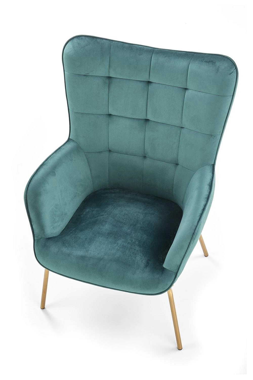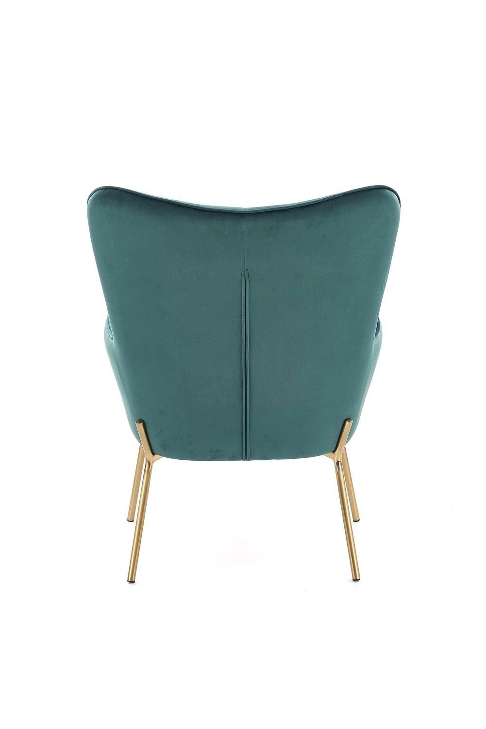 Fotel uszak Cabres zielony ciemny nowoczesny do salonu z podłokietnikami na złotych nogach