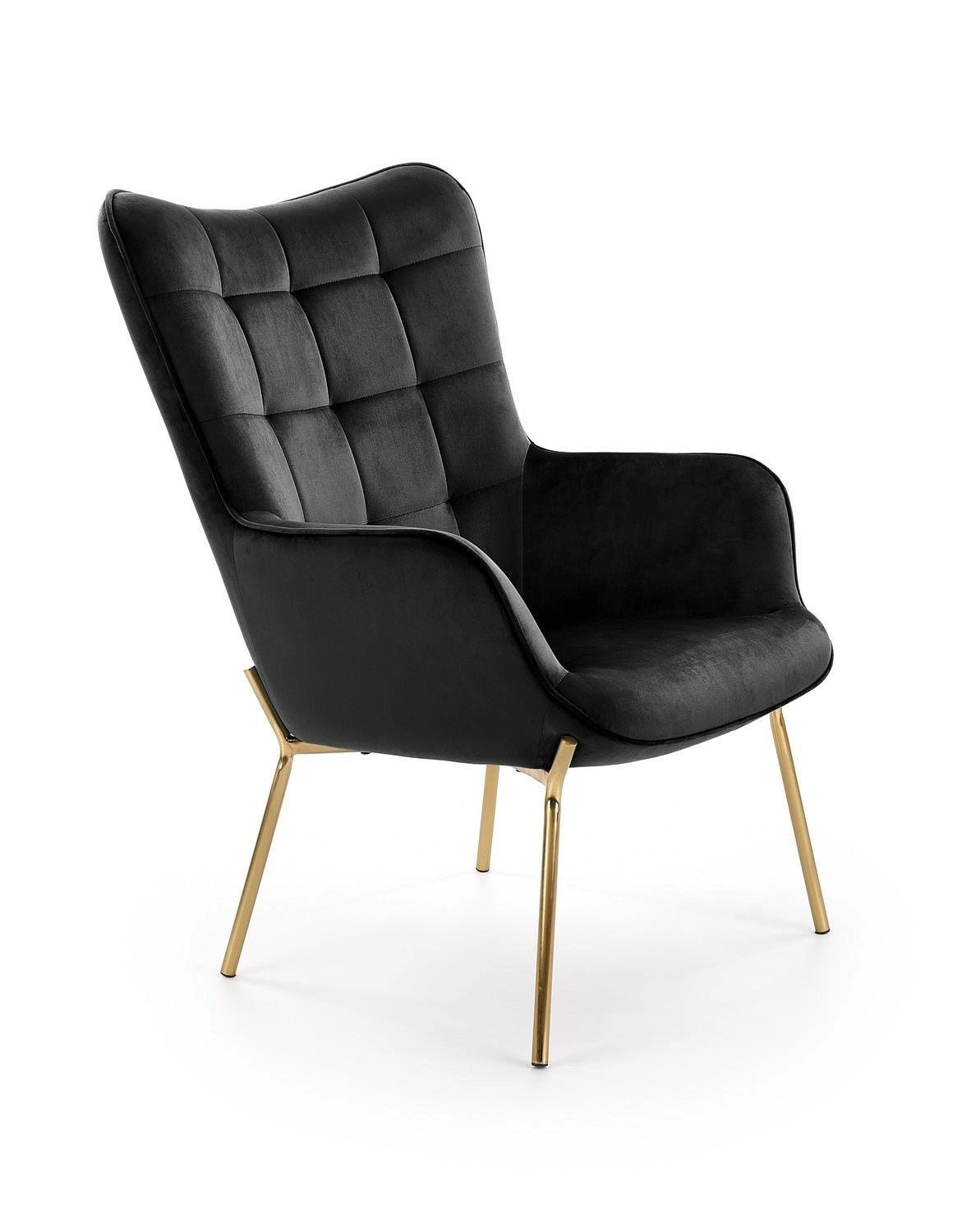 Fotel wypoczynkowy Cabres czarny welurowy do salonu nowoczesny z podłokietnikami Intesi