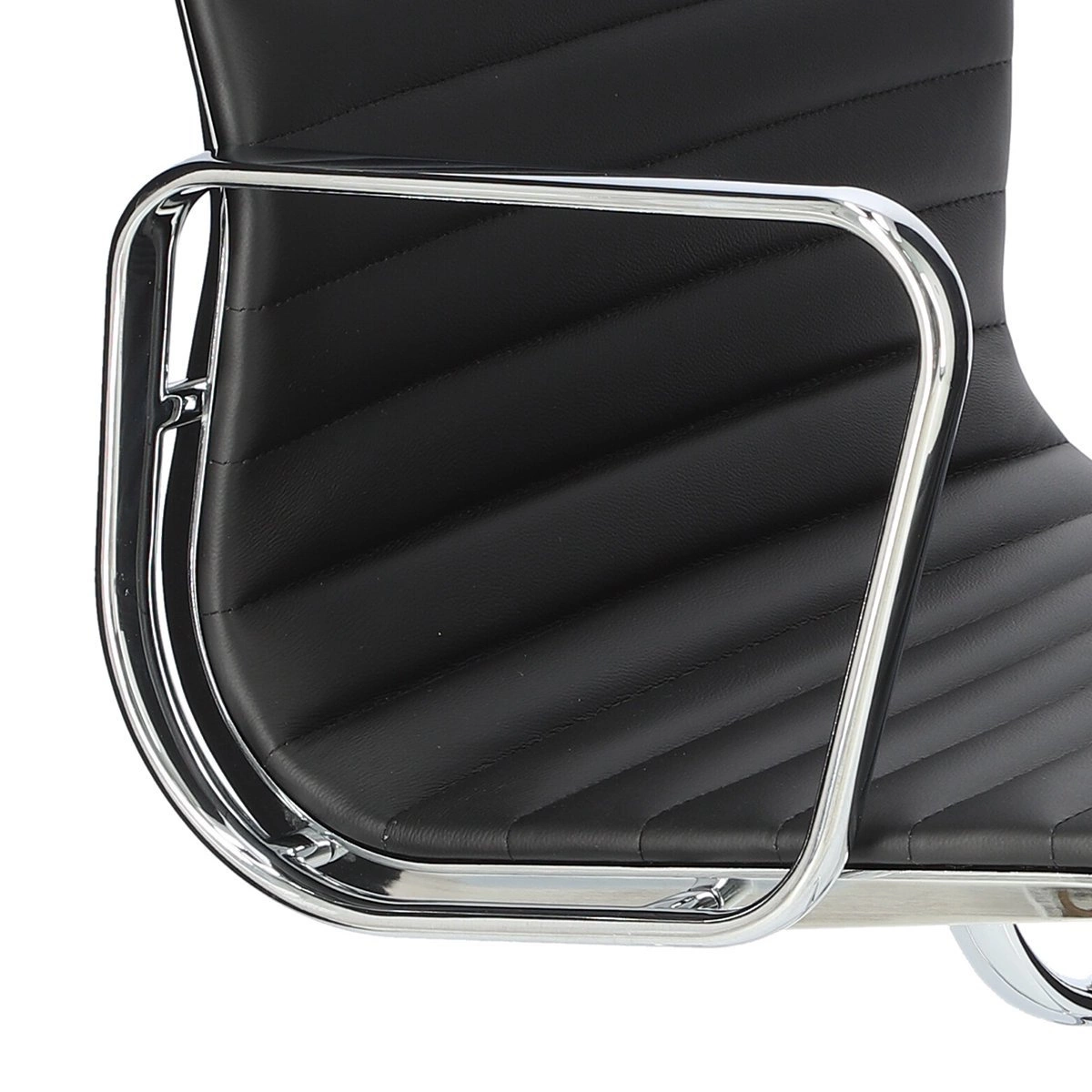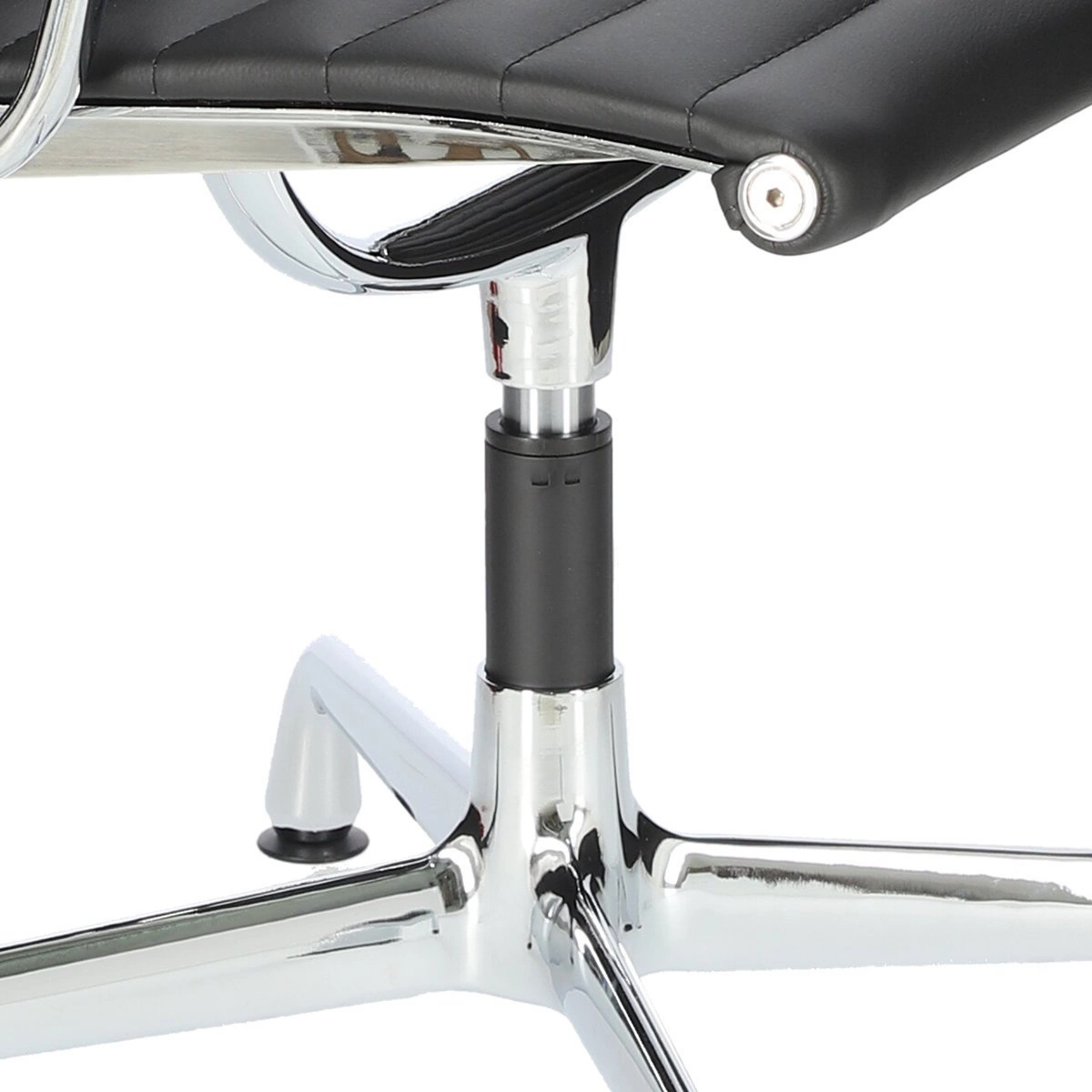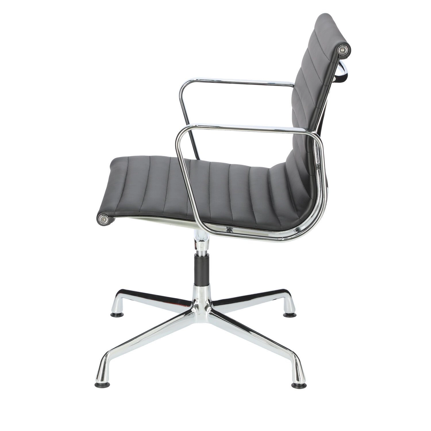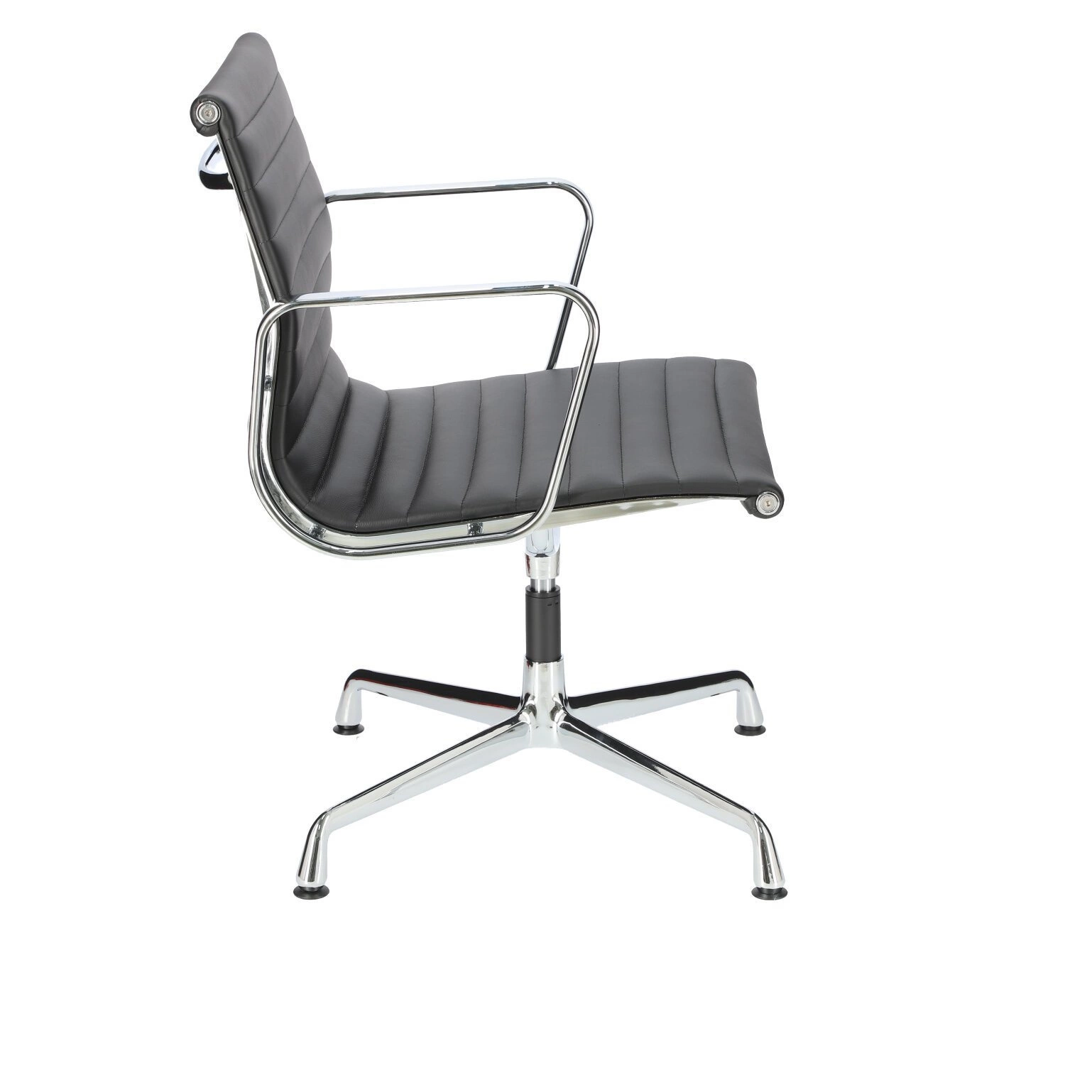 Fotel biurowy CH1081 marki D2.DESIGN to nowoczesny fotel obrotowy z podłokietnikami, tapicerowany naturalną czarną skórą i oparty na solidnej metalowej ramie. Przeznaczony do biura lub gabinetu, łączy wyrafinowany design inspirowany ikoną EA108 z wygodą codziennego użytkowania. Niewielkie wymiary – szerokość 58 cm, głębokość 57 cm i wysokość 75 cm – czynią z niego idealne krzesło biurowe do nowoczesnych przestrzeni, gdzie liczy się styl i ergonomia.
