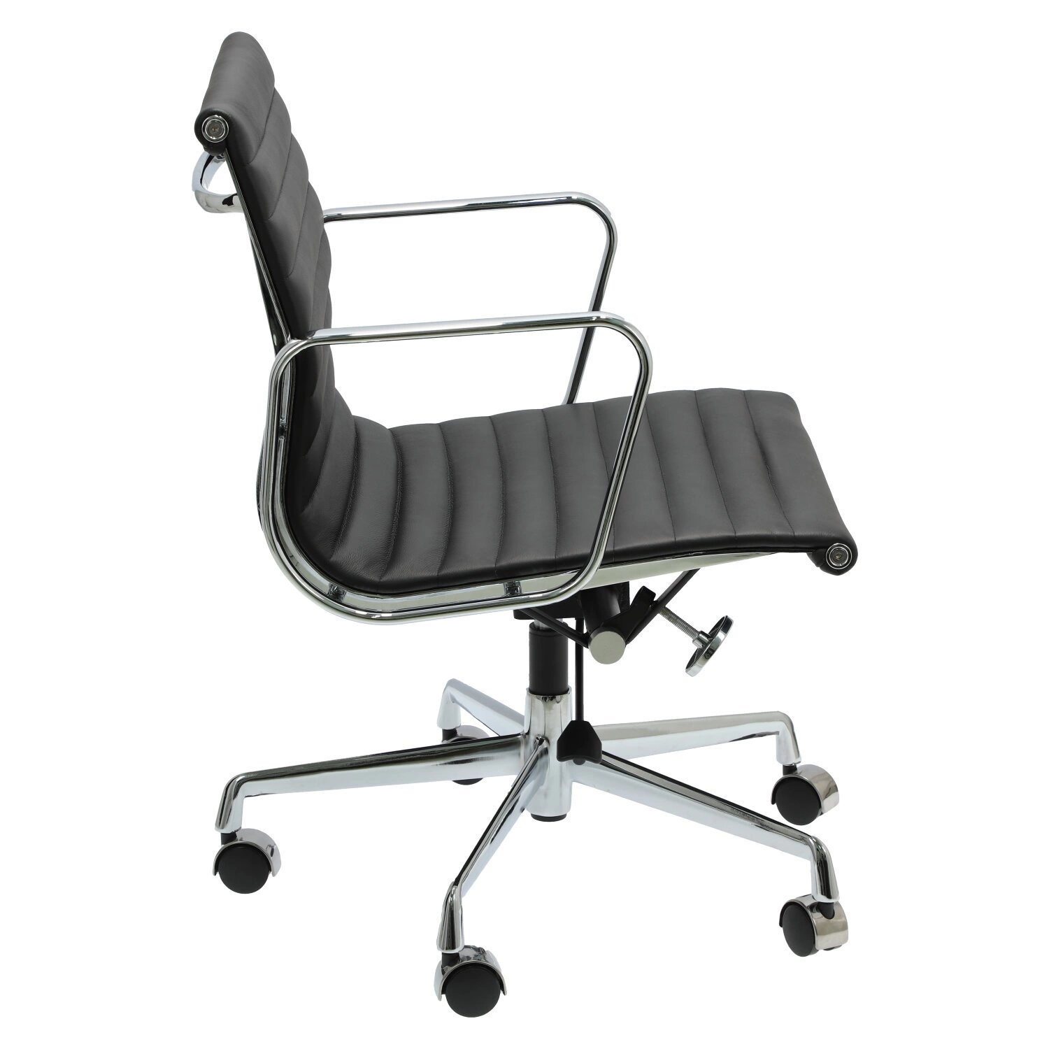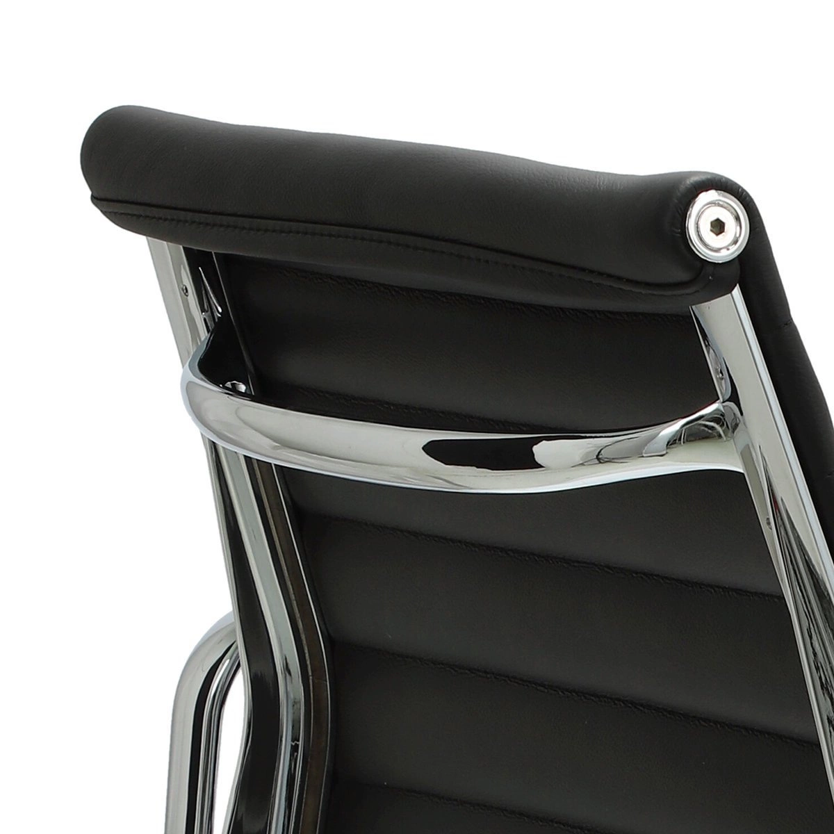 Fotel biurowy CH1171 PREMIUM tapicerowany czarną włoską skórą to realizacja marzenia o szykownym siedzisku do nowoczesnego gabinetu. Zamocowanie tkaniny po bokach chromowanej ramy pozwala na idealne dopasowanie fotela do kształtu naszego ciała, a eleganckie poziome przeszycia, oprócz eleganckiego wyglądu, odpowiadają za delikatny masaż kręgosłupa. Obrotowa podstawa na kółkach, regulacja wysokości oraz mechanizm pozwalający na relaksujące kołysanie, to kolejne udogodnienia tego czarnego fotela skórzanego.