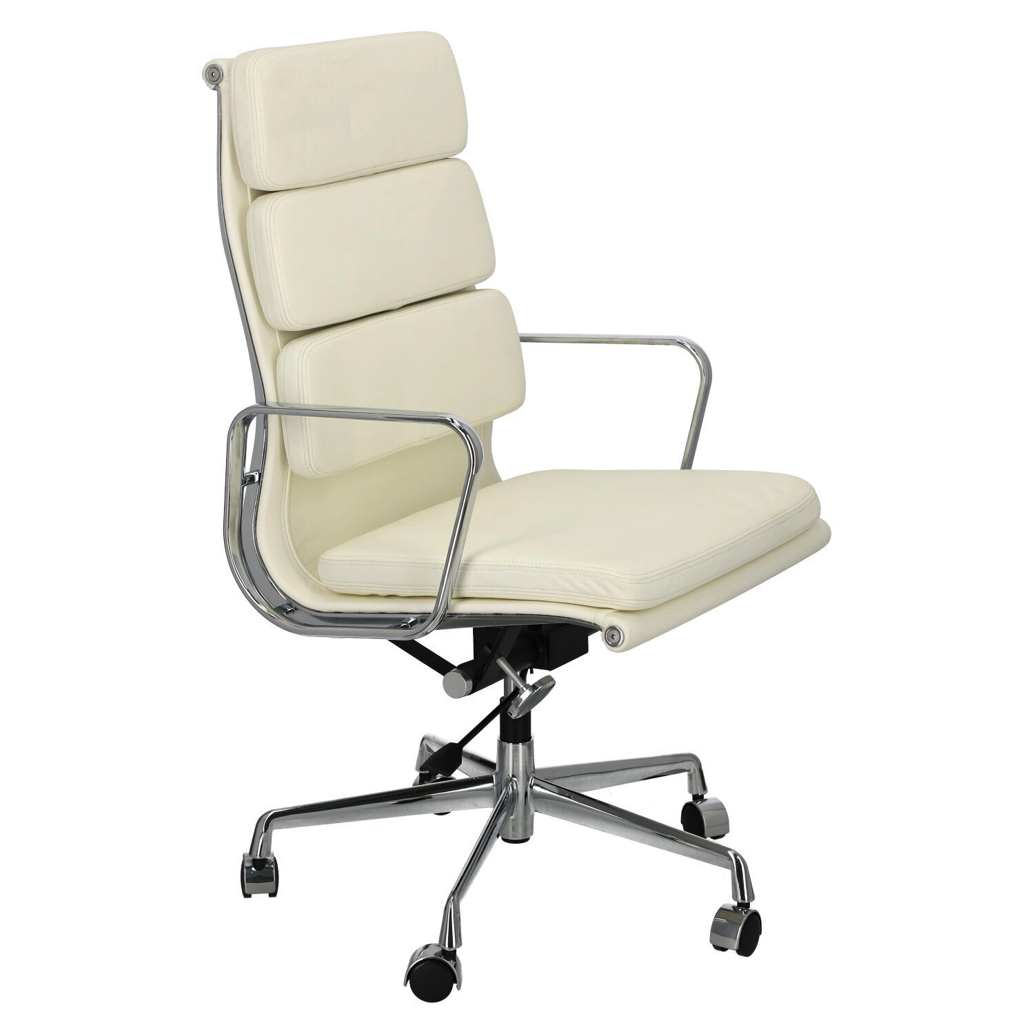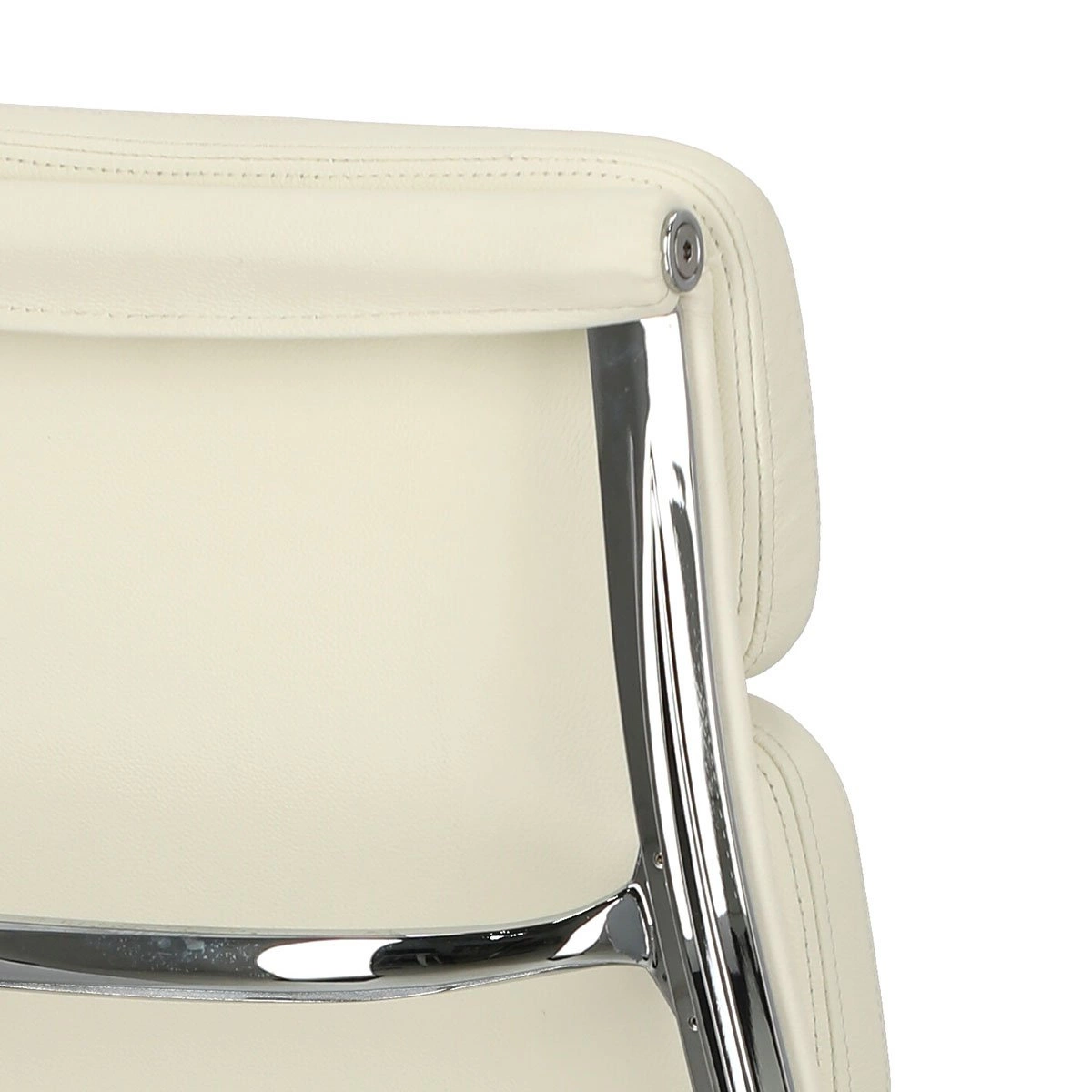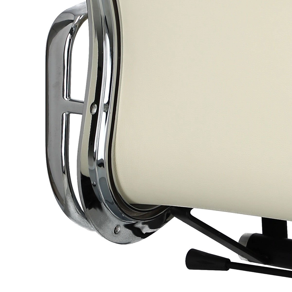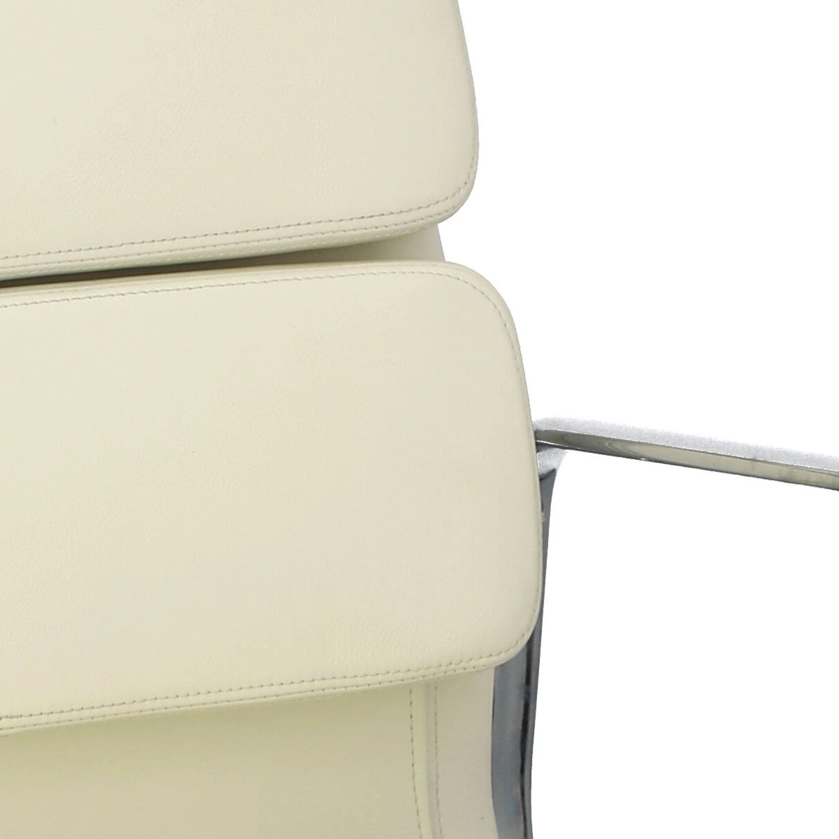 Fotel biurowy CH2191 PREMIUM wyróżnia kontrastowe połączeniem faktur. Miękka, biała tapicerka z włoskiej skóry o matowym wykończeniu została zestawiona z chłodnym, błyszczącym szkieletem z chromowanego metalu.