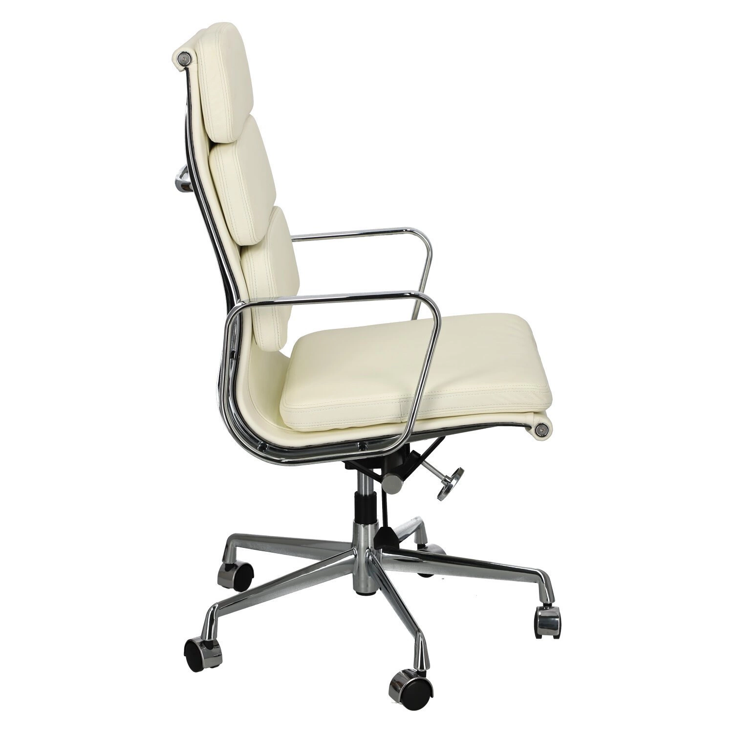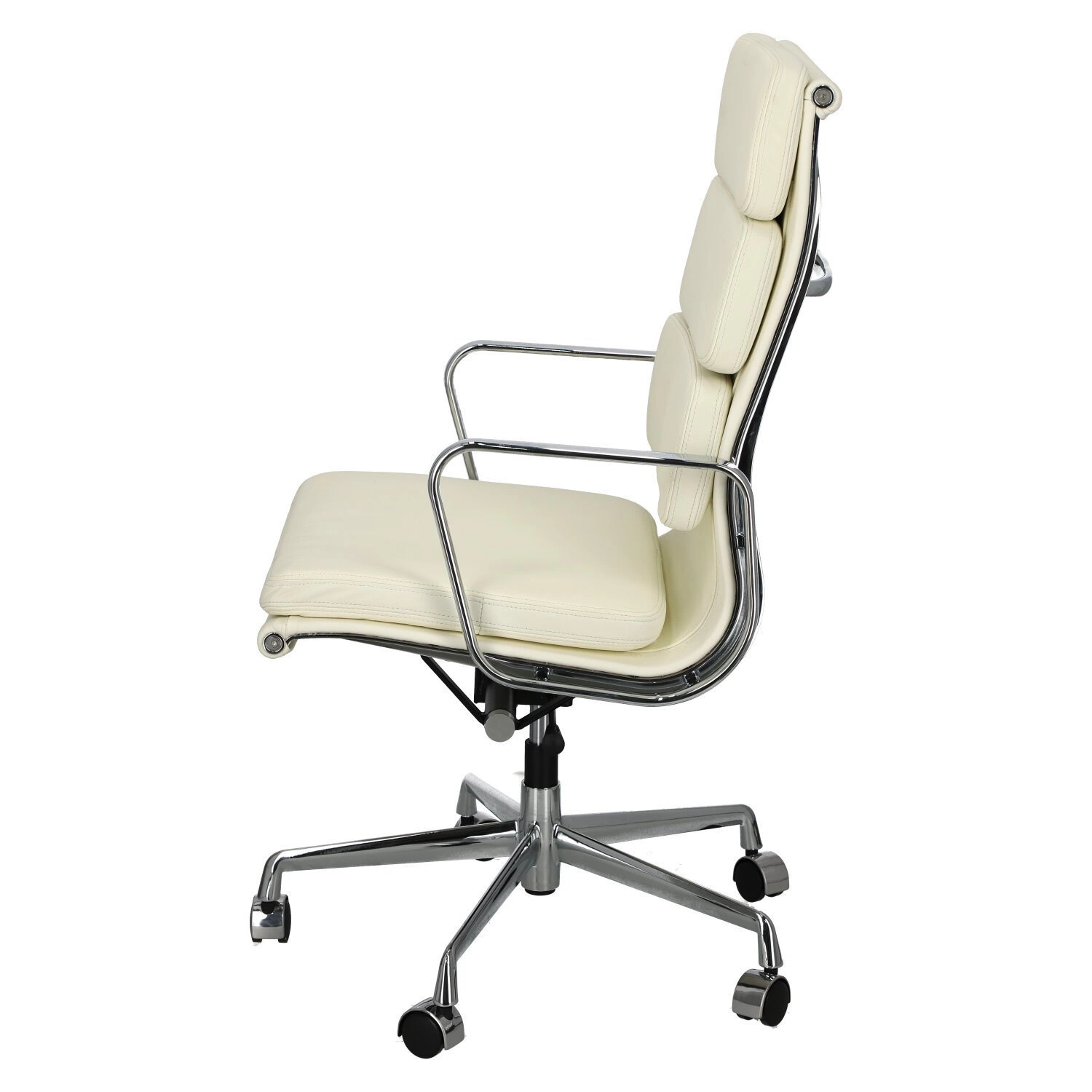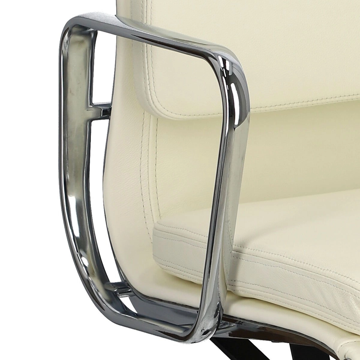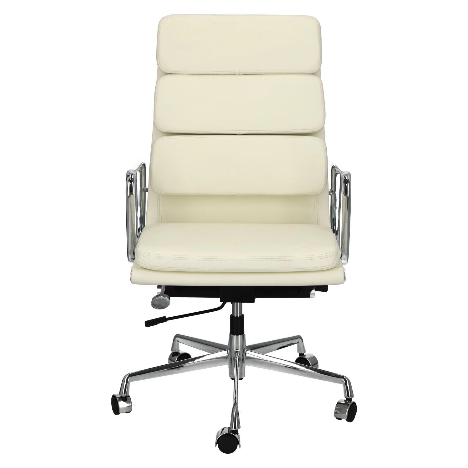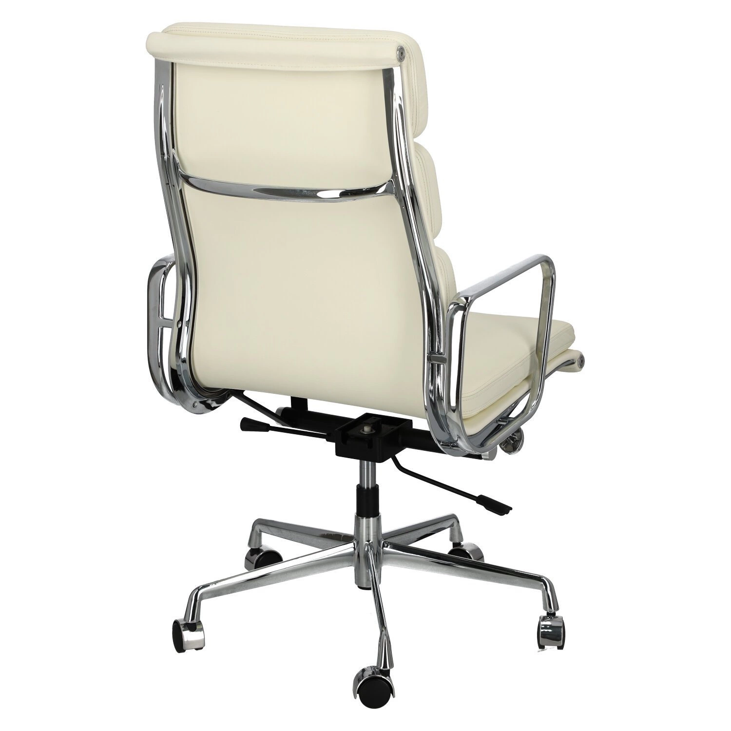 Fotel biurowy CH2191 PREMIUM wyróżnia kontrastowe połączeniem faktur. Miękka, biała tapicerka z włoskiej skóry o matowym wykończeniu została zestawiona z chłodnym, błyszczącym szkieletem z chromowanego metalu.