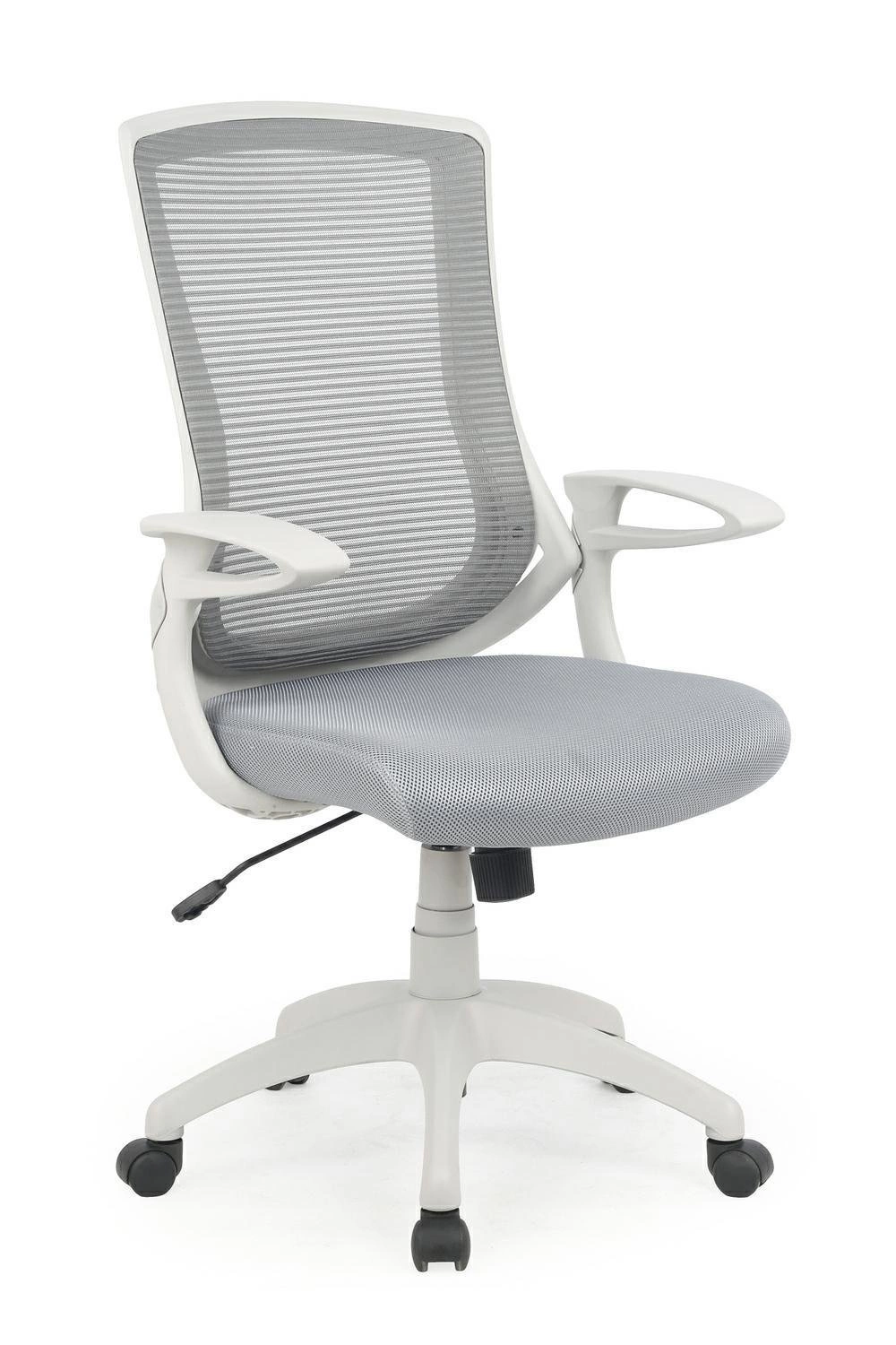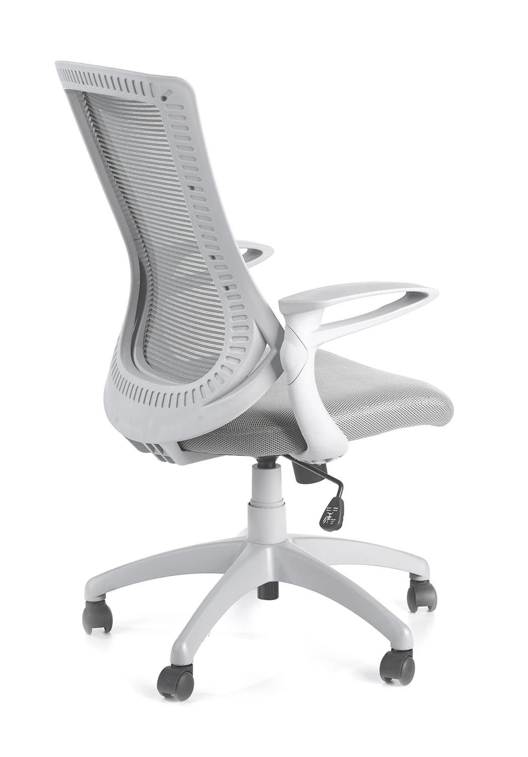 Fotel Gorial marki Intesi doskonale wpisuje się w wystrój nowoczesnych przestrzeni biurowych lub domowych gabinetów. Jasnoszara tkanina i półmatowe wykończenie nadają mu lekkości i świeżości, a kontrastujące elementy w kolorze białym i czarnym podkreślają jego designerski charakter. Stabilna podstawa z wytrzymałego tworzywa sztucznego zapewnia trwałość oraz łatwe przemieszczanie – kółka umożliwiają swobodne przesuwanie fotela bez rysowania podłogi.