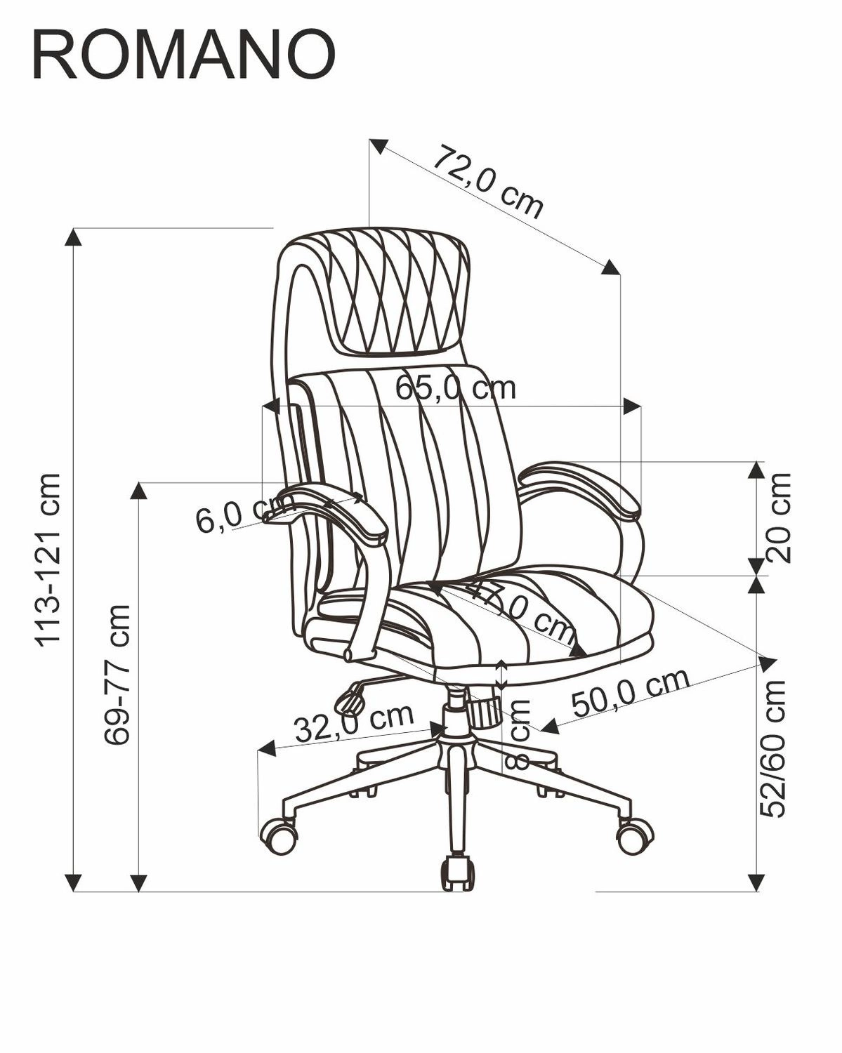 - Materiał: ekoskóra, tkanina membranowa, metal, tworzywo sztuczne, pianka tapicerska