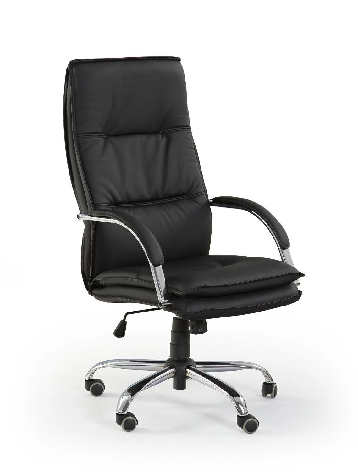 Fotel biurowy Nastey - Krzesło biurowe tapicerowane | Intesi Fotel biurowy Nastey od Intesi to idealne rozwiązanie do siedzenia w biurze. Nowoczesny fotel obrotowy posiada metalową podstawę i tapicerkę ze skóry ekologicznej, w kolorze czarnym. Maksymalne obciążenie wynosi 100 kg co gwarantuje trwałość i jest wyposażony w nieregulowane podłokietniki, które dodają komfortu. Przedstawiamy fotel biurowy Nastey, idealny dodatek do każdej przestrzeni biurowej. Dzięki nowoczesnemu wzornictwu, eleganckiej metalowej podstawie i mechanizmowi odchylania tilt, krzesło to jest godne bycia Twoim wsparciem w każdym miejscu pracy. Jego maksymalne obciążenie wynoszące 100 kg jest idealne dla każdego rozmiaru ciała. Krzesło jest tapicerowane elegancką skórą ekologiczną w kolorze czarnym, a kauczukowe kółka zapewniają komfort i ciche przemieszczanie. Regulowana wysokość od 108 do 115 cm przyczynia się do zapewnienia najbardziej komfortowego krzesła biurowego na rynku. Dzięki stabilnemu podparciu ciała i stabilności, krzesło to jest czymś, czego nie znajdziesz nigdzie indziej. Nie przegap swojej szansy na posiadanie nowoczesnego mebla biurowego, który podkreśla wyrafinowanie i luksus. Fotel biurowy Nastey to idealny towarzysz zapewniający produktywność i relaks w każdej godzinie pracy. O tym warto pamiętać! Wygodny i nowoczesny design pasujący do większości biur Maksymalne obciążenie 100 kg zapewnia stały komfort każdemu użytkownikowi Mechanizm regulacji wysokości i nachylenia zapewnia ergonomiczne wsparcie Tapicerka z eko skóry dodaje odrobinę luksusu do miejsca pracy