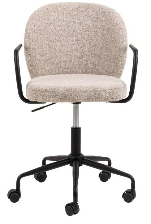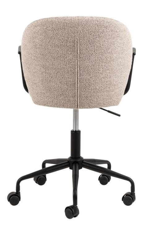 - Fotel biurowy Patricia Monza 60 ma beżową tapicerkę typu bouclé, która dodaje mu elegancji.