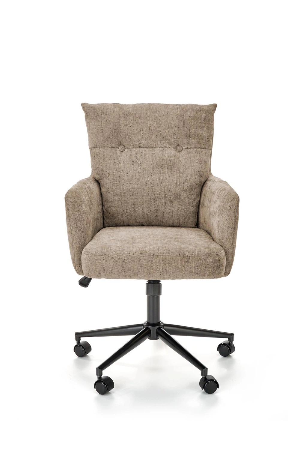 Fotel biurowy Resof beżowy - Nowoczesny wygląd i wygoda dla Twojego Gabinetu | Intesi Fotel biurowy Resof to doskonały wybór dla Twojego gabinetu, łączący nowoczesny design z funkcjonalnością. Podstawa wykonana z metalu gwarantuje solidność i trwałość. Nieregulowane podłokietniki zapewniają wygodę podczas siedzenia, a maksymalne obciążenie 100 kg umożliwia jego użytkowanie zarówno dla młodszych, jak i dorosłych. Dzięki mechanizmowi tilt, fotel pozwala na odchylenie oparcia, co umożliwia krótki odpoczynek podczas długich godzin pracy w biurze. Fotel Resof posiada 5 kółek, które zapewniają łatwe poruszanie się po pomieszczeniu i swobodność w aranżacji. Siedzisko pokryte jest tkaniną w beżowym kolorze, co nadaje mu elegancji i doskonale wpisuje się w nowoczesny wygląd wnętrza. Regulacja wysokości siedziska (50 - 60 cm) umożliwia dostosowanie fotela do indywidualnych preferencji, co zapewnia odpowiednią postawę i komfort podczas siedzenia. Fotel biurowy Resof charakteryzuje również kompaktowy rozmiar (szerokość 59 cm, głębokość 70 cm) i niewielka waga - 12,0 kg, co ułatwia jego przenoszenie i dopasowanie do różnych przestrzeni. Fotel Resof to nie tylko funkcjonalne siedzisko, ale także designerski element, który dodaje charakteru Twojemu gabinetowi i zapewnia komfort w trakcie codziennej pracy. O tym warto pamiętać! Fotel biurowy Resof - nowoczesny wygląd i wygoda dla Twojego gabinetu. Solidna metalowa podstawa zapewniająca trwałość i stabilność. Mechanizm tilt umożliwiający odchylenie oparcia dla krótkiego odpoczynku podczas pracy. Tapicerka z tkaniny nadaje fotelowi elegancji i doskonale wpisuje się w nowoczesny wygląd wnętrza.