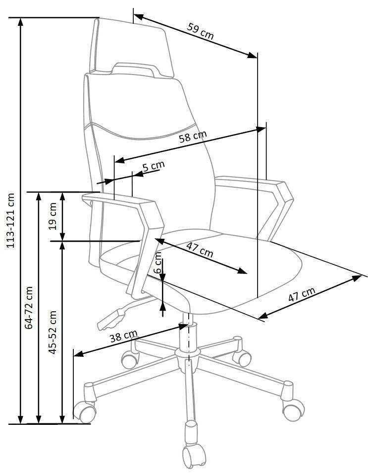 Tapicerka wykonana z wytrzymałej tkaniny gwarantuje trwałość i długotrwałe użytkowanie. Nie musisz martwić się o szybkie zużycie i zniszczenie fotela - Varis jest stworzony, aby służyć Ci przez wiele lat.Dzięki regulowanej wysokości fotela i siedziska, możesz łatwo dostosować go do swoich preferencji. Zakres regulacji wynosi od 113 do 121 cm dla całkowitej wysokości fotela i od 45 do 52 cm dla wysokości siedziska. Niezależnie od Twojej postury i wzrostu, możesz znaleźć idealne ustawienie, które zapewni Ci optymalną wygodę i wsparcie.