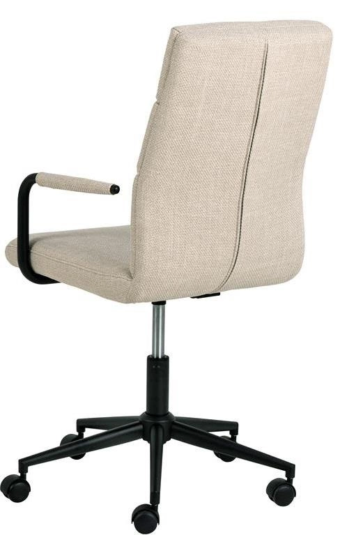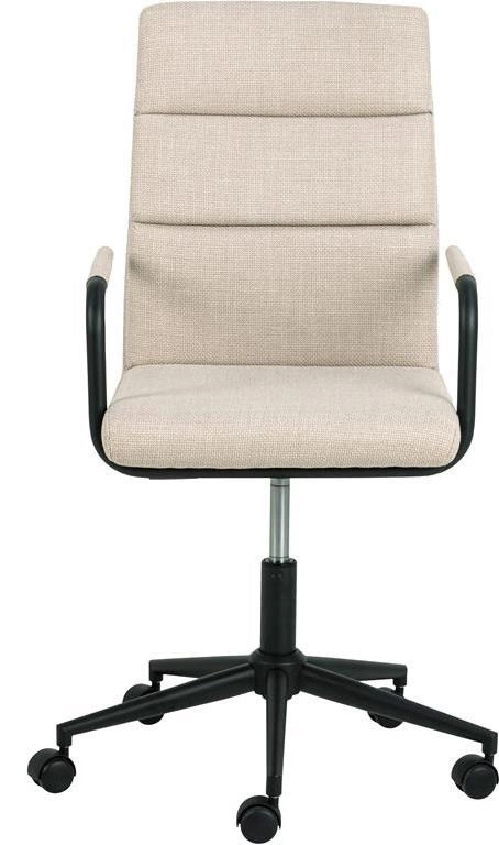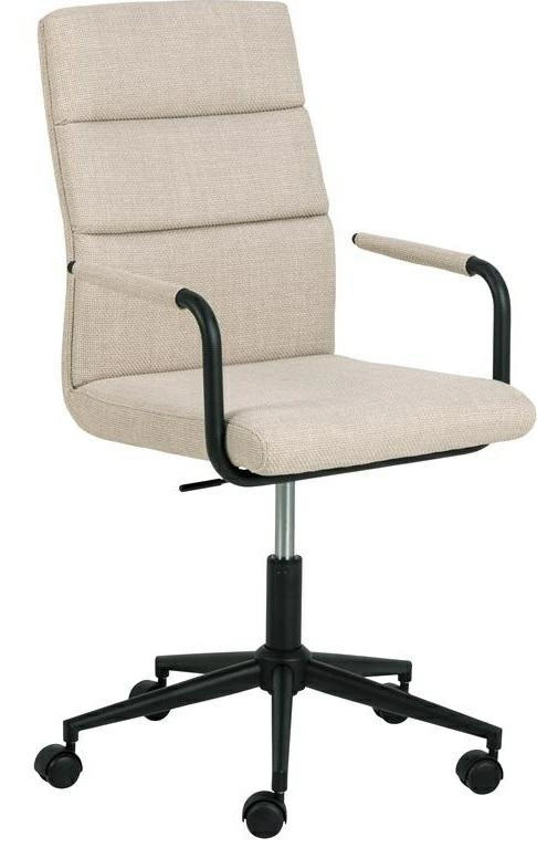 Przedstawiamy idealny dodatek do domowego biura lub sypialni nastolatka. Fotel biurowy to nowoczesne krzesło o uniwersalnym designie, doskonale pasujące do każdego otoczenia. Jego regulowana wysokość siedziska oznacza, że możesz znaleźć idealną pozycję dla siebie. Miękkie i wygodne wypełnienie z pianki poliuretanowej zapewni Ci komfortowy spoczynek podczas wielogodzinnej pracy. Dodatkowo, nie musisz się martwić o jego styl - dzięki wykorzystaniu tkaniny w kolorze beżowym ten ponadczasowy mebel nigdy nie wyjdzie z mody. Fotel z pięcioramienną podstawą wykonaną z metalu pozwala na łatwiejsze przemieszczanie, a kółka z hamulcem zapobiegają przesuwaniu się krzesła bez obciążenia.