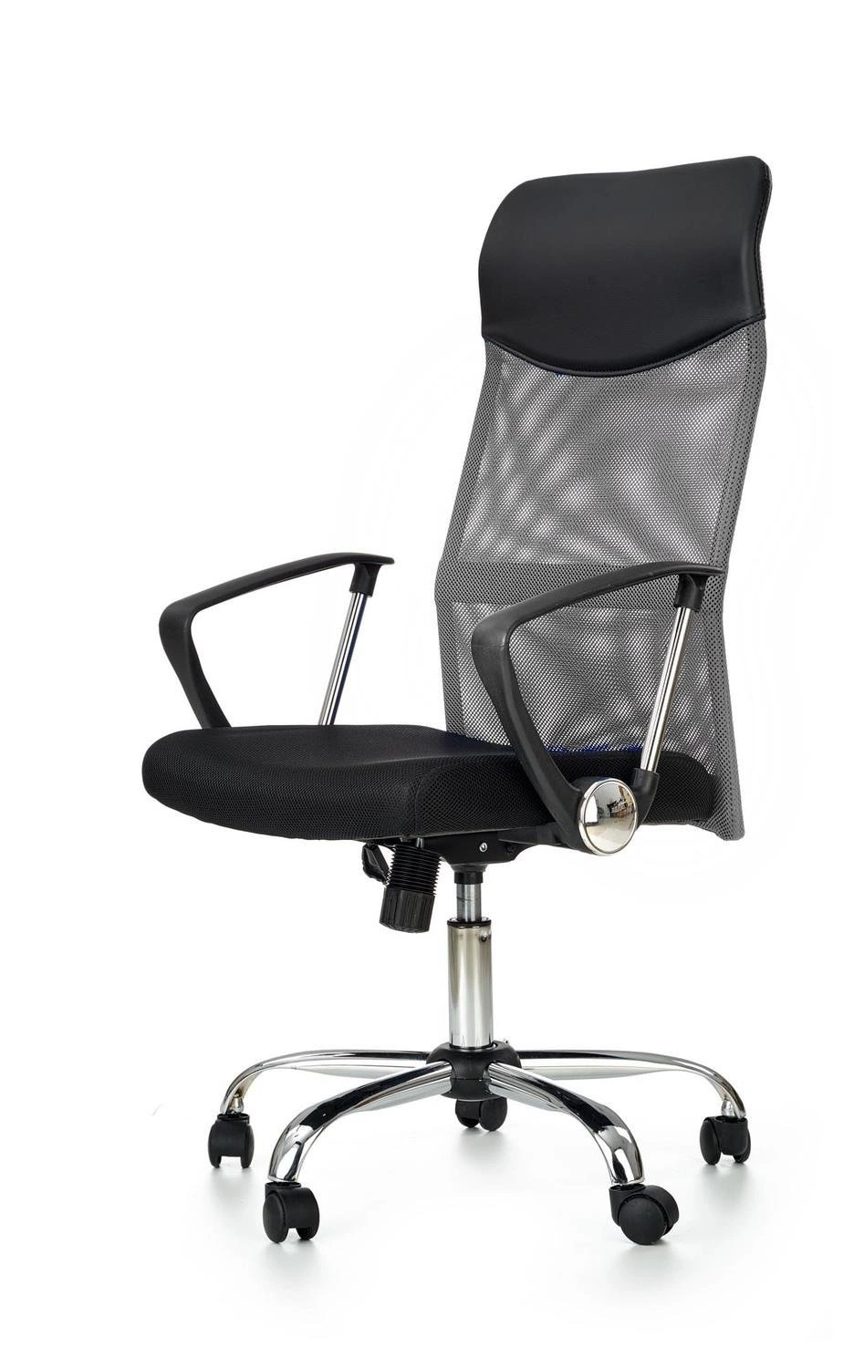 Fotel biurowy Spiner ze skórzanym wykończeniem szary jasny | Intesi Fotel Spiner o nowoczesnym stylu wykonania to wszechstronne rozwiązanie, które idealnie wpisuje się w różne przestrzenie, takie jak biuro, gabinet czy pokój. Podstawa wykonana z wytrzymałego metalu gwarantuje stabilność i trwałość. Nieregulowane podłokietniki zapewniają wygodę podczas pracy, a mechanizm tilt umożliwia lekkie odchylanie oparcia, co pozwala na chwilę relaksu podczas intensywnego dnia. Fotel może obsłużyć maksymalne obciążenie wynoszące 100 kg, co czyni go solidnym i wytrzymałym meblem. Siedzisko i oparcie wykonane z tkaniny membranowej oraz siatki zapewniają optymalną wentylację, co jest szczególnie ważne podczas długotrwałego siedzenia. Natomiast górna część oparcia jest tapicerowana skórą ekologiczną, co dodaje fotelowi elegancji i stylu. Dzięki regulacji wysokości (110 - 120 cm) fotel Spiner można dostosować do indywidualnych potrzeb użytkownika, co przekłada się na wygodę i komfort. Fotel obrotowy charakteryzuje się również kompaktowymi wymiarami (szerokość 61 cm, głębokość 63 cm) i wagą 14.5 kg, co ułatwia jego przemieszczanie i dopasowanie do różnych przestrzeni. To mebel, który łączy w sobie nowoczesny design, ergonomiczne rozwiązania i wygodę użytkowania, stanowiąc doskonały wybór dla osób, które cenią sobie jakość i funkcjonalność. O tym warto pamiętać: Nowoczesny fotel obrotowy o wszechstronnym zastosowaniu. Wykonany z wytrzymałego metalu, gwarantującego stabilność i trwałość. Mechanizm Tilt umożliwiający odchylanie oparcia dla chwilowego relaksu. Tapicerka z tkaniny membranowej i siatki dla optymalnej wentylacji. Górna część oparcia jest tapicerowana skórą ekologiczną dla eleganckiego wykończenia.