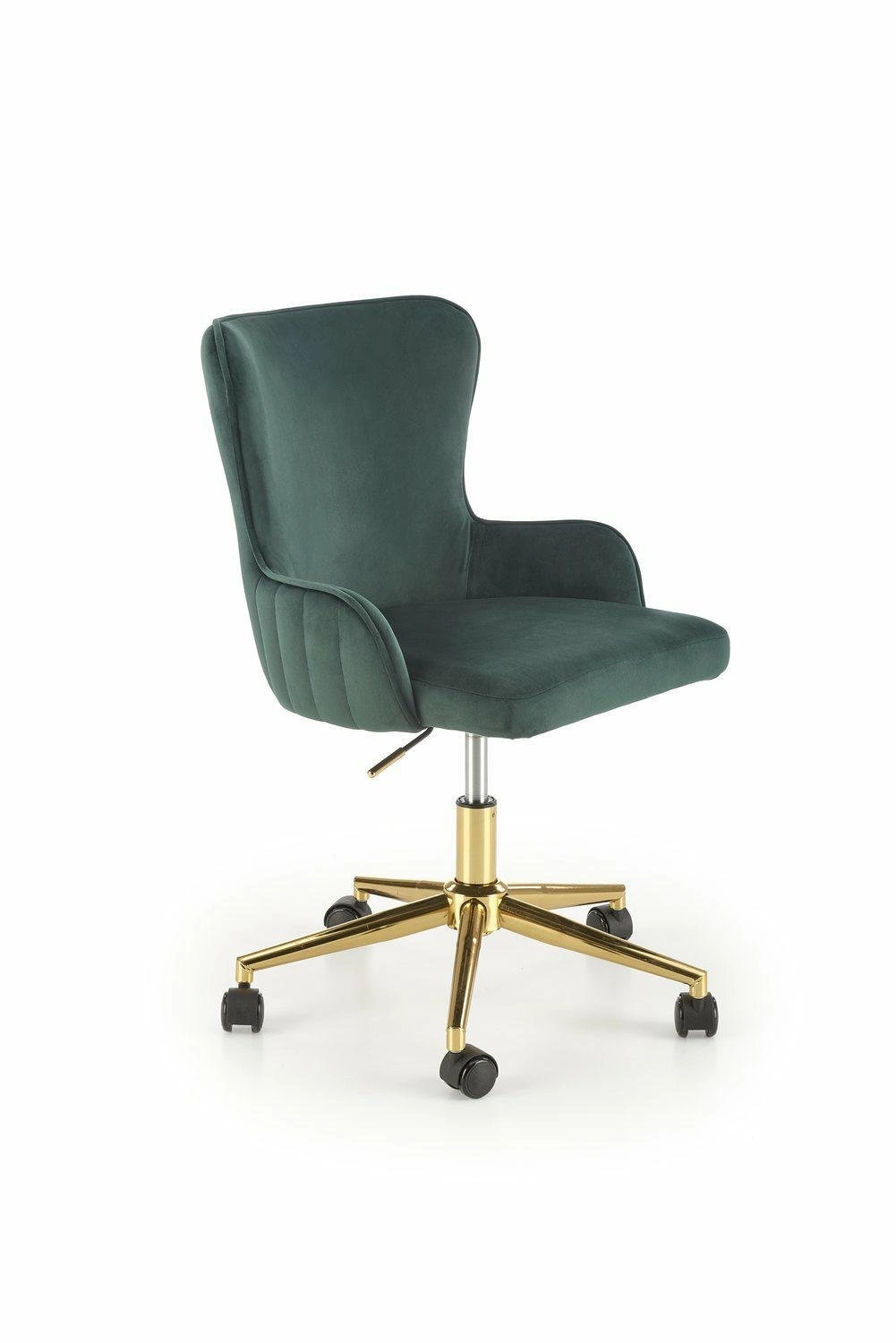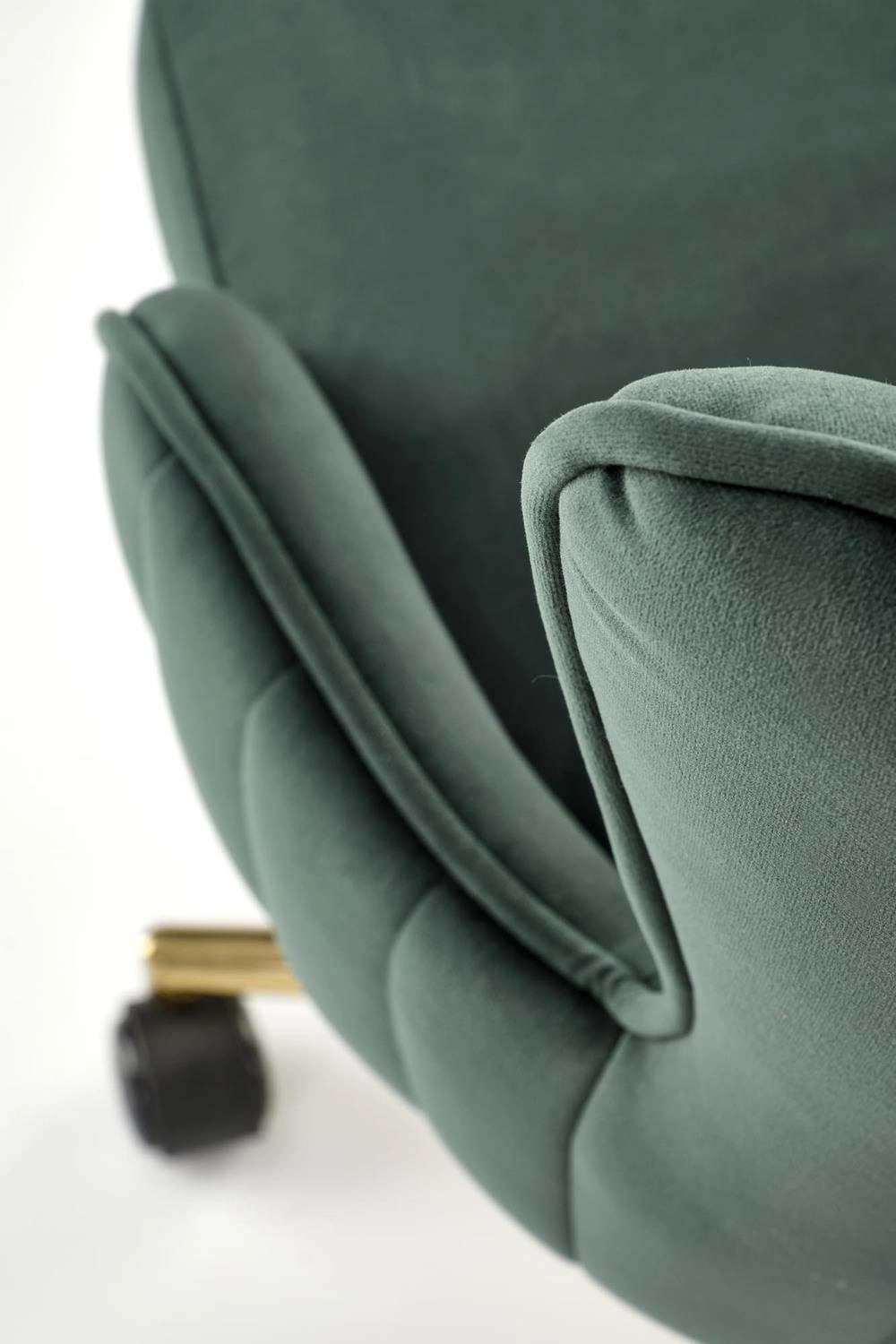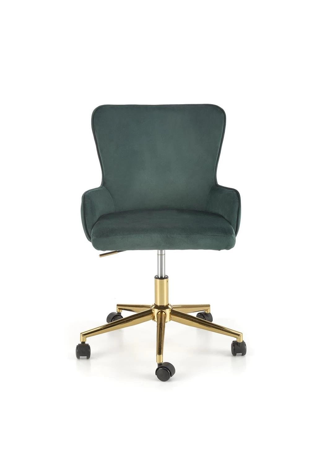 Fotel biurowy Tomil zielony - Elegancja i klasyczny urok dla Twojego gabinetu | Intesi Fotel biurowy Tomil to połączenie stylu glamour z klasycznym stylem, które doda elegancji Twojemu gabinetowi. Podstawa wykonana z metalu gwarantuje solidność i wytrzymałość. Nieregulowane podłokietniki zapewniają wygodę podczas siedzenia, a maksymalne obciążenie 100 kg pozwala na użytkowanie fotela przez różnorodnych użytkowników. Fotel Tomil posiada wykonaną z tkaniny welwetowej tapicerkę w zielonym kolorze, która nadaje mu wyjątkowego uroku i elegancji. Regulacja wysokości siedziska (40 - 48 cm) umożliwia dostosowanie fotela do indywidualnych potrzeb, co pozwala na wygodne i komfortowe siedzenie. Kompaktowy rozmiar (szerokość 55 cm, głębokość 55 cm) oraz niewielka waga 9,5 kg ułatwiają przenoszenie fotela i dopasowanie go do różnych przestrzeni w Twoim gabinecie. Fotel biurowy Tomil to nie tylko mebel do pracy, ale również elegancki dodatek, który podkreśli wyjątkowy charakter Twojego gabinetu, tworząc atmosferę stylu i komfortu podczas długich godzin pracy. O tym warto pamiętać! Fotel biurowy Tomil - połączenie stylu glamour ze stylem klasycznym dla eleganckiego wyglądu Twojego gabinetu. Solidna metalowa podstawa zapewniająca trwałość i stabilność. Nieregulowane podłokietniki i maksymalne obciążenie 100 kg dla wsparcia i wygody podczas długotrwałego użytkowania. Tapicerka z tkaniny welwetowej nadaje fotelowi wyjątkowego uroku.