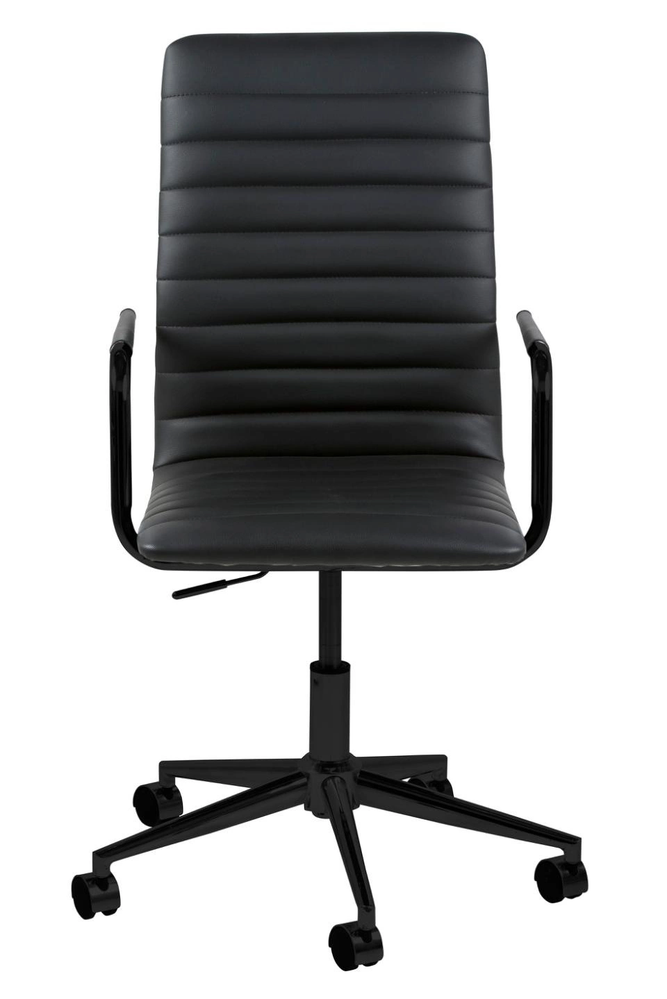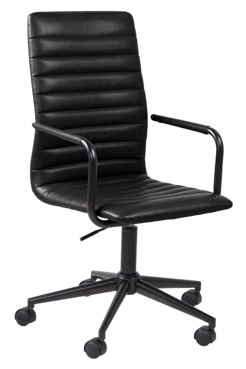 Przedstawiamy Ci fotel biurowy Winslow, który nie tylko zapewnia wygodne miejsce do pracy, ale także wyróżnia się nowoczesnym designem. Wykonany z wysokiej jakości materiałów, ten obrotowy fotel jest idealnym wyborem do gabinetu, biura lub pokoju nastolatka. Mebel wyróżnia się komfortowym siedziskiem oraz oparciem, które zostały obite miękką czarną skórą. Nie tylko dodaje to elegancji, ale również zapewnia przyjemne doznania podczas długich godzin pracy. Charakterystyczne poziome przeszycia na fotelu nadają mu nowoczesnego wyglądu, tworząc efektowną i stylową kompozycję.