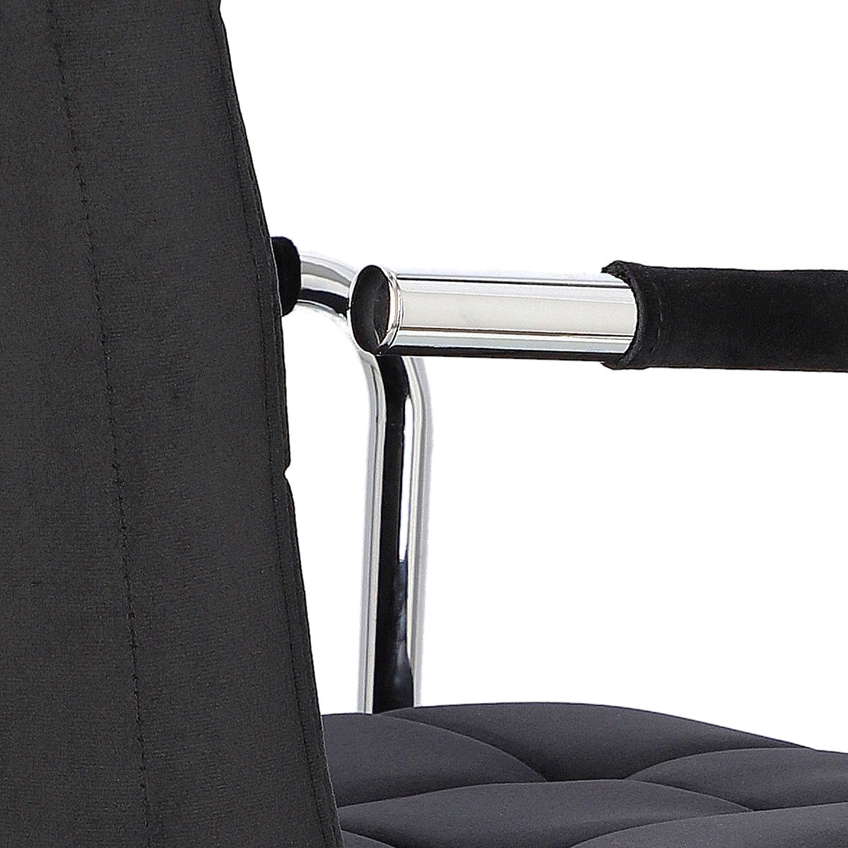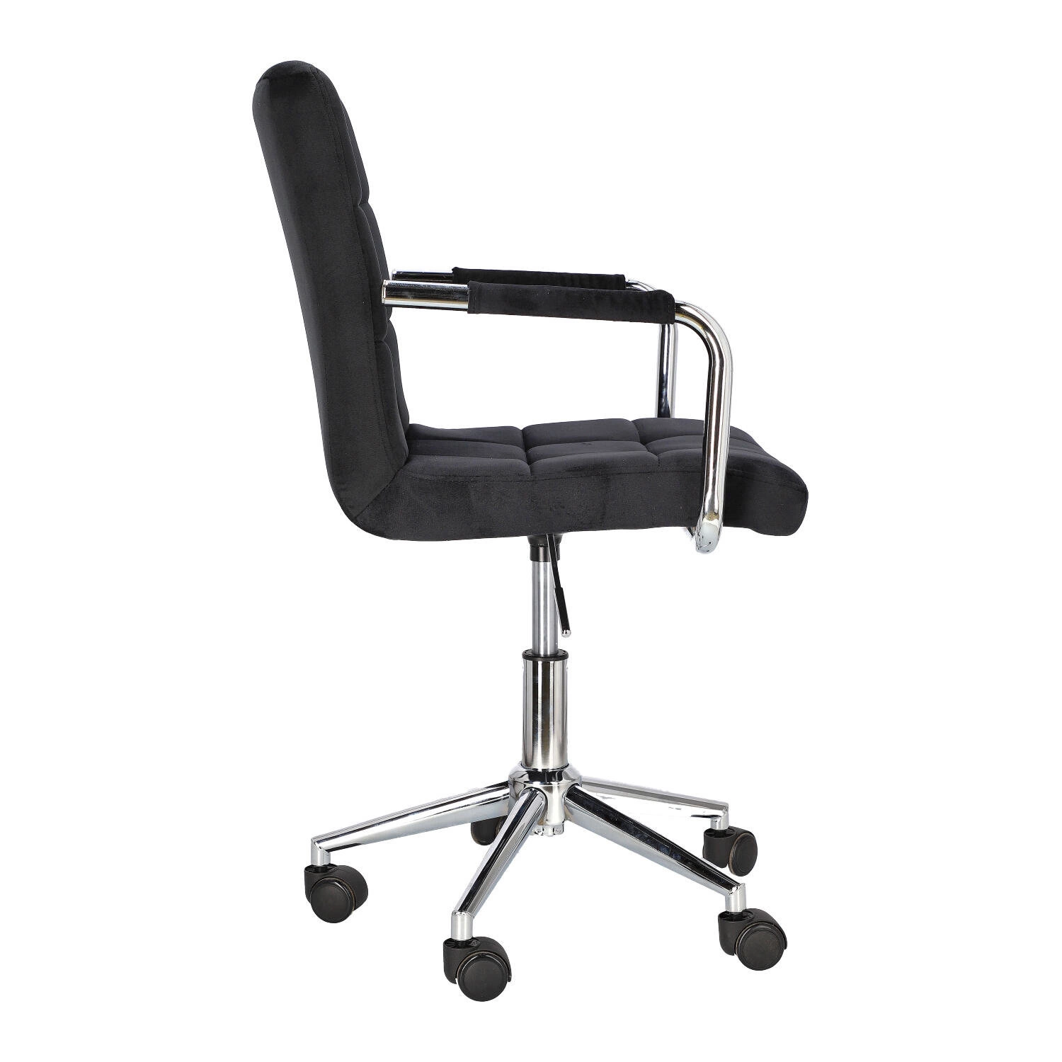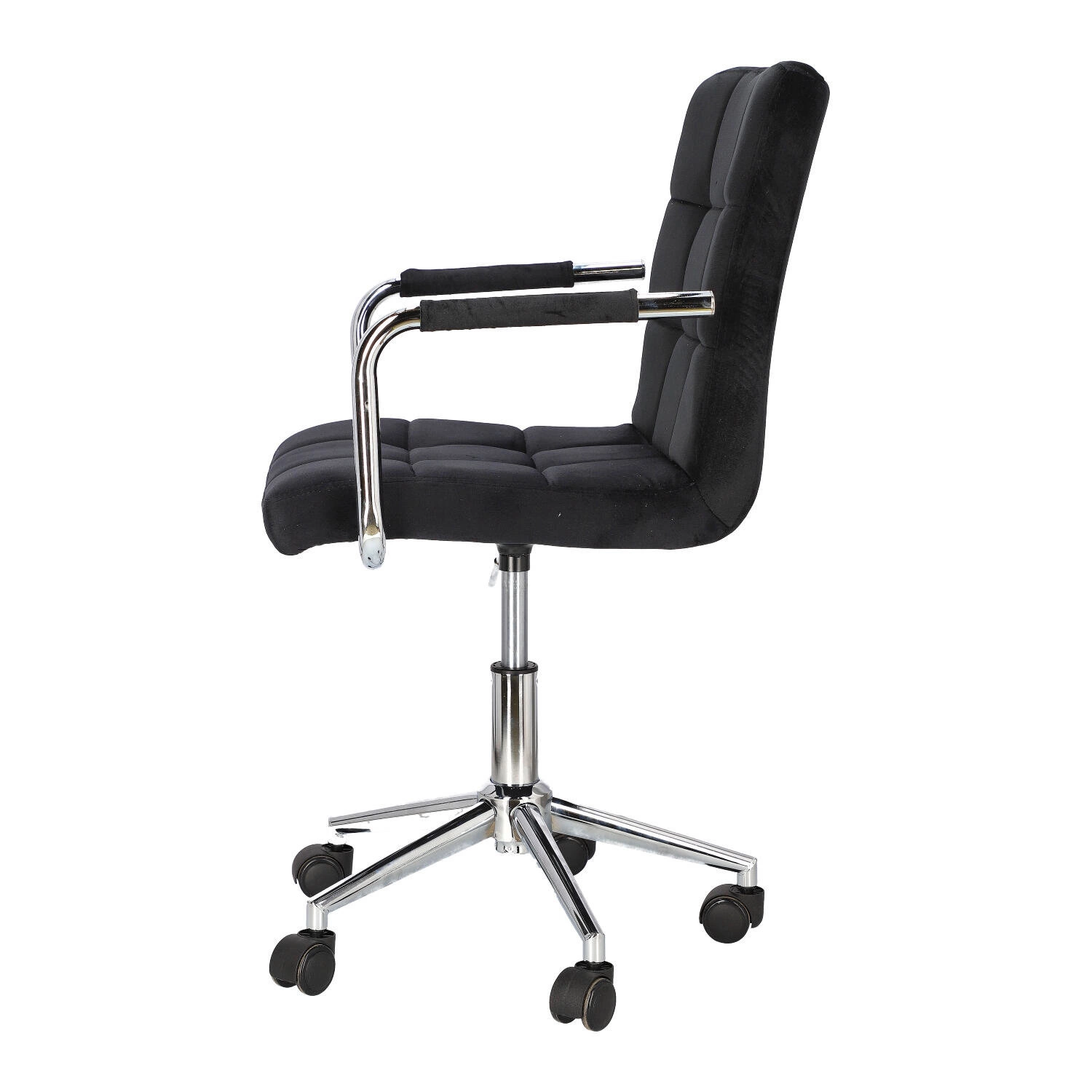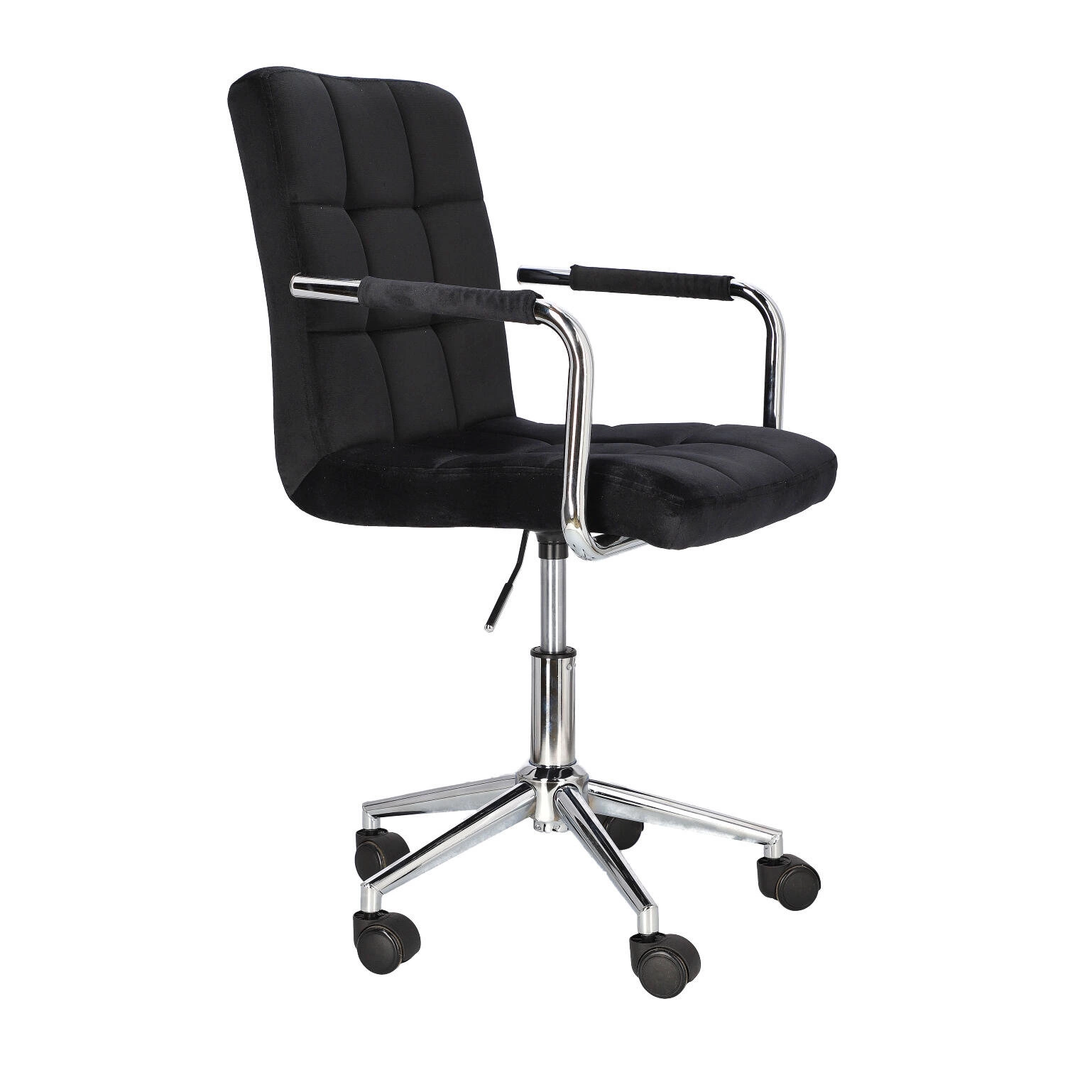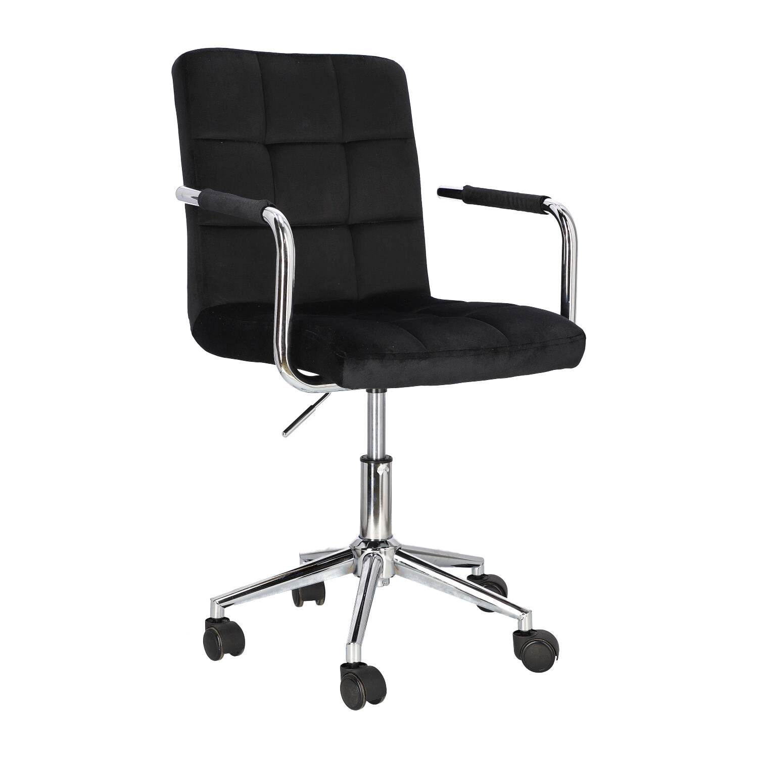 Wybór fotela biurowego to często nie lada wyzwanie. Wielu z nas wychodzi z założenia, że fotel biurowy równa się monotonny i niezbyt estetyczny design. Ale nic bardziej mylnego! Fotel biurowy Cosmo to nowoczesny fotel o pięknej, czarnej tkaninie welwetowej. Welurowe siedzisko ozdobione zostało prostymi i schludnymi przeszyciami. Wypełnienie siedziska i oparcia to miękka pianka tapicerska, która zagwarantuje wygodę i komfort. Welwetowy fotel posiada również szereg funkcji i udogodnień, takich jak ergonomiczne podłokietniki i funkcja regulacji wysokości. Regulacja jest możliwa w 10 cm skali, dlatego fotel Cosmo będzie odpowiednim fotelem dla osoby dorosłej, ale również dla nastolatka czy dziecka w wieku szkolnym. Chromowana podstawa fotela dodatkowo zapewnia ekskluzywny wygląd. To niesamowite krzesło biurowe do gabinetu lub pokoju dziecięcego.