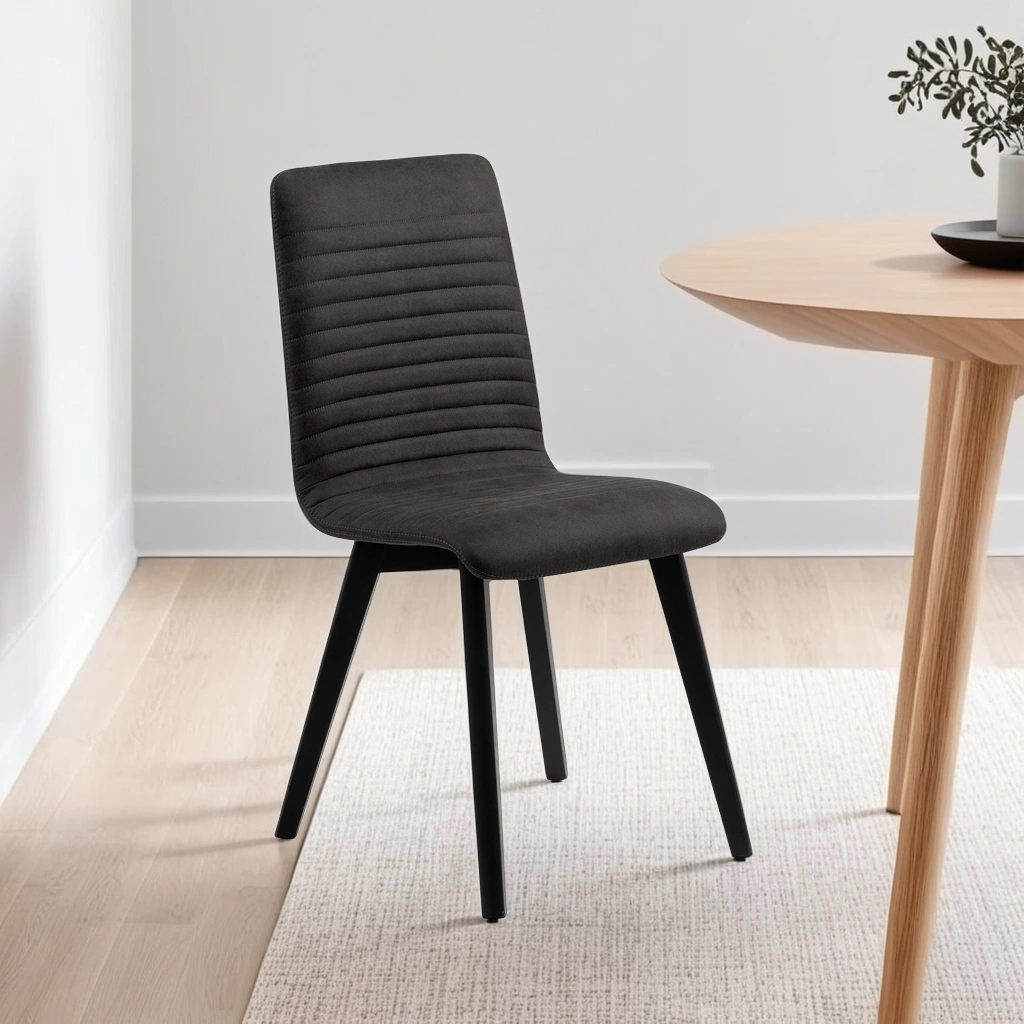 Krzesło Arosa zostało zrobione z efektownego siedziska oraz drewnianej podstawy. Tapicerowane siedzisko tkaniną Preston fabric anthracite 96 jest miękkie oraz komfortowe. Efektowne precyzyjne przeszycia nadają klasy. Podstawą krzesła są drewniane olejowane nogi w kolorze czarnym. Waga krzesła: 6,65 kg. Maksymalne obciążenie: 120 kg,