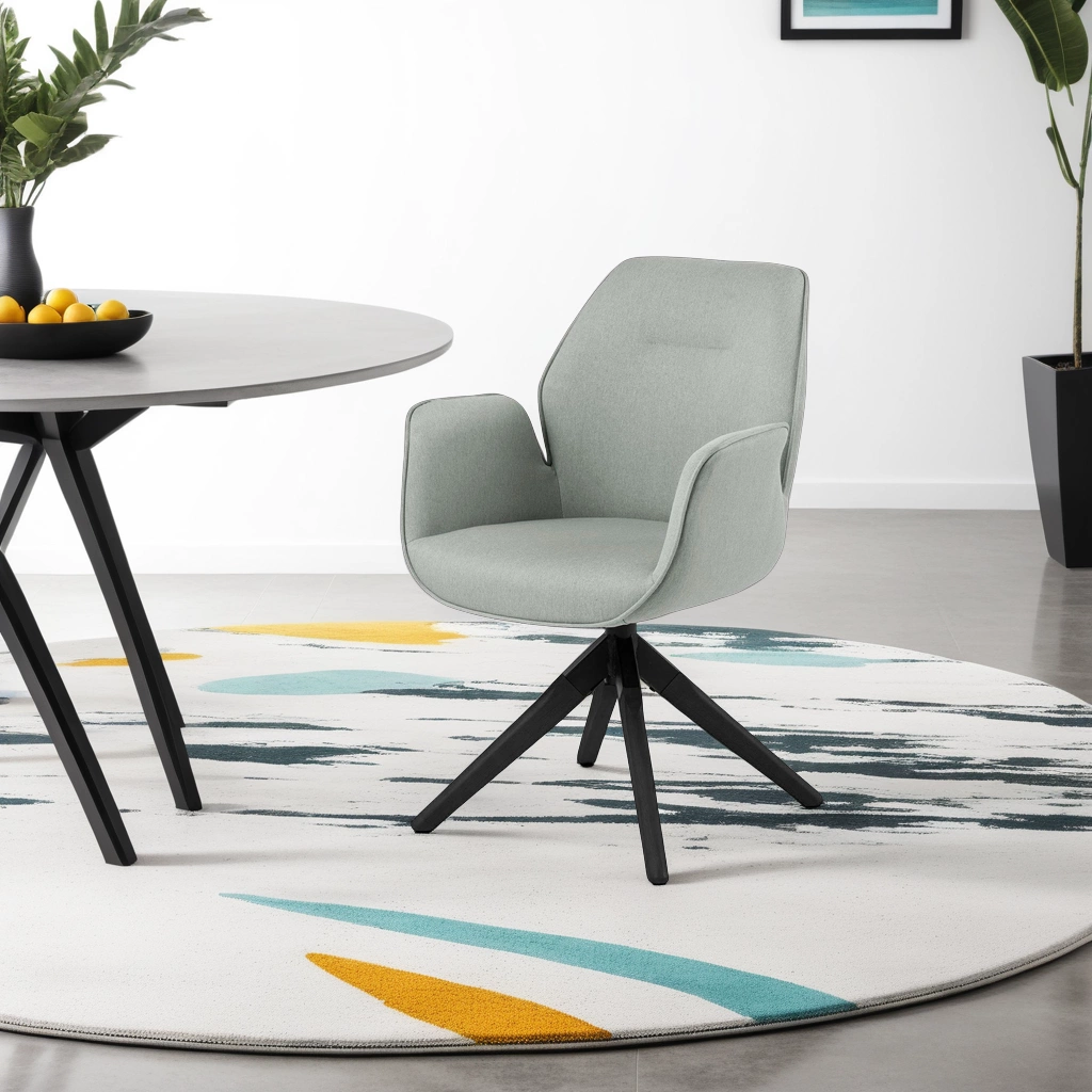 Krzesło obrotowe Aura to kwintesencja stylu skandynawskiego. Sprawdzi się w salonie, gabinecie czy sypialni. Obite przyjemną w dotyku i łatwą do utrzymania w czystości tkaniną Town w kolorze jasnej szarości pomoże Ci stworzyć elegancką i jednocześnie przytulną aranżację. Krzesło jest wyjątkowo szerokie, rozłożysty kształt zapewnia pełen komfort użytkowania. Oparcie oraz podłokietniki są specjalnie wyprofilowane, by korzystanie z nich było jak najwygodniejsze. Pod spodem siedziska znajduje się metalowy mechanizm, dzięki któremu krzesło może się obracać. Cztery nogi z drewna kauczukowego w kolorze czarnym wychodzą z jednego punktu. Rozchodzą się na boki pod lekkim kątem, dzięki czemu krzesło jest w pełni stabilne. Aura jest wygodna, praktyczna i stylowa. Będzie wyglądać doskonale w prostych, minimalistycznych wnętrzach.