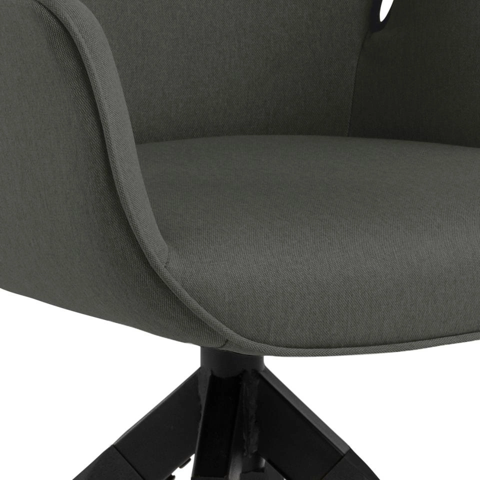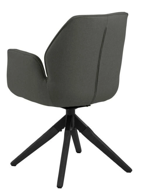 Krzesło obrotowe Aura to kwintesencja stylu skandynawskiego. Sprawdzi się w salonie, gabinecie czy sypialni. Obite przyjemną w dotyku i łatwą do utrzymania w czystości tkaniną Town w kolorze ciemnej szarości pomoże Ci stworzyć elegancką i jednocześnie przytulną aranżację. Krzesło jest wyjątkowo szerokie, rozłożysty kształt zapewnia pełen komfort użytkowania. Oparcie oraz podłokietniki są specjalnie wyprofilowane, by korzystanie z nich było jak najwygodniejsze. Pod spodem siedziska znajduje się metalowy mechanizm, dzięki któremu krzesło może się obracać. Cztery nogi z drewna kauczukowego malowanego na kolor czarny wychodzą z jednego punktu. Rozchodzą się na boki pod lekkim kątem, dzięki czemu krzesło jest w pełni stabilne. Aura jest wygodna, praktyczna i stylowa. Będzie wyglądać doskonale w prostych, minimalistycznych wnętrzach.